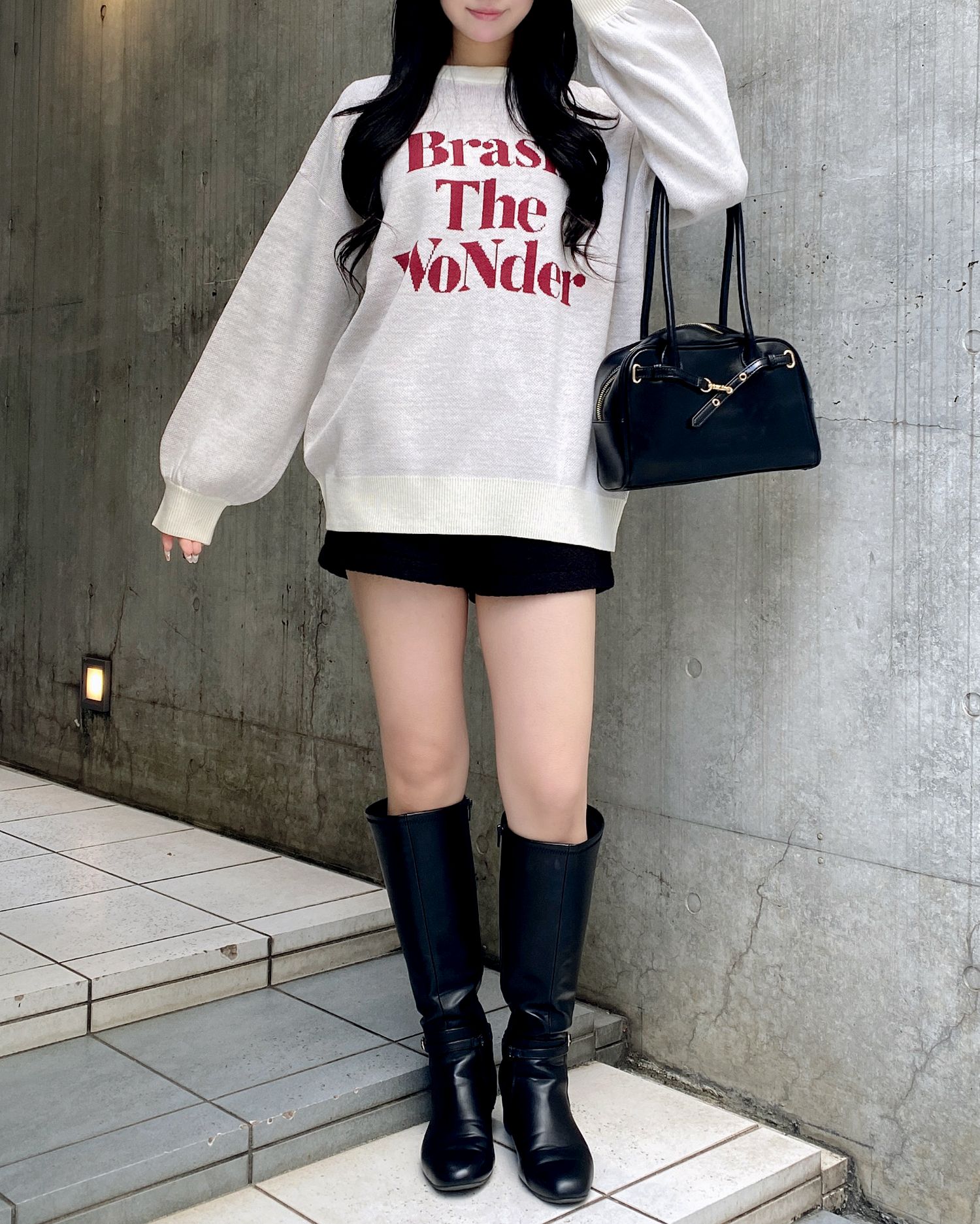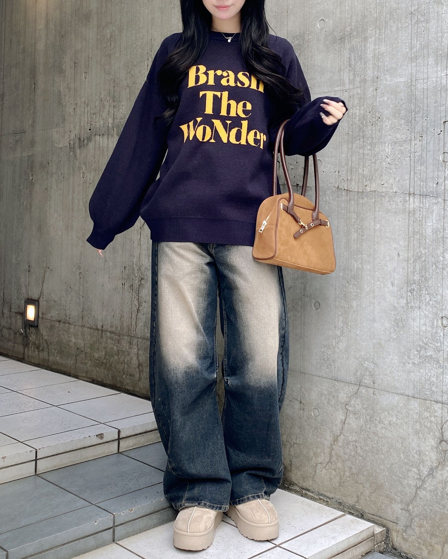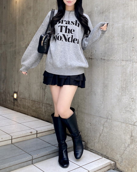 ゆったりしたデザインなのでタイトめのボトムを合わせるとスタイルアップ効果抜群!