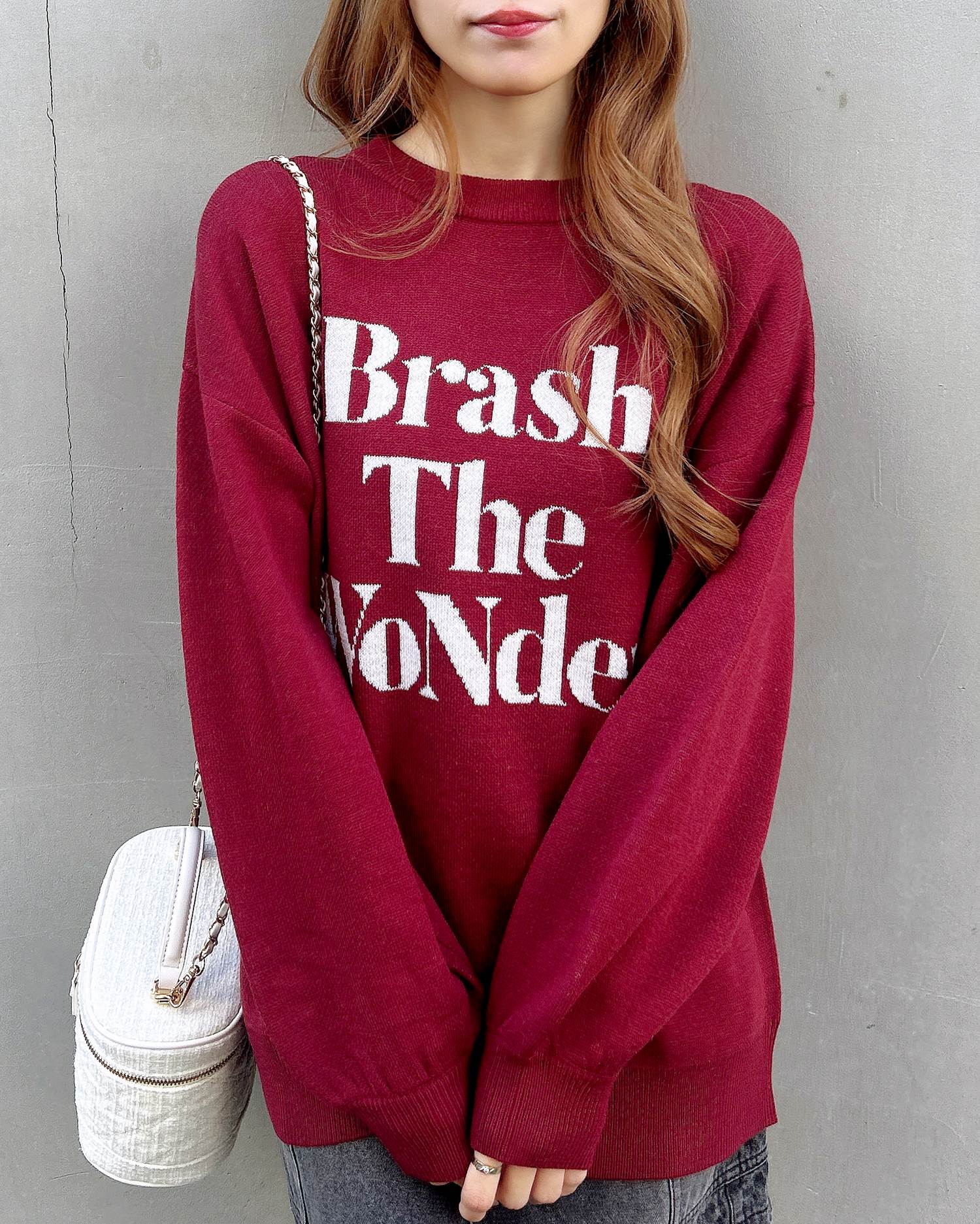 • INGNI(イング) 3段ロゴニット ボルドー/オフホワイト