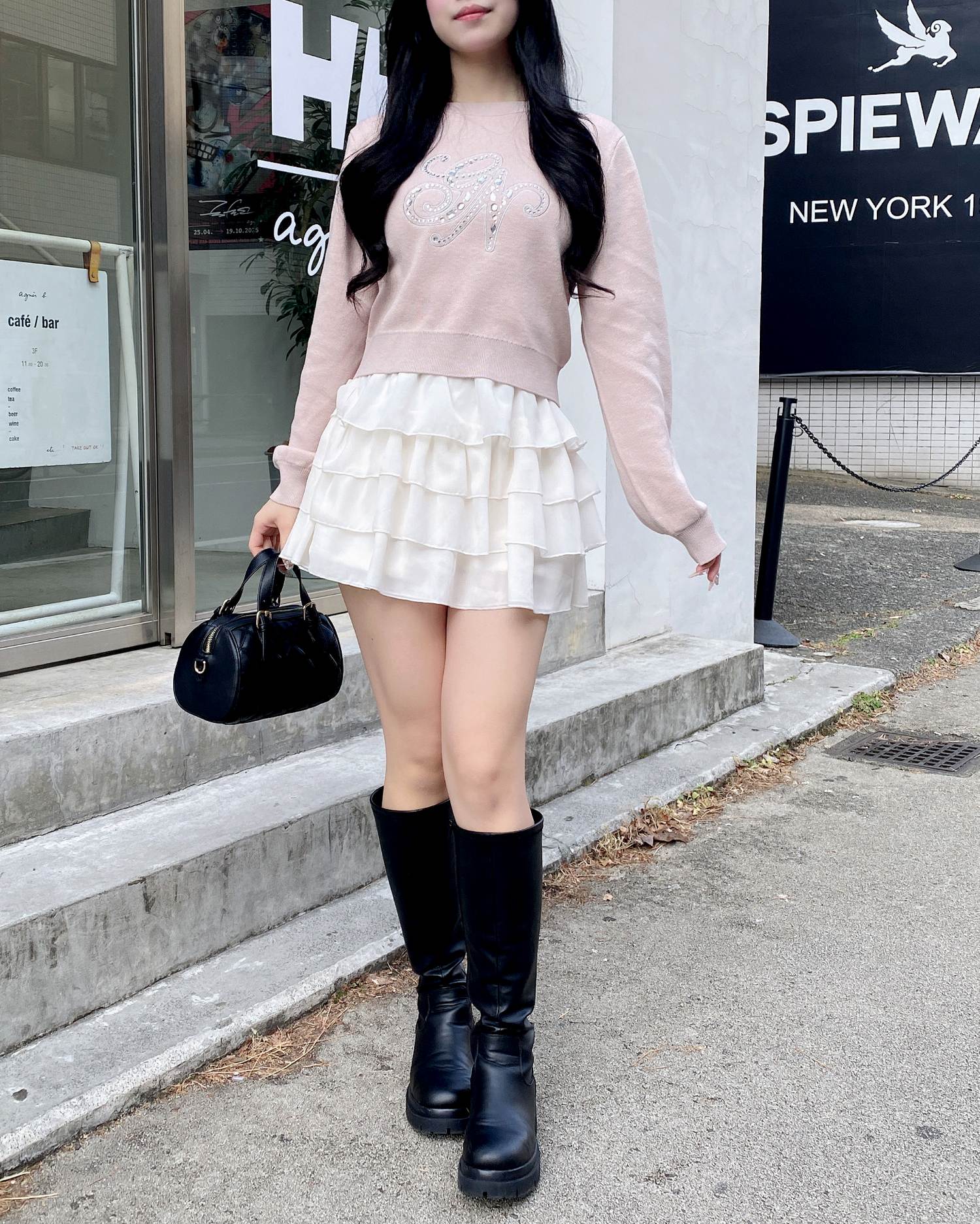 ミニスカートやフレアスカートと合わせる大人ガーリーなコーデもおすすめ♪