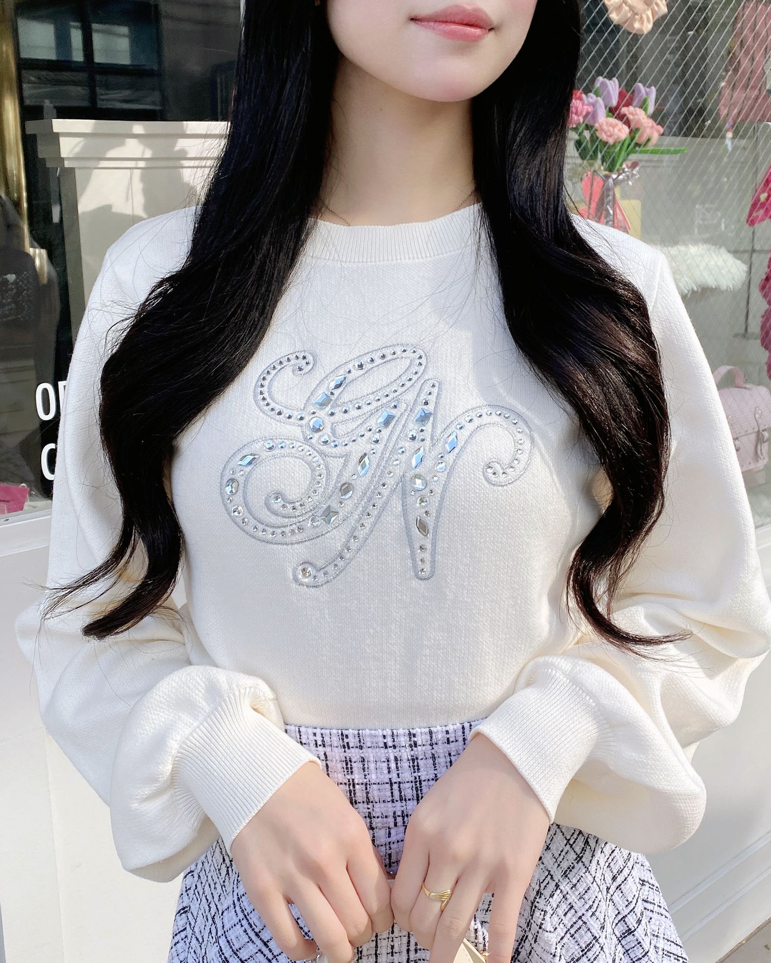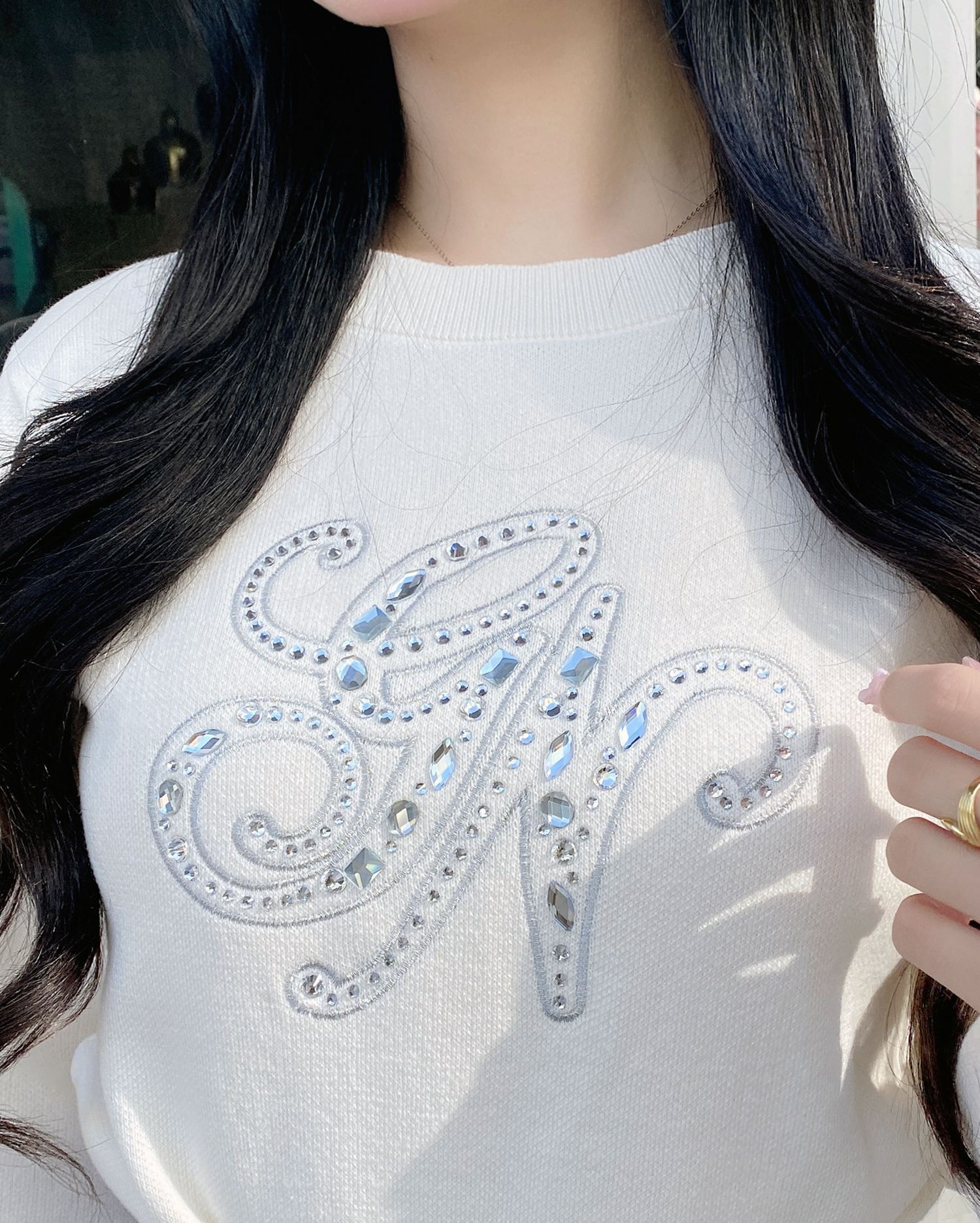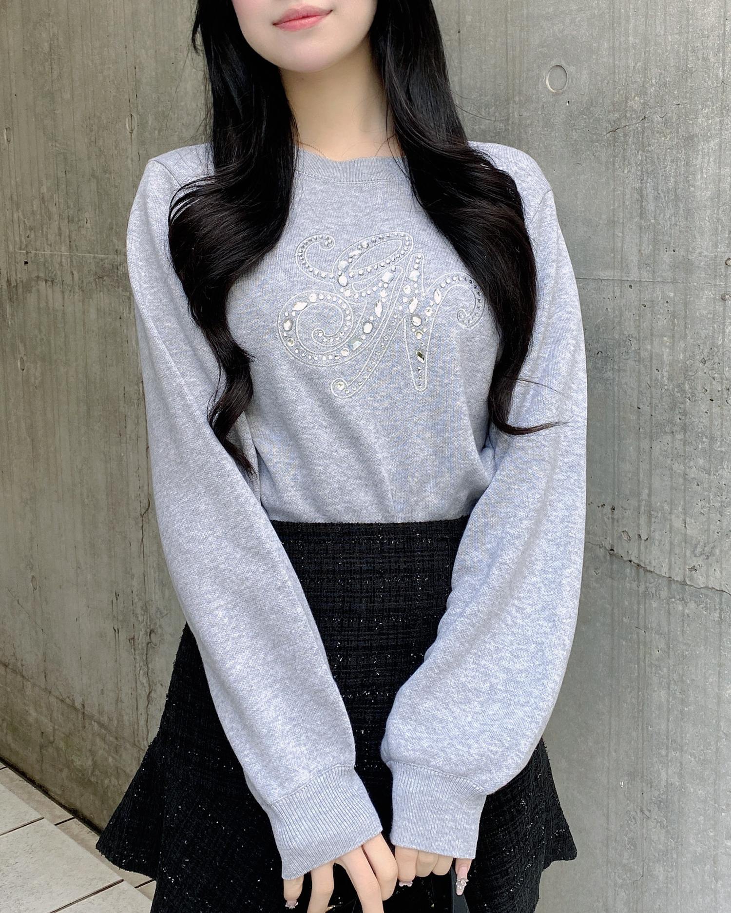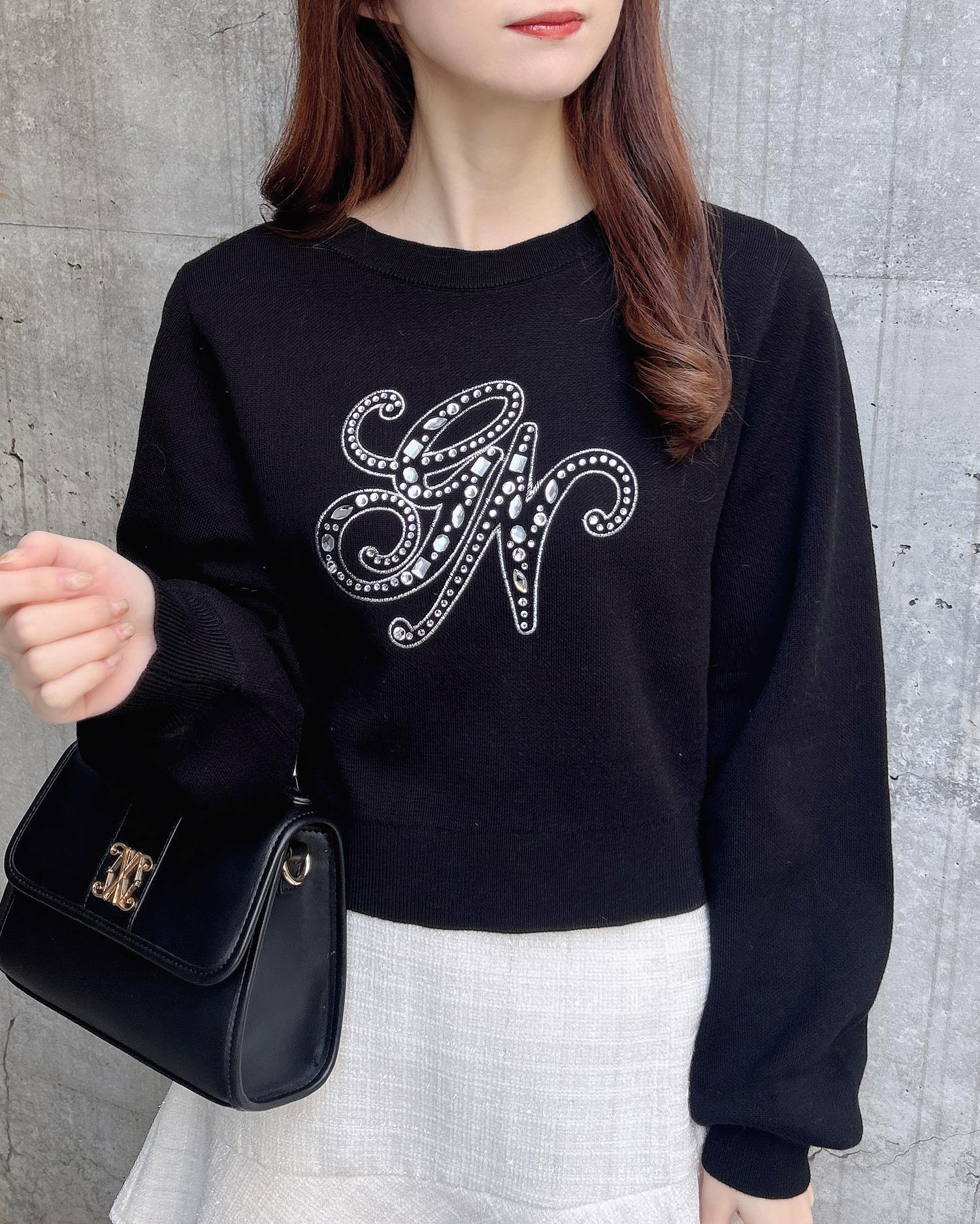 【大きな刺繍とキラキラのビジューがかわいい♡ニットトップス】