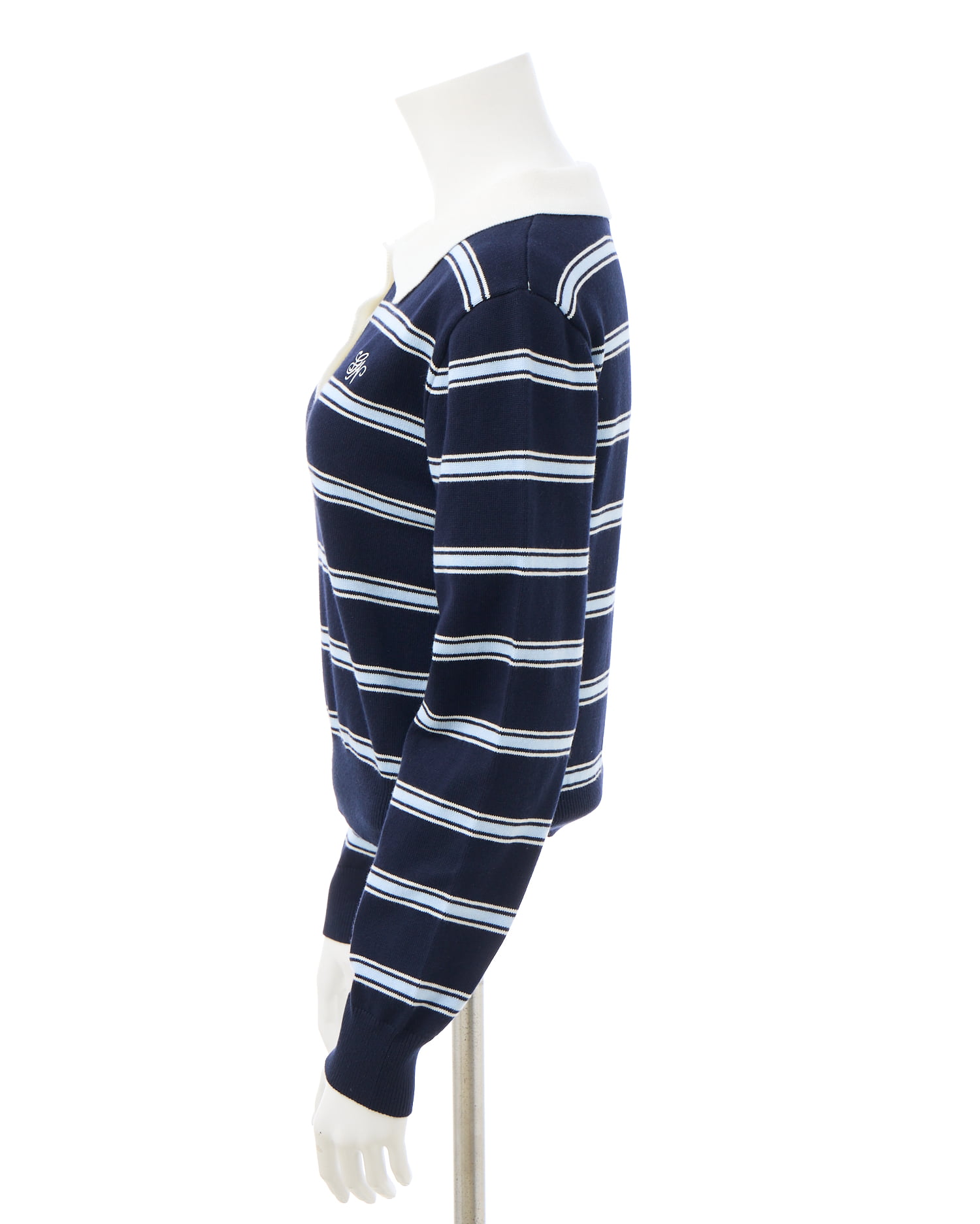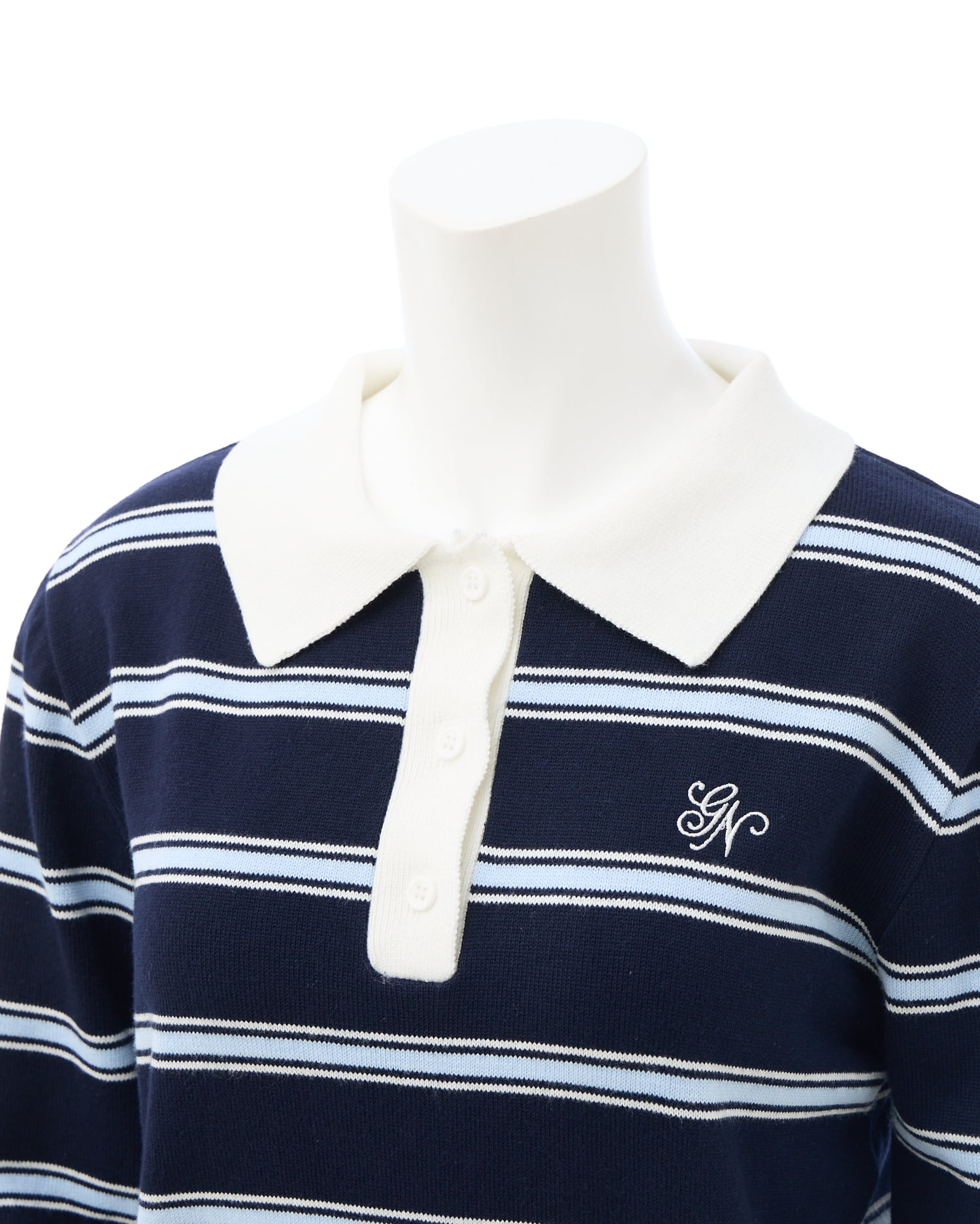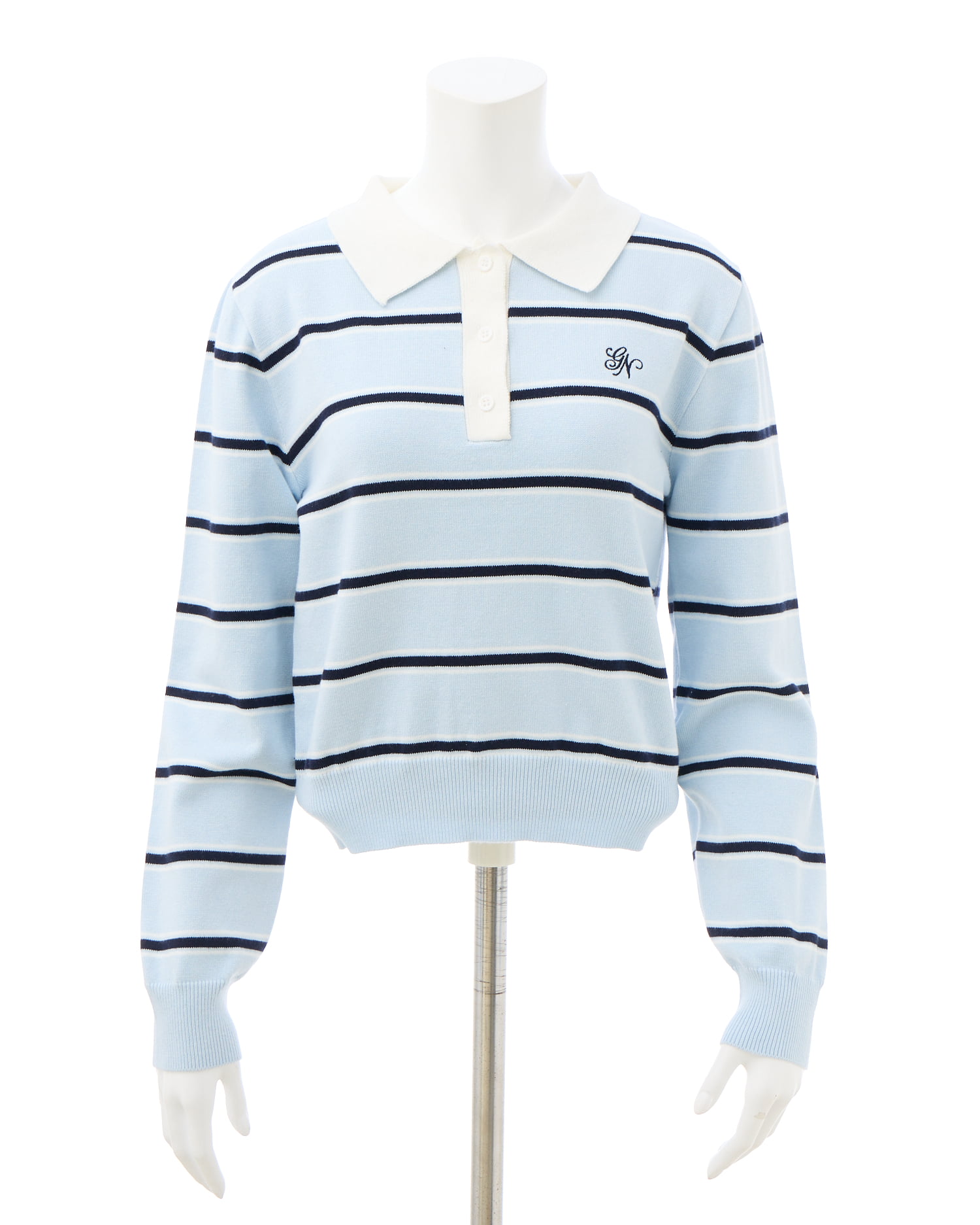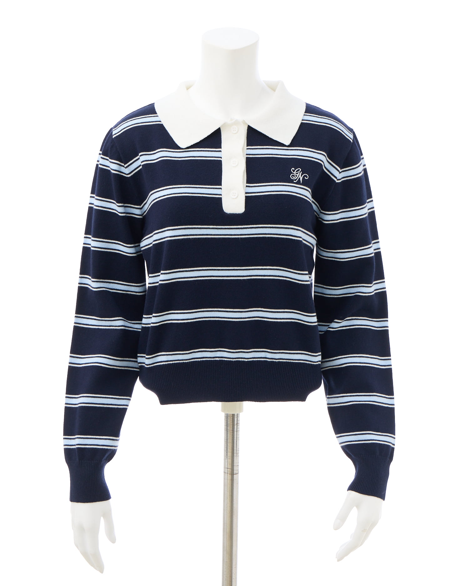 ラガーシャツ風のデザインにやわらかなニット素材を使用し、