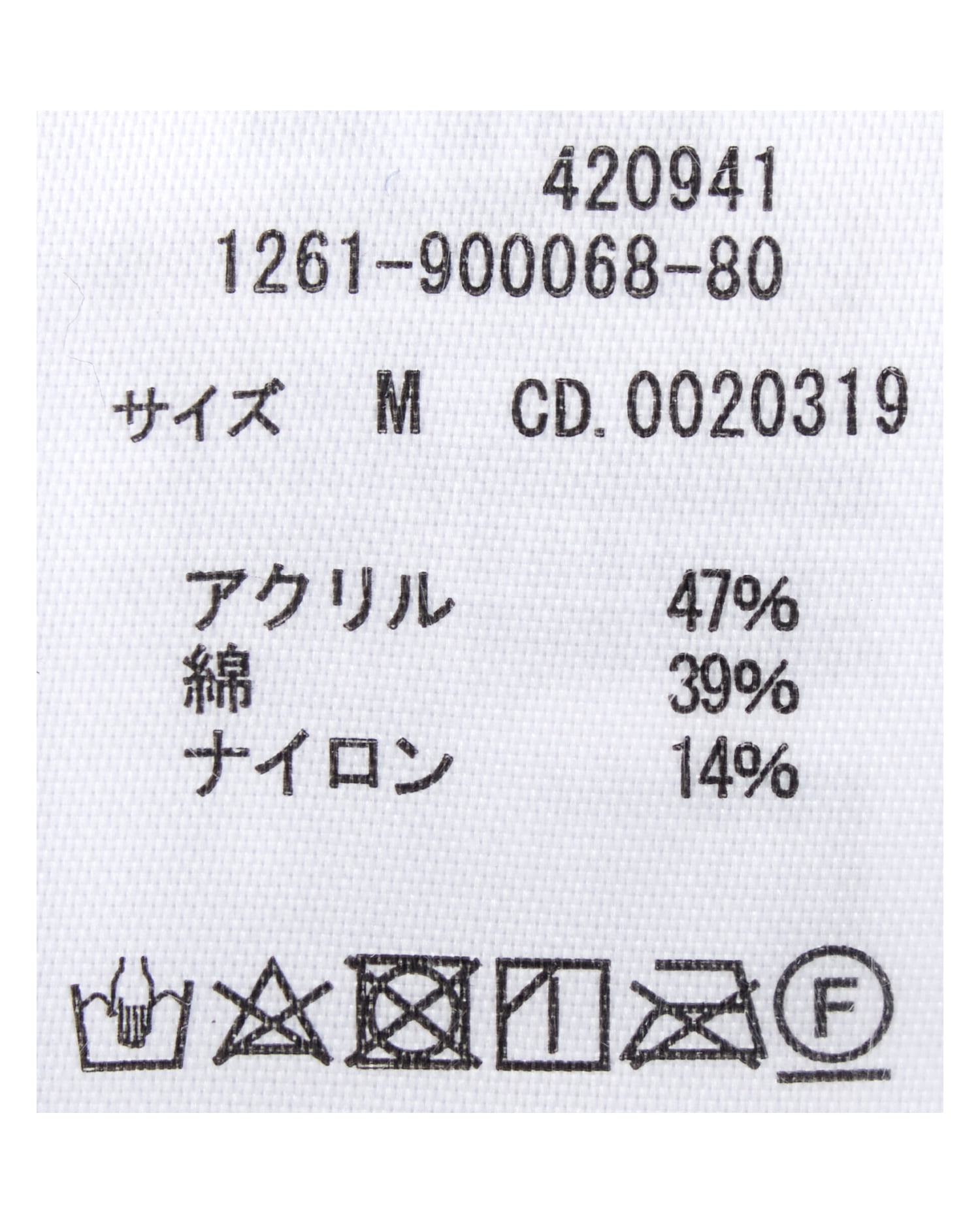 原産国 中国 アクリル47% 綿39% ナイロン14%