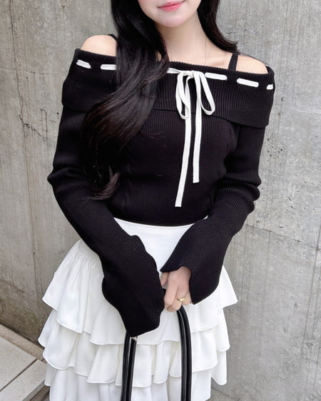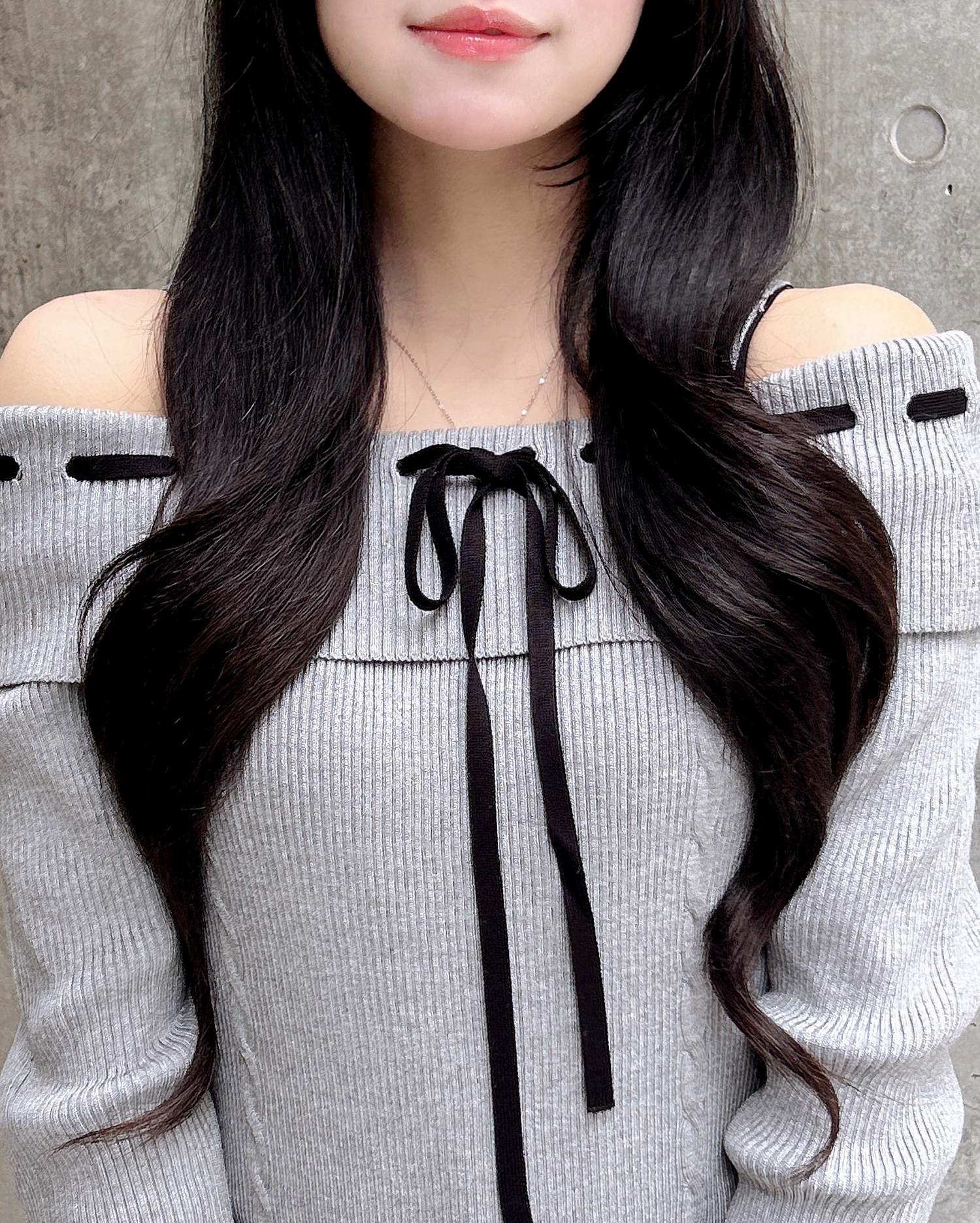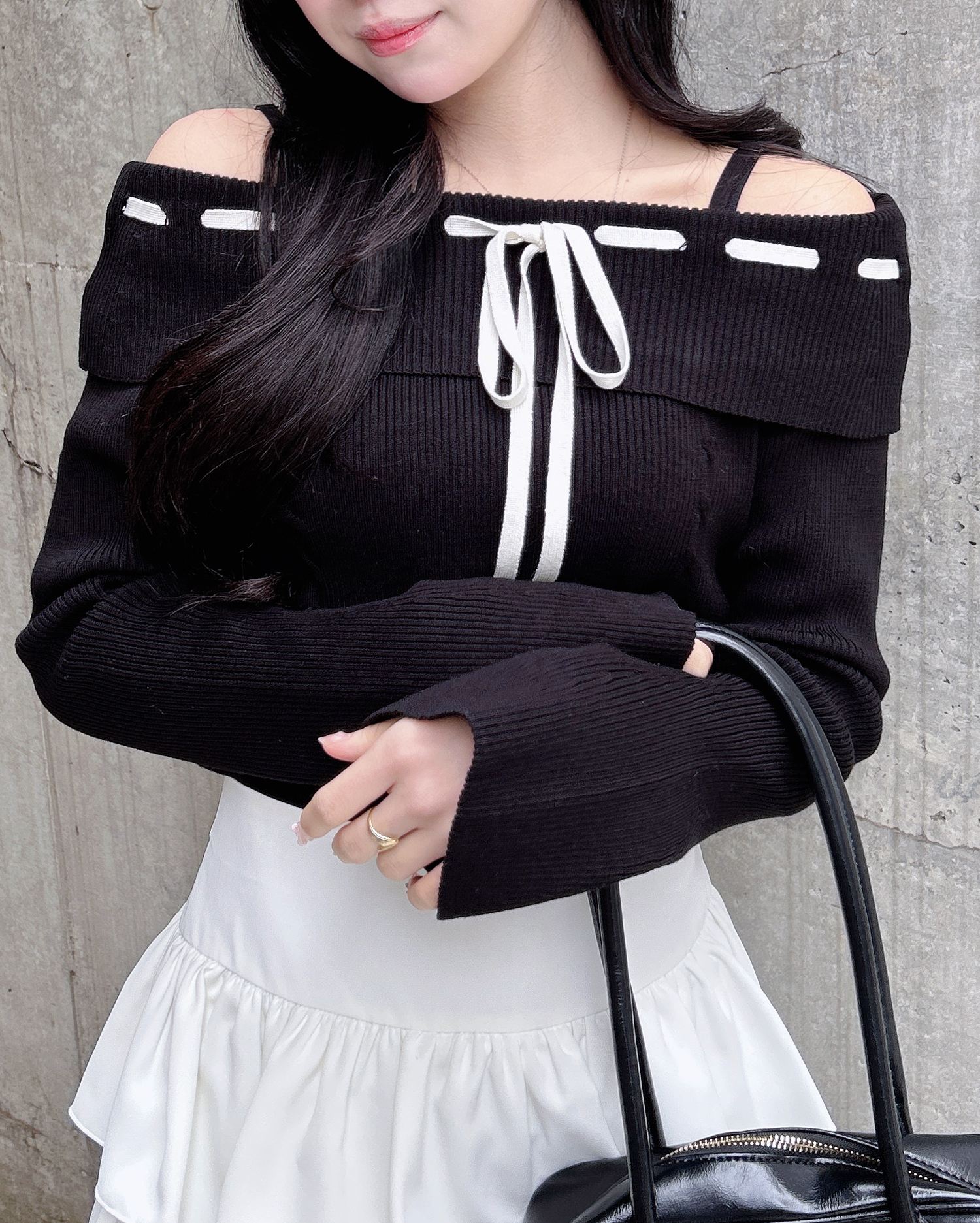 【フロントのリボンデザインがかわいい♡オフショルニット】