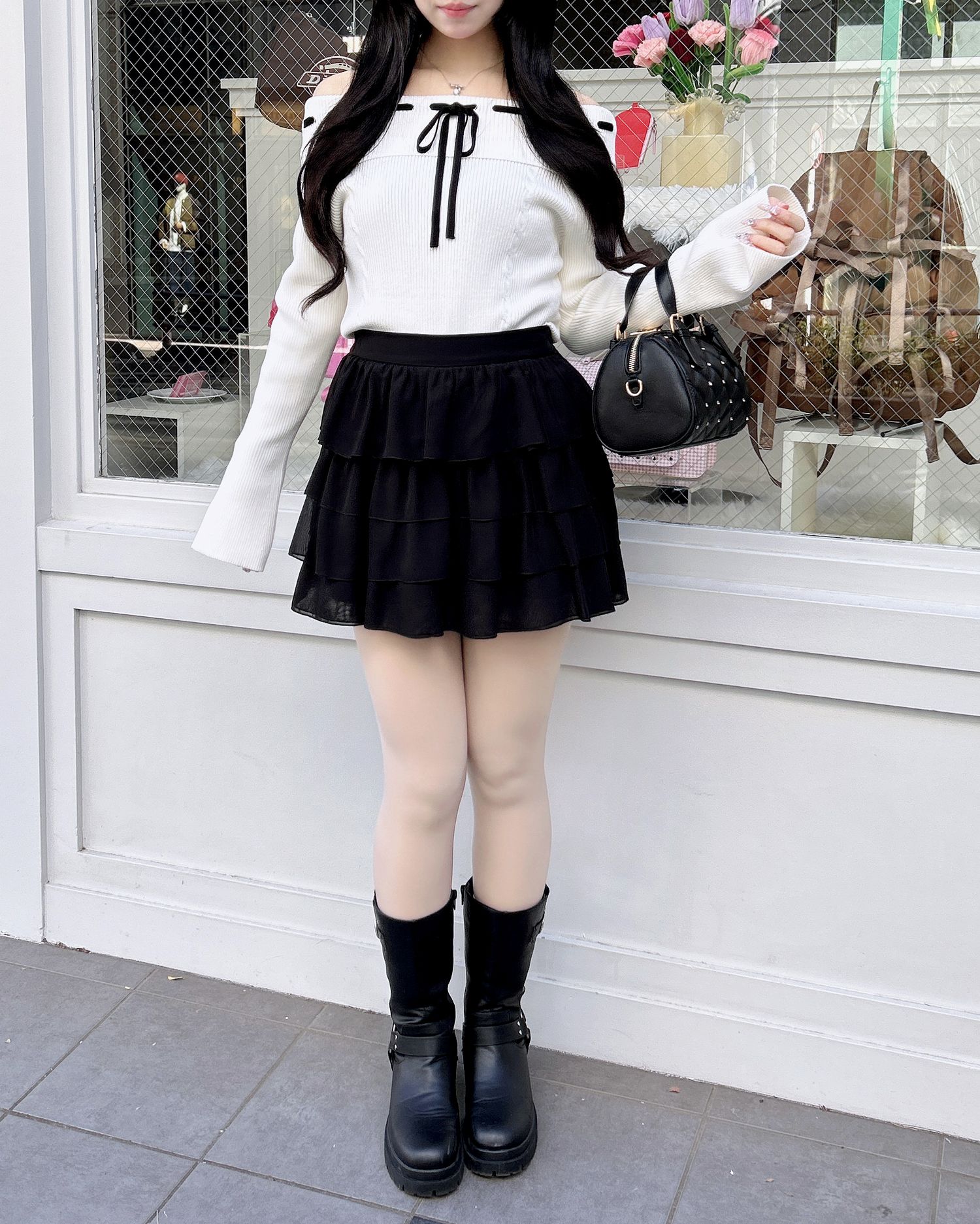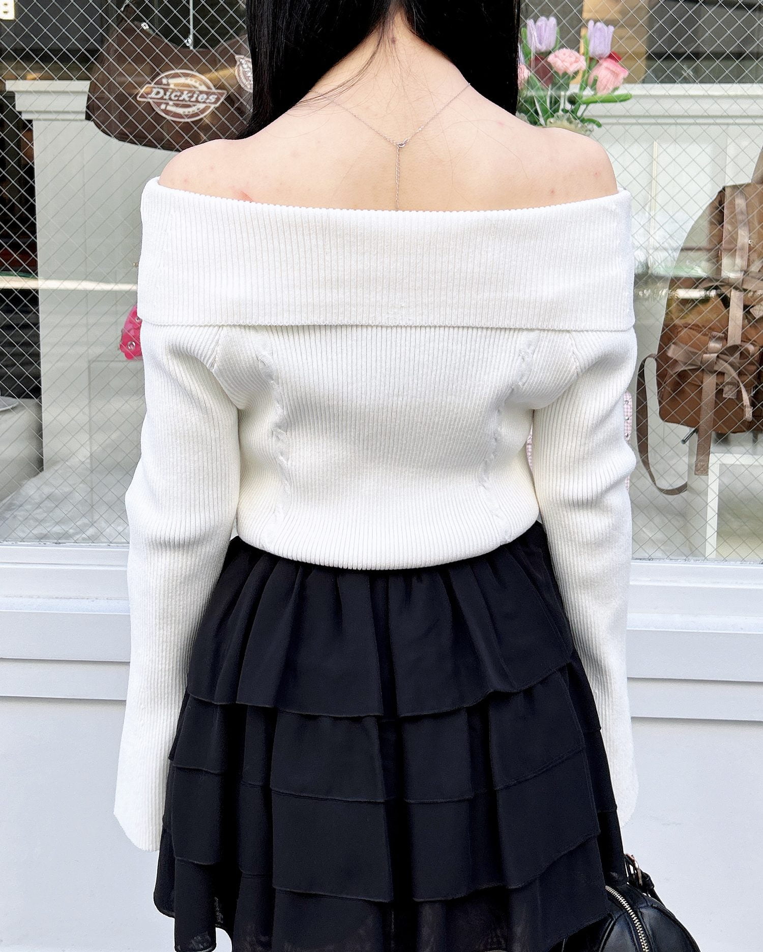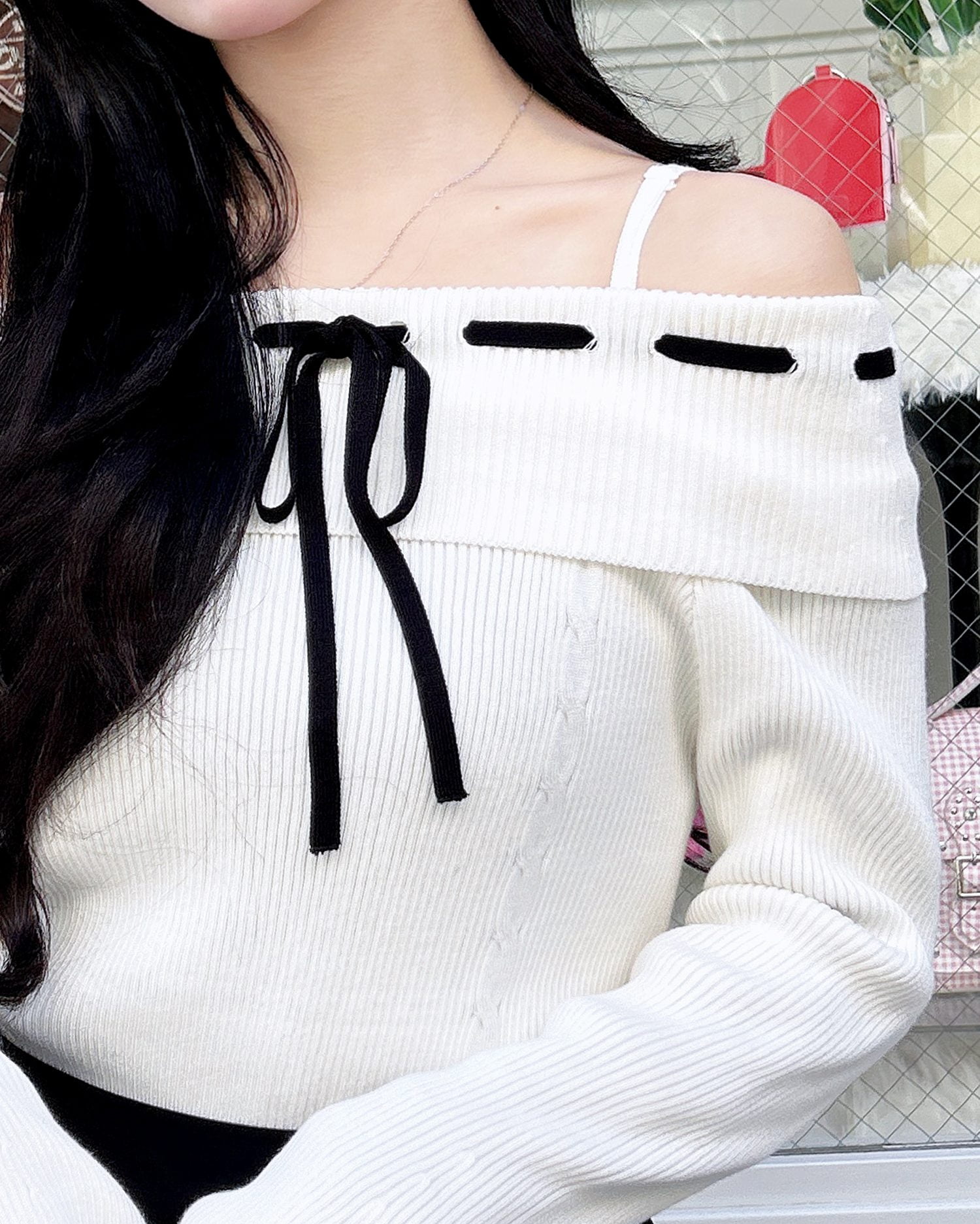 【フロントのリボンデザインがかわいい♡オフショルニット】