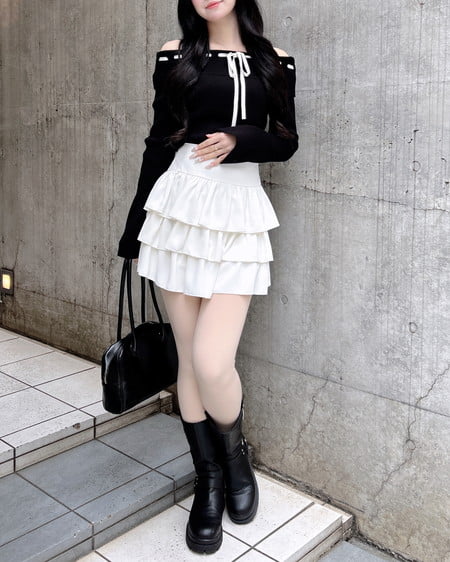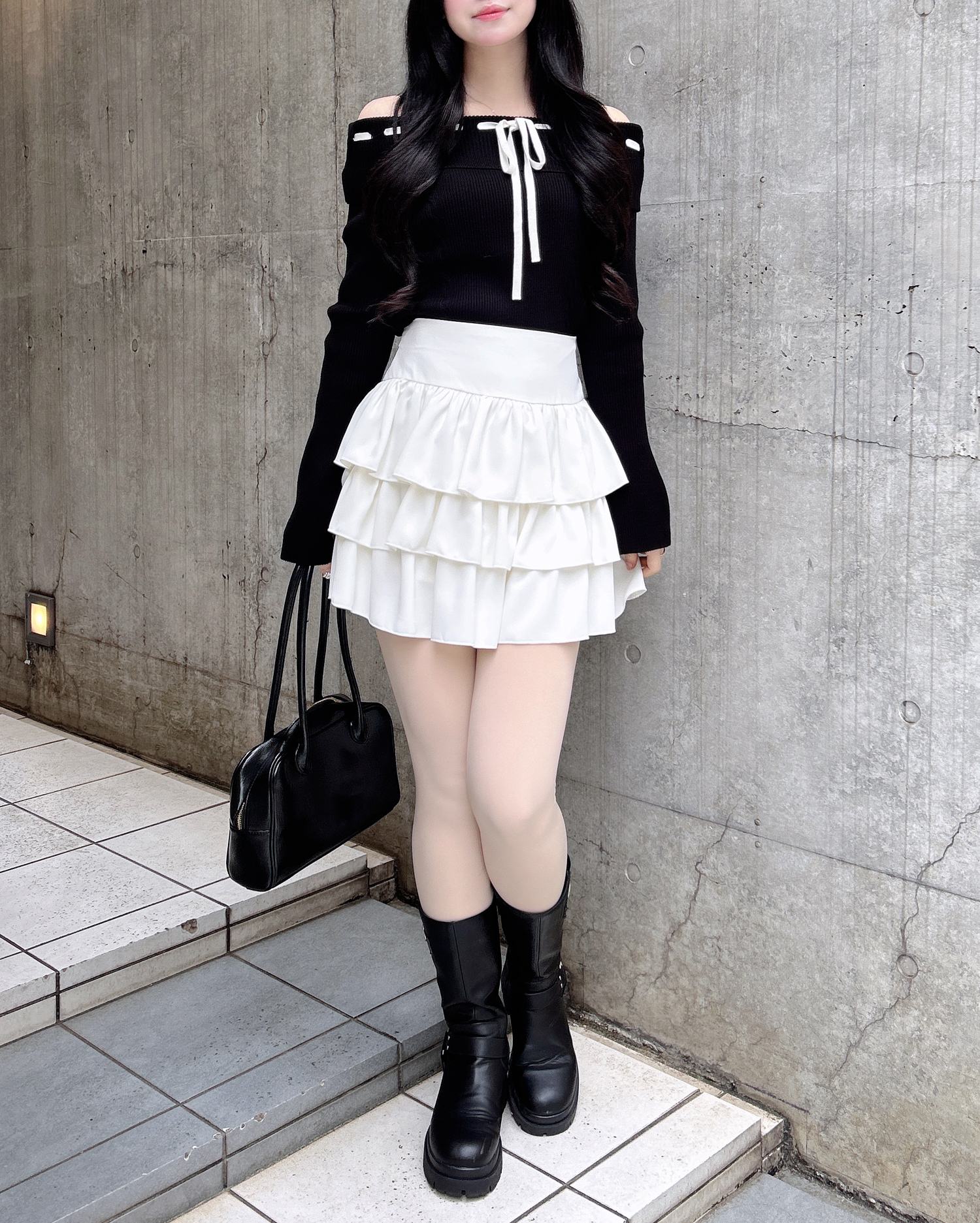 ロングスカートやタイトスカートを合わせればフェミニンな