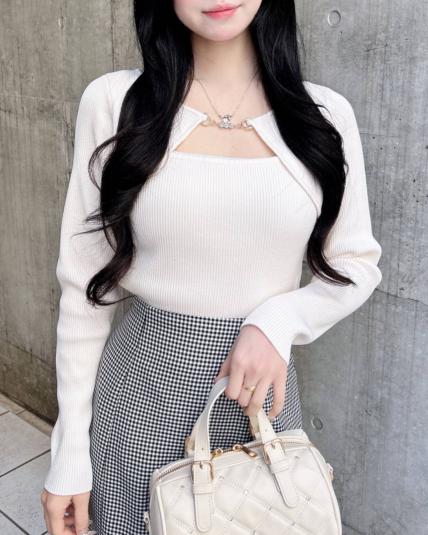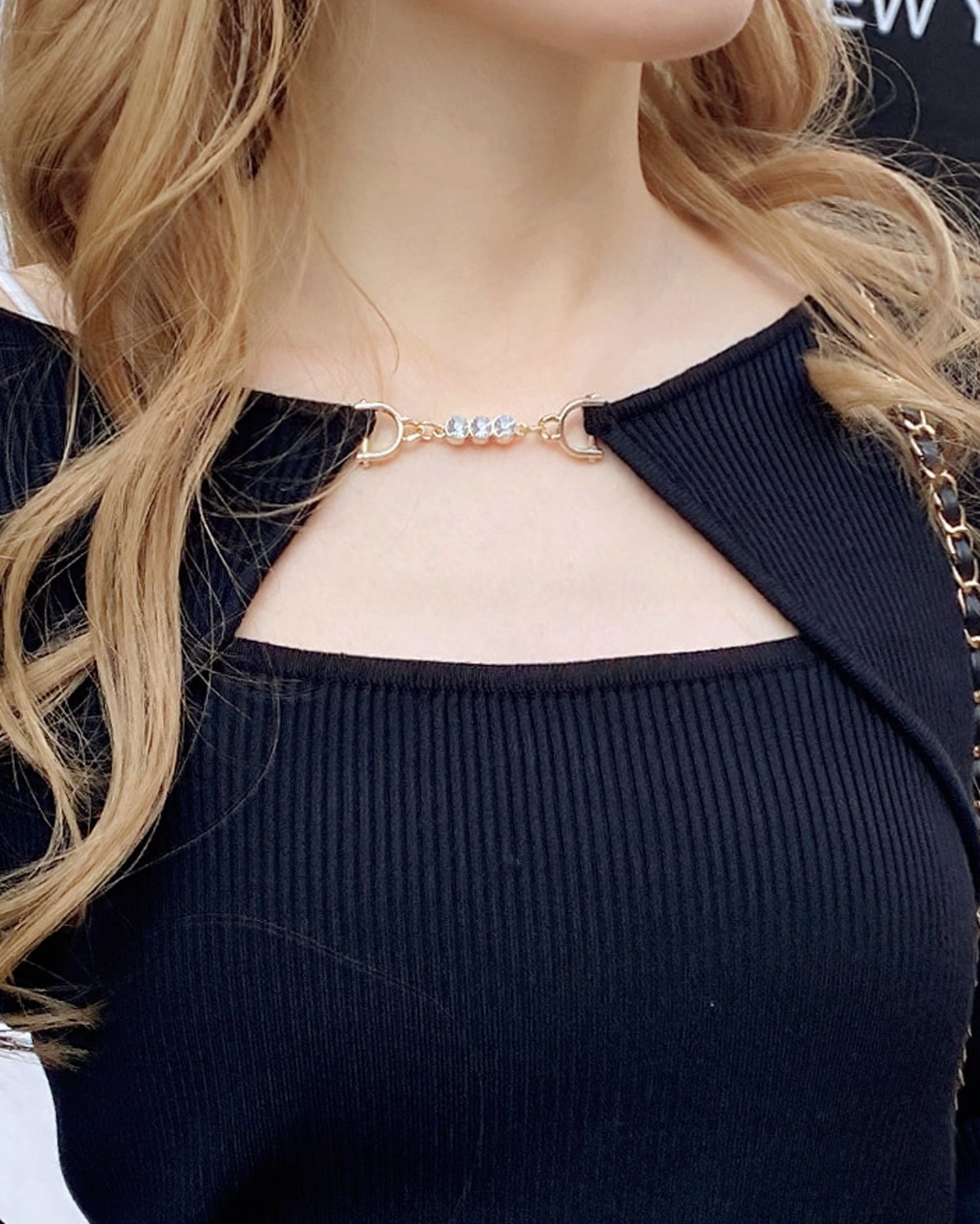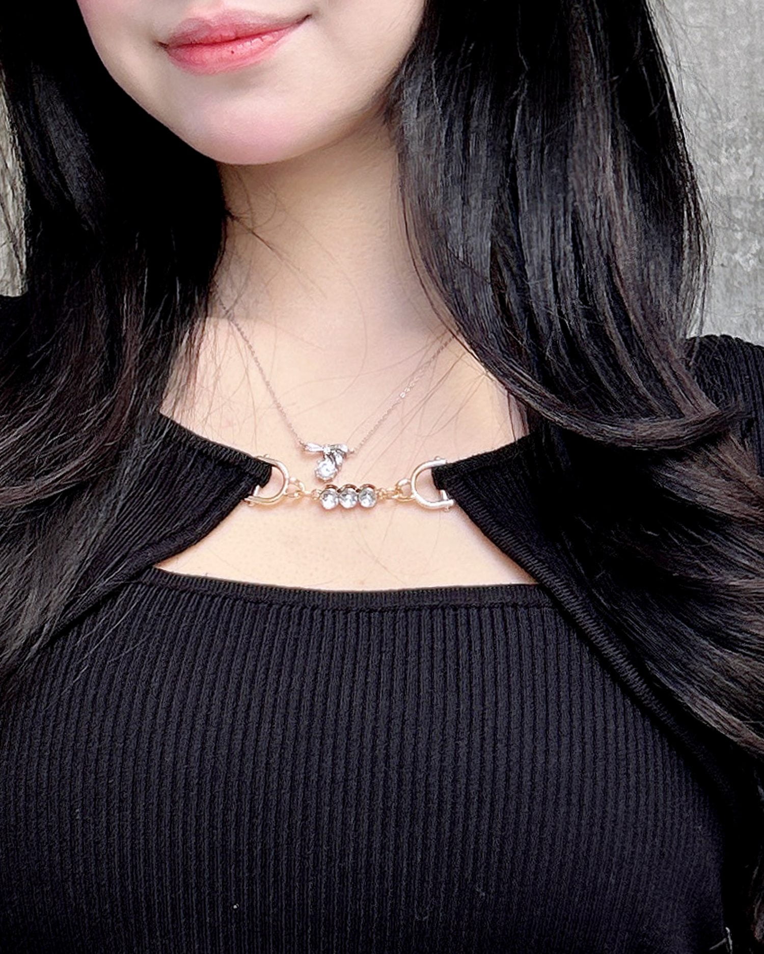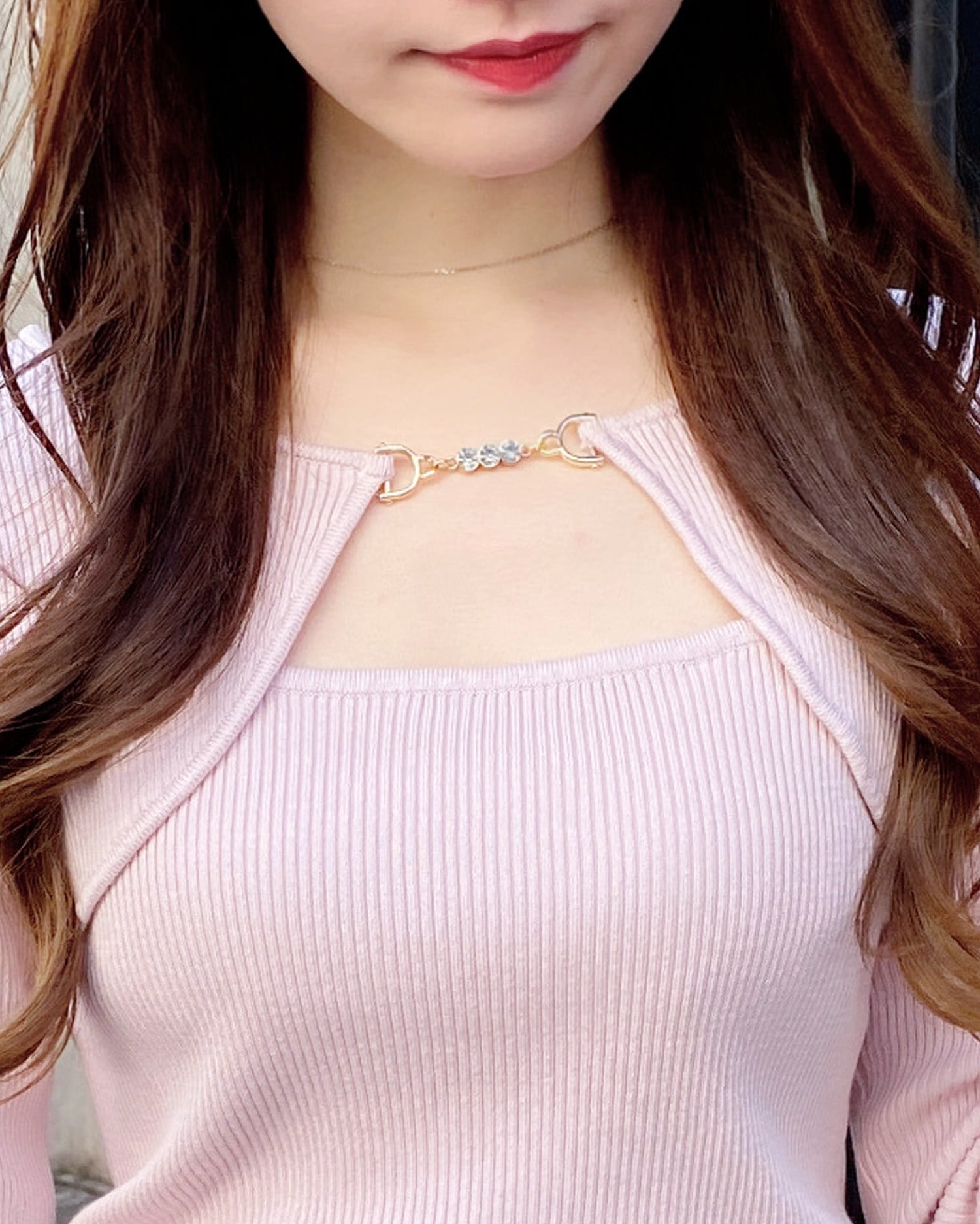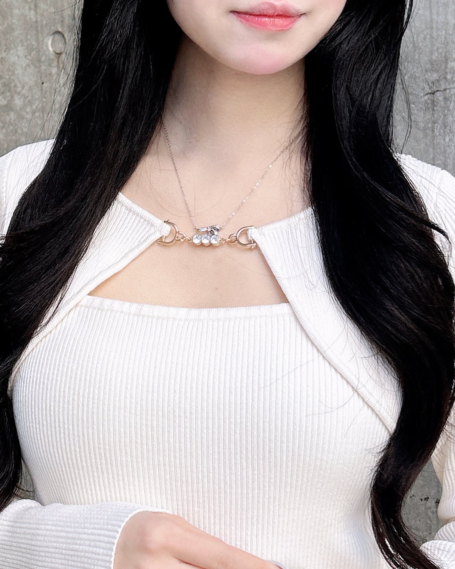 華奢なコードとの組み合わせでデコルテラインをキレイに見せてくれるのも◎