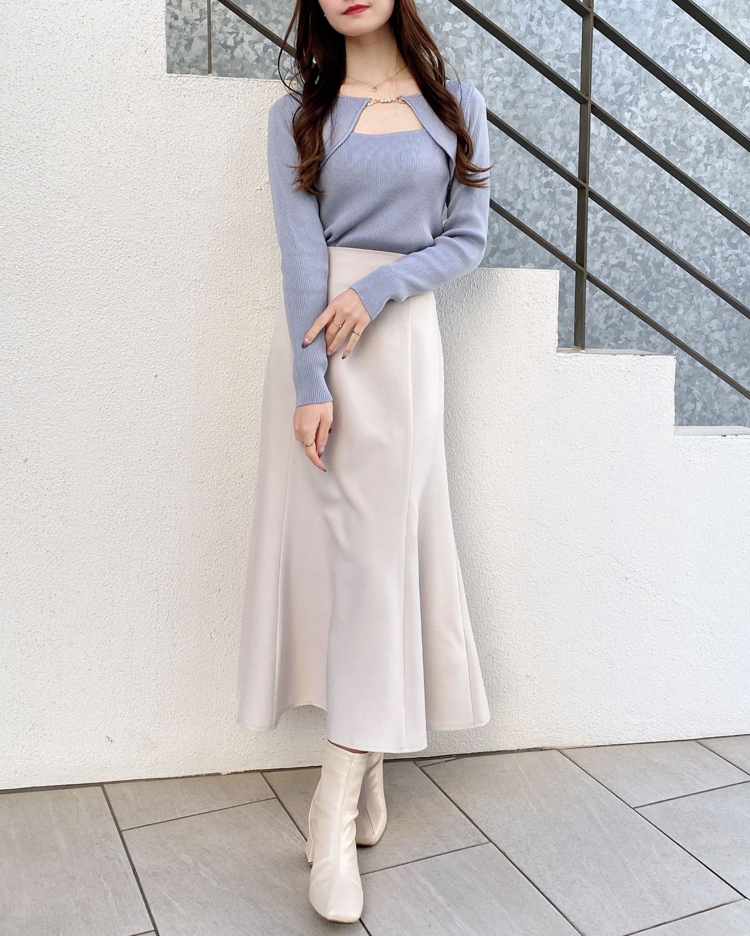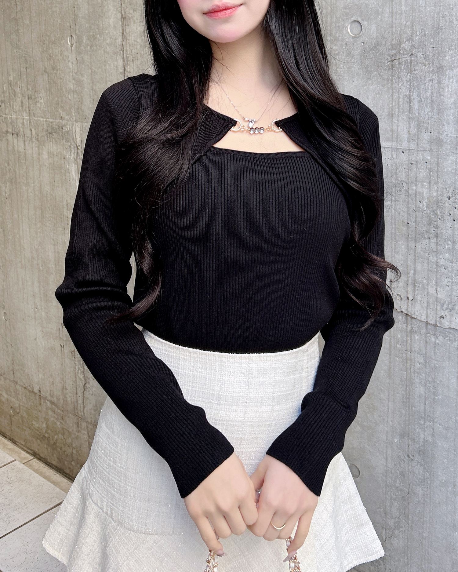 ミニスカートを合わせれば大人ガーリーなスタイリングも楽しめます♪