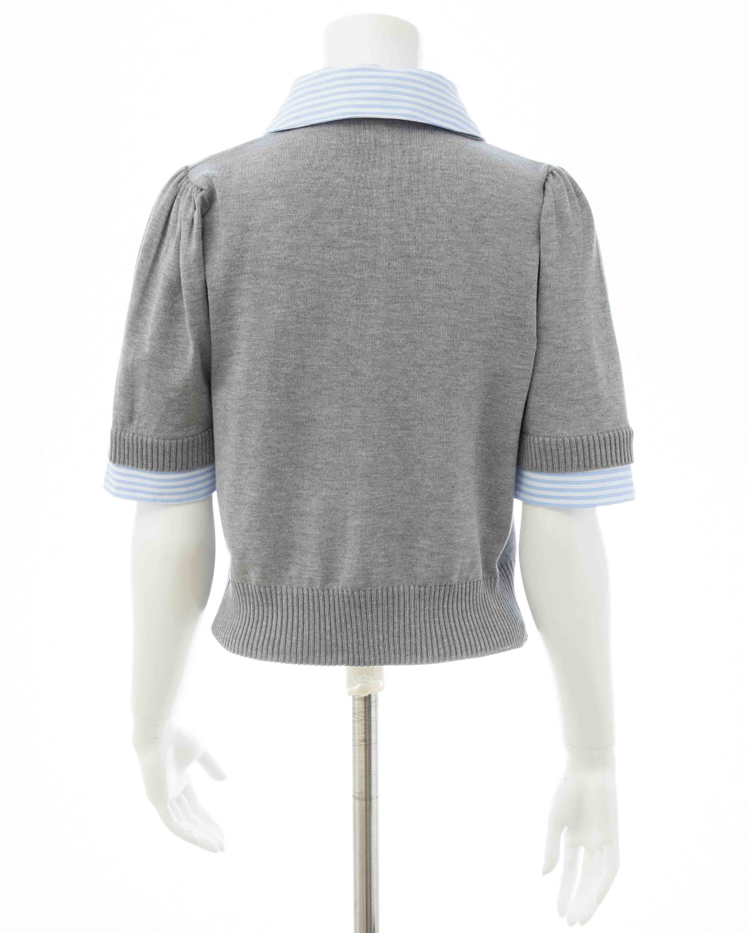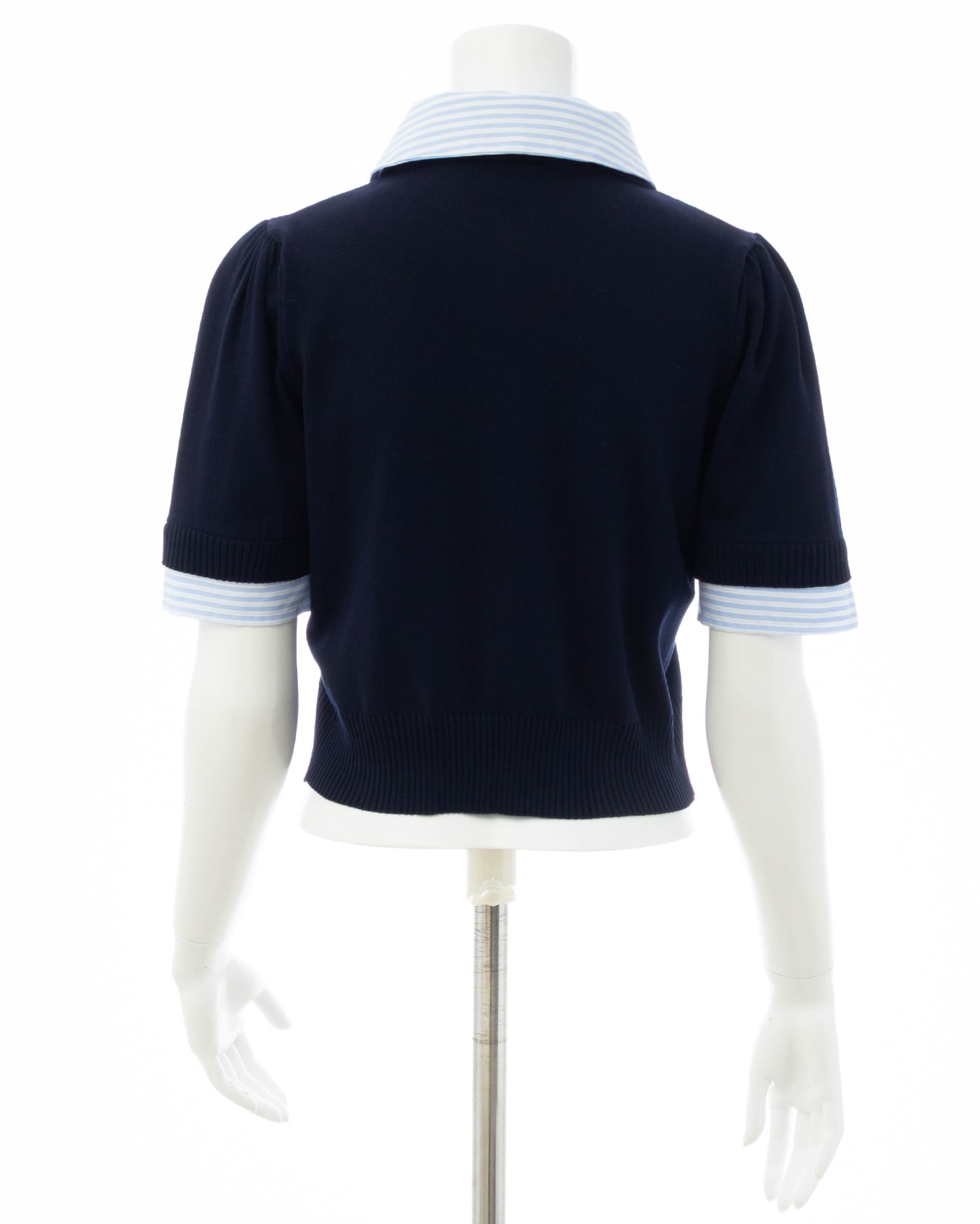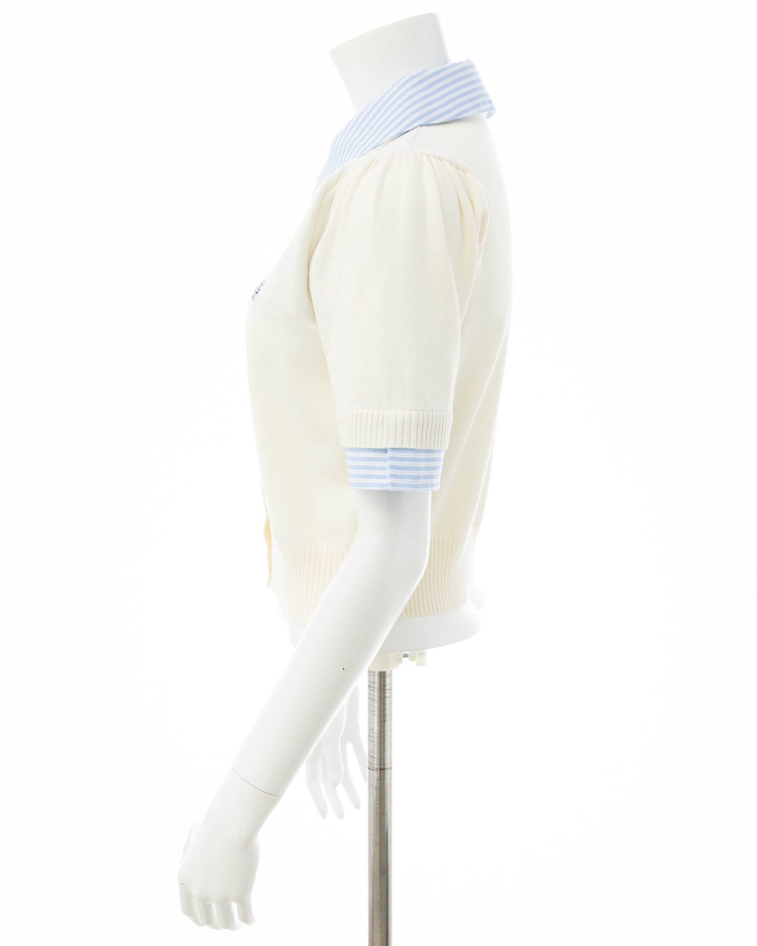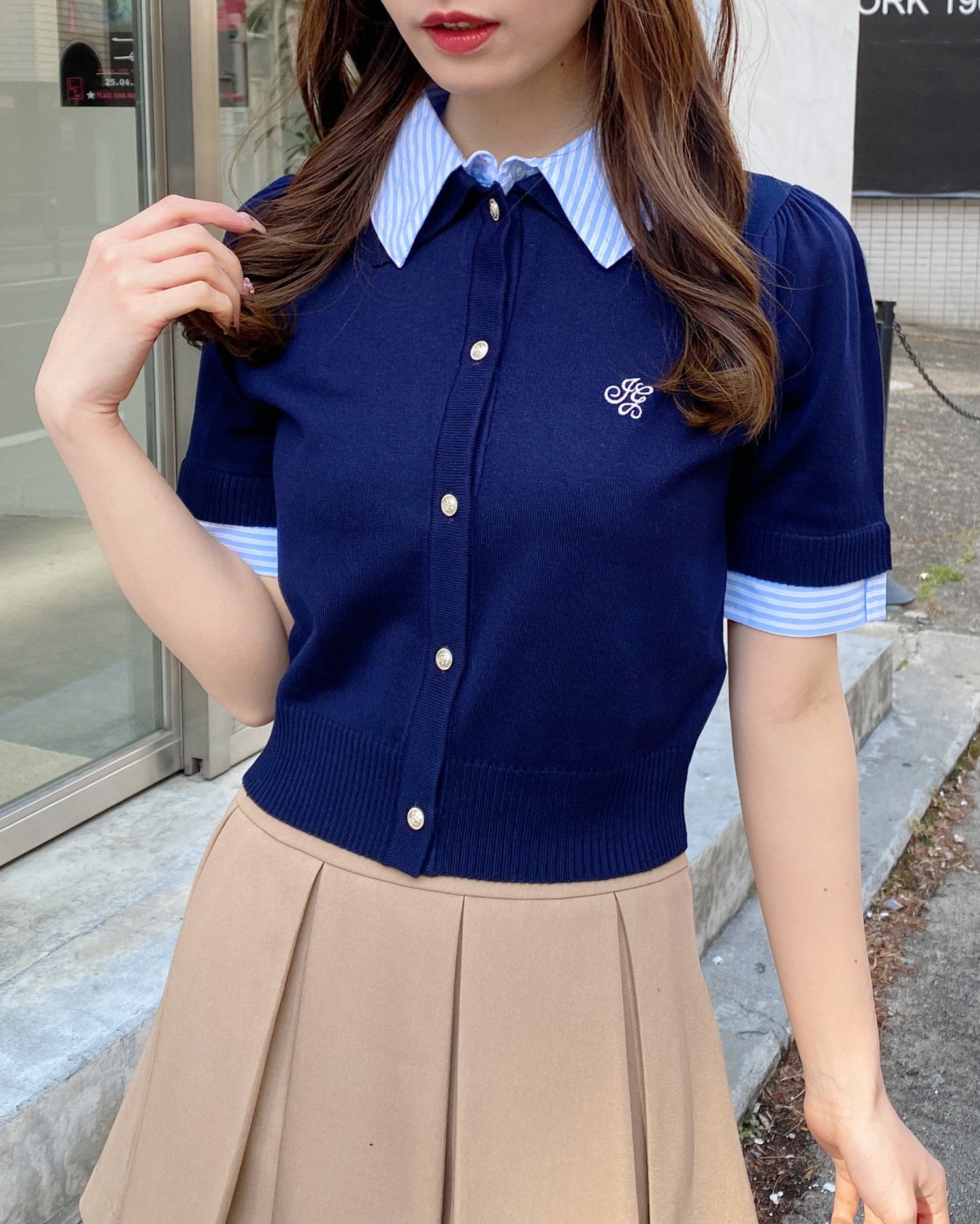 【スクール&ガーリーな雰囲気のレイヤード風半袖ニットトップス】