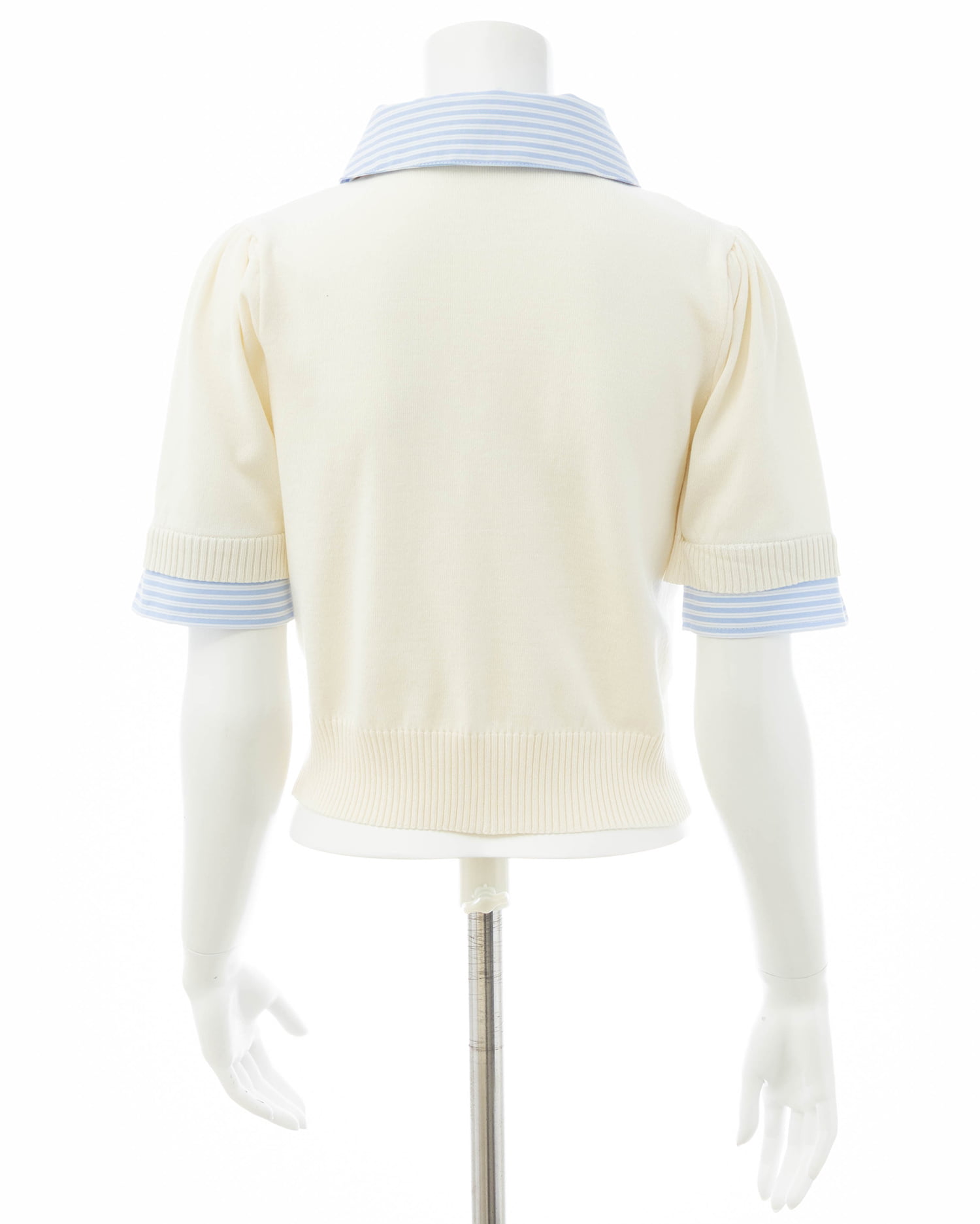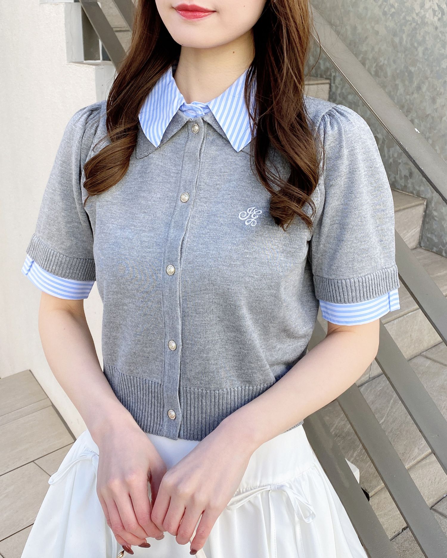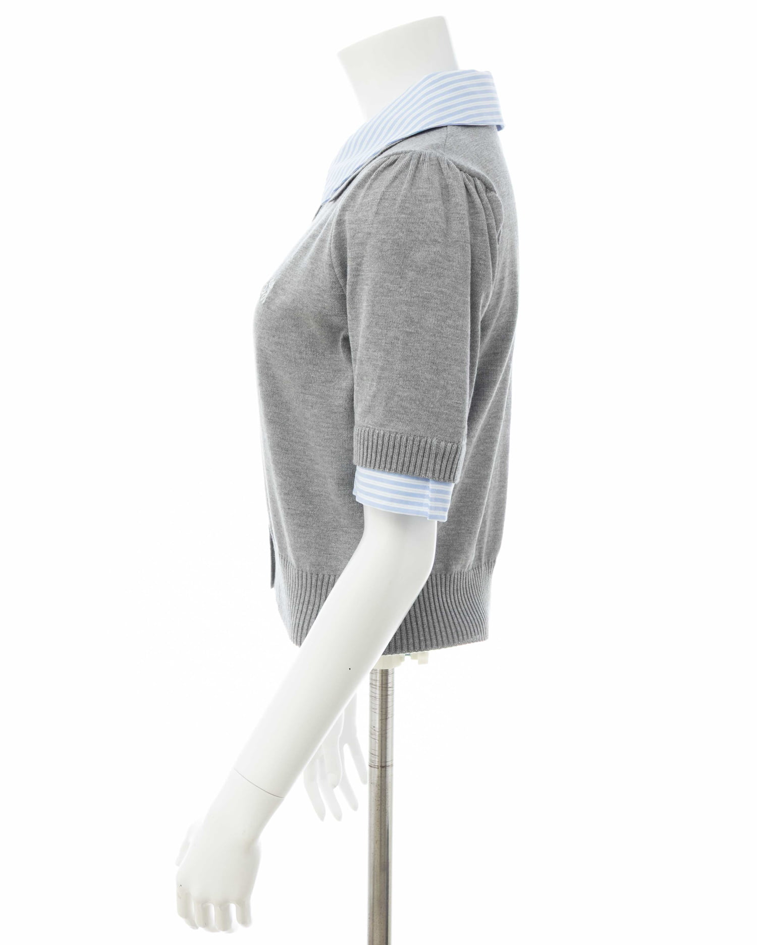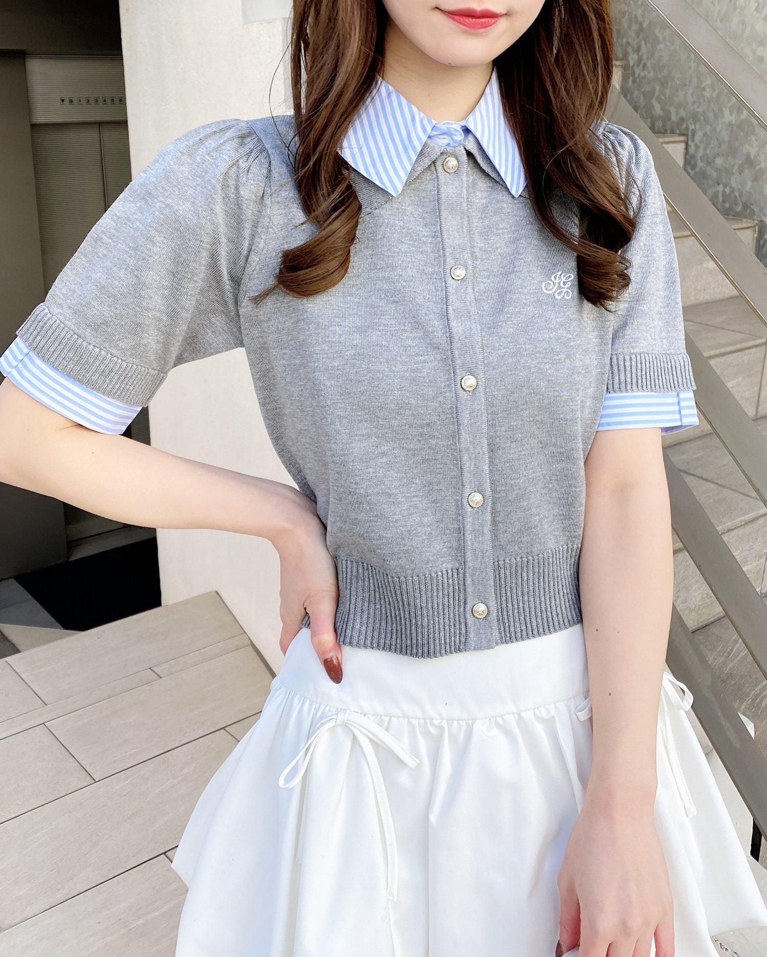【スクール&ガーリーな雰囲気のレイヤード風半袖ニットトップス】