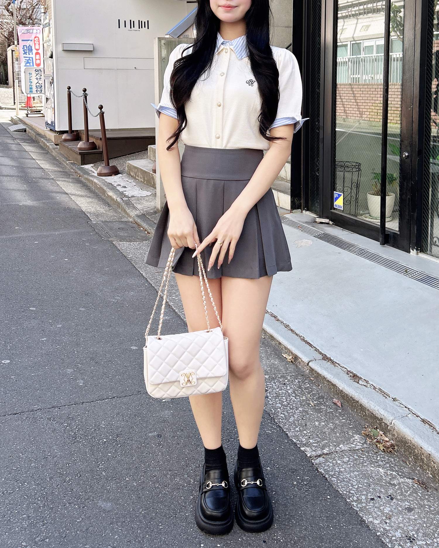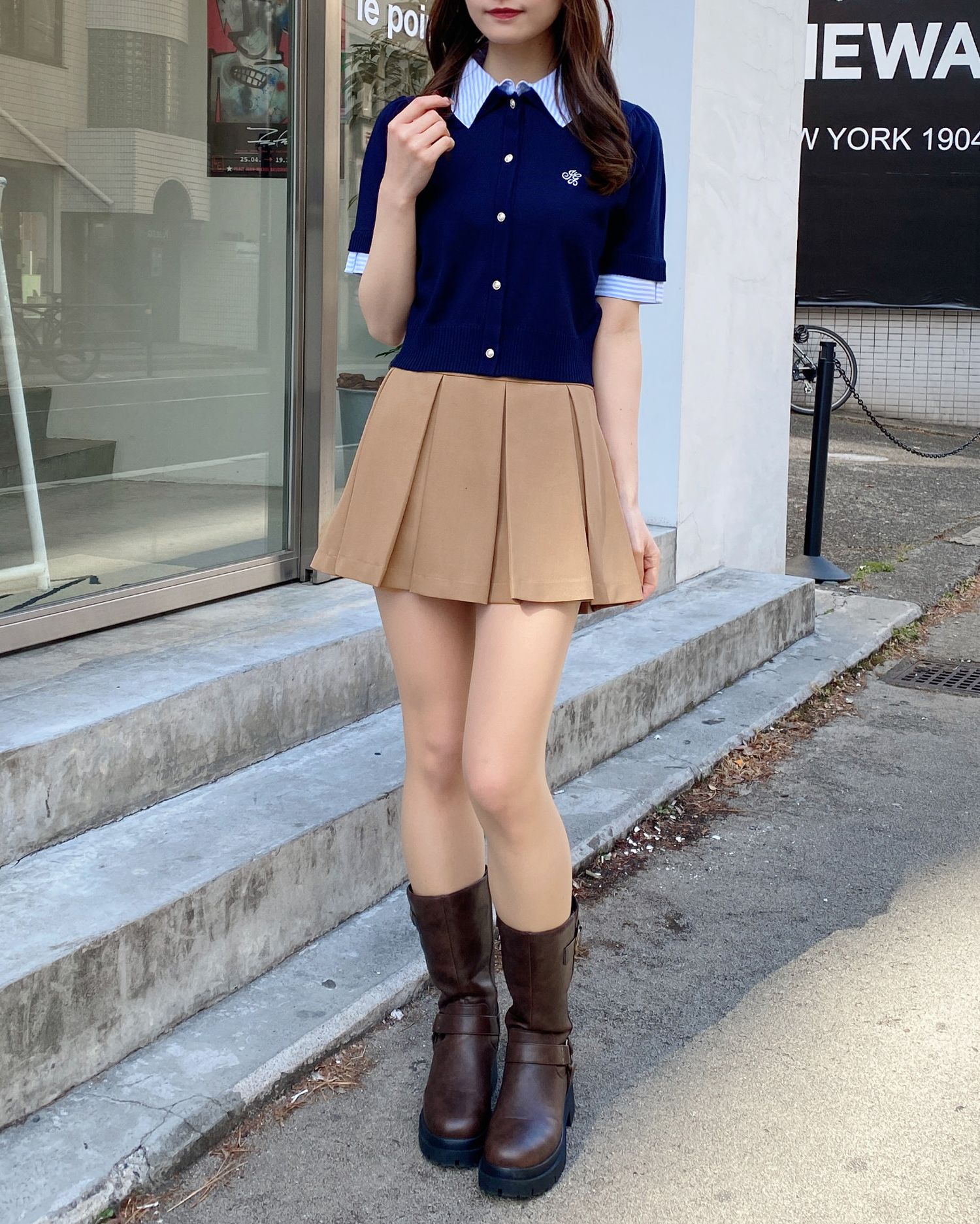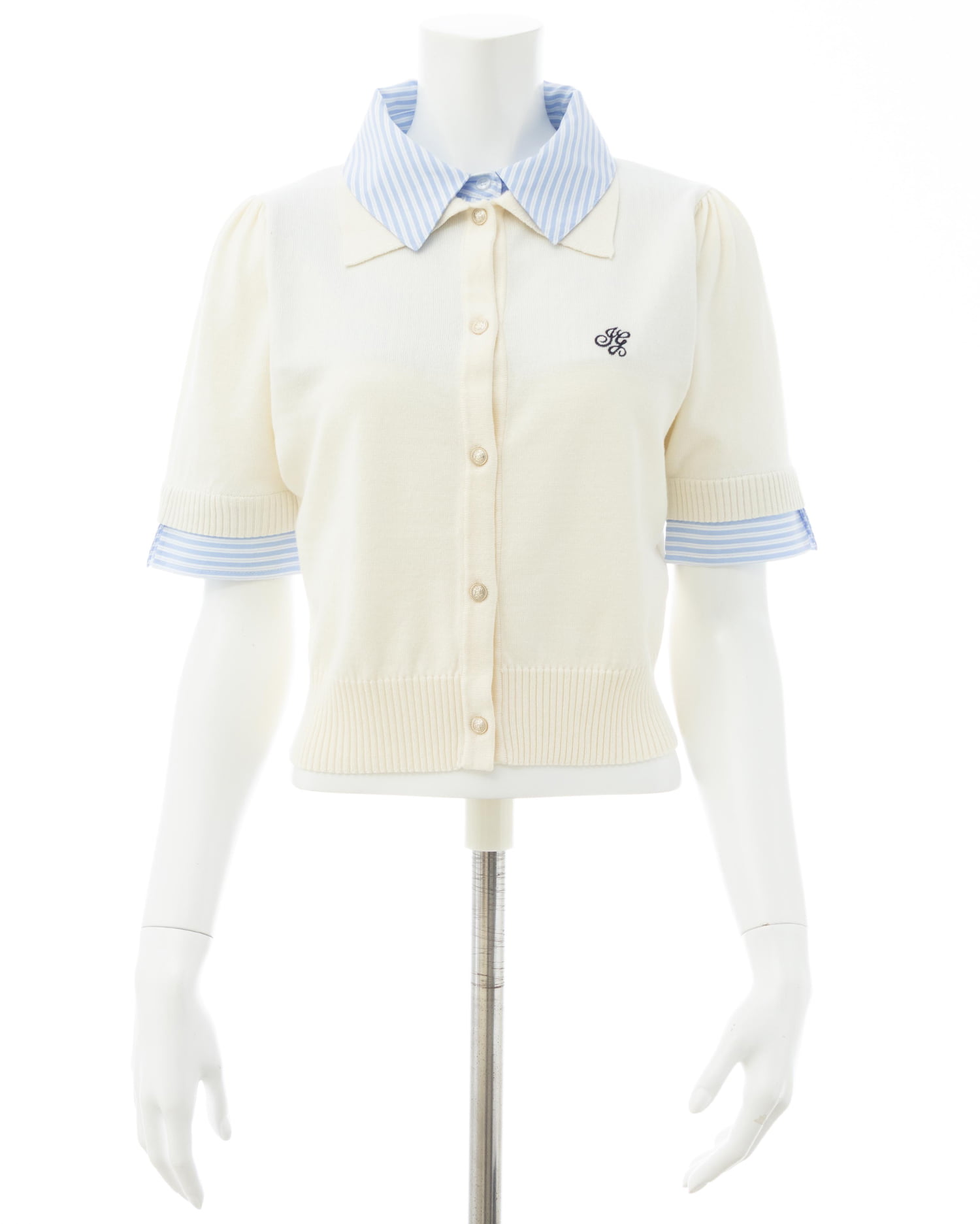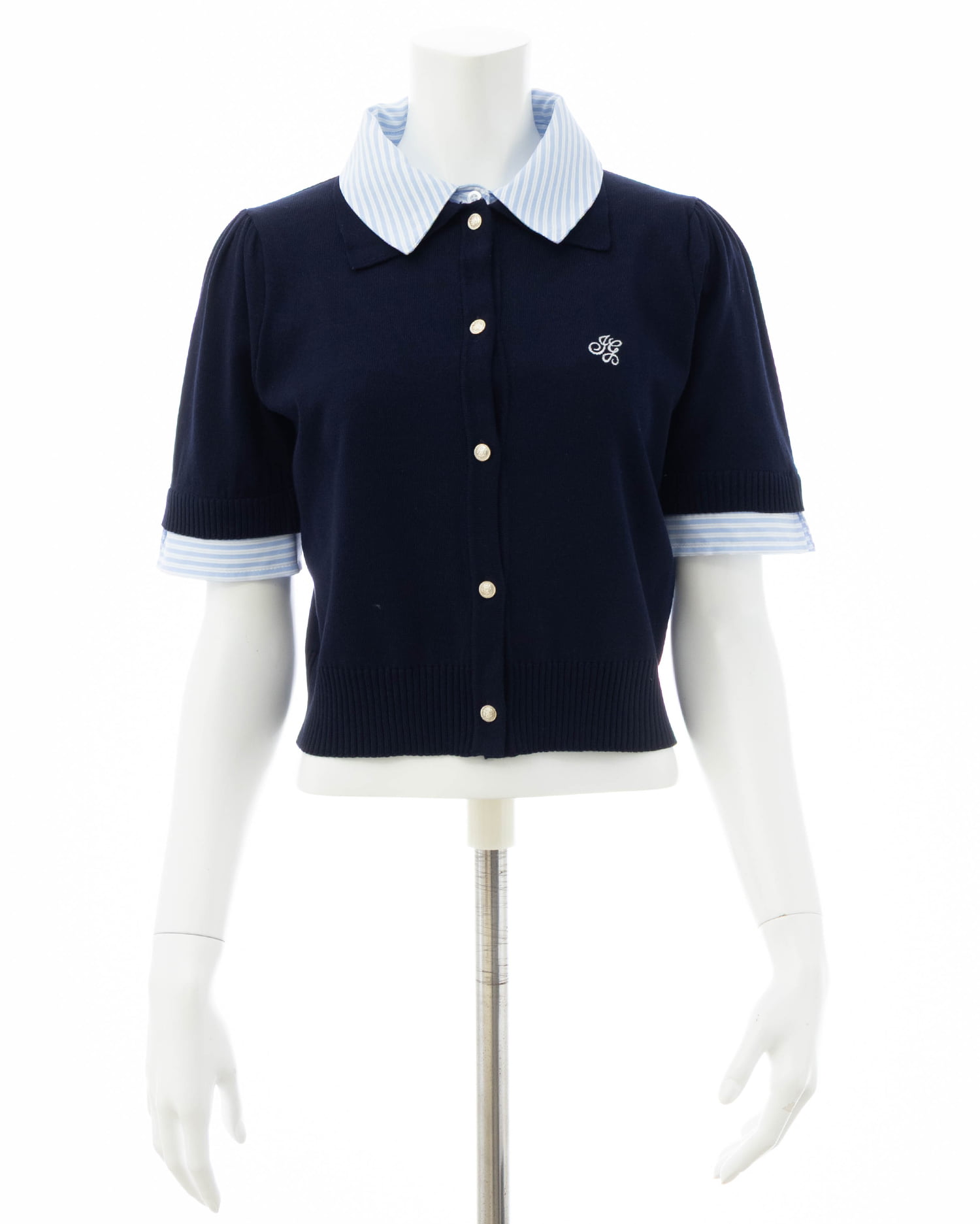 【スクール&ガーリーな雰囲気のレイヤード風半袖ニットトップス】