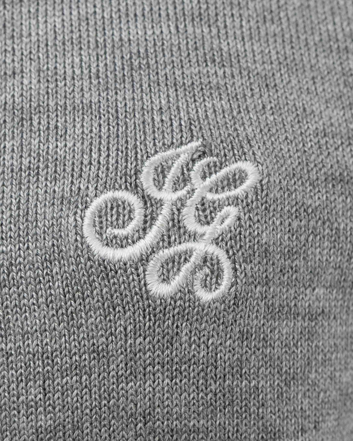 胸元のロゴとフロントの金ボタンがアクセントに。