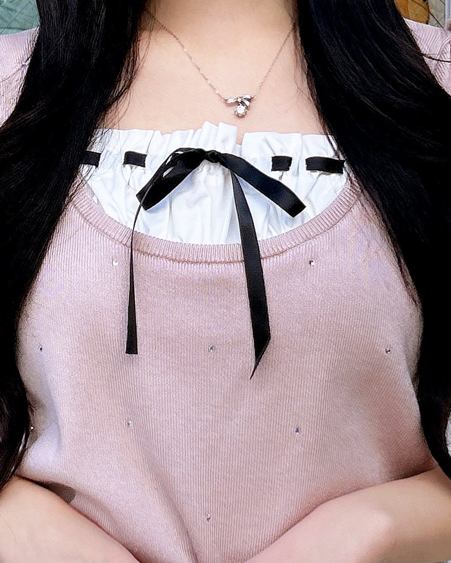 【キラキラしたビジューがかわいすぎる♡レイヤード風ニット】
