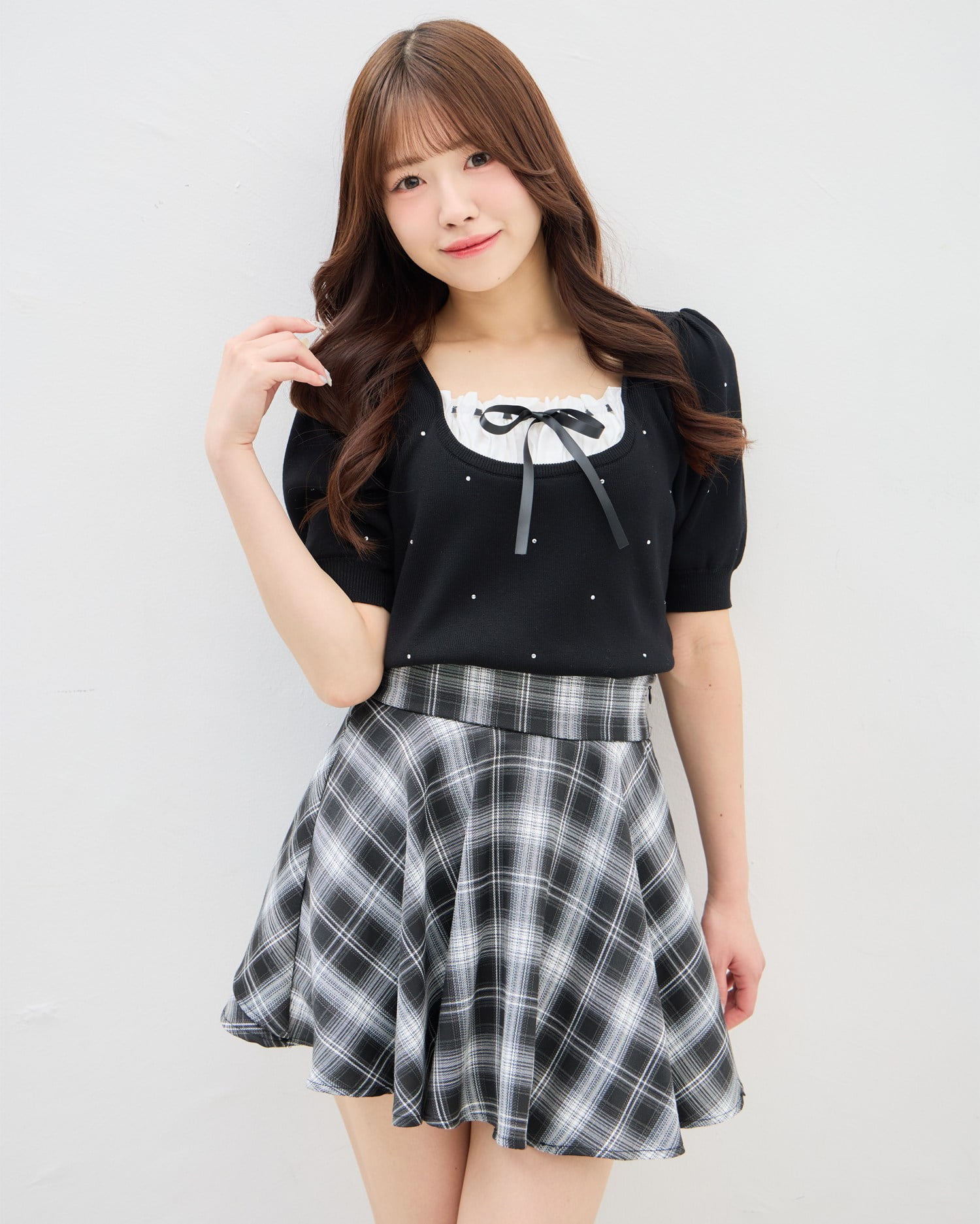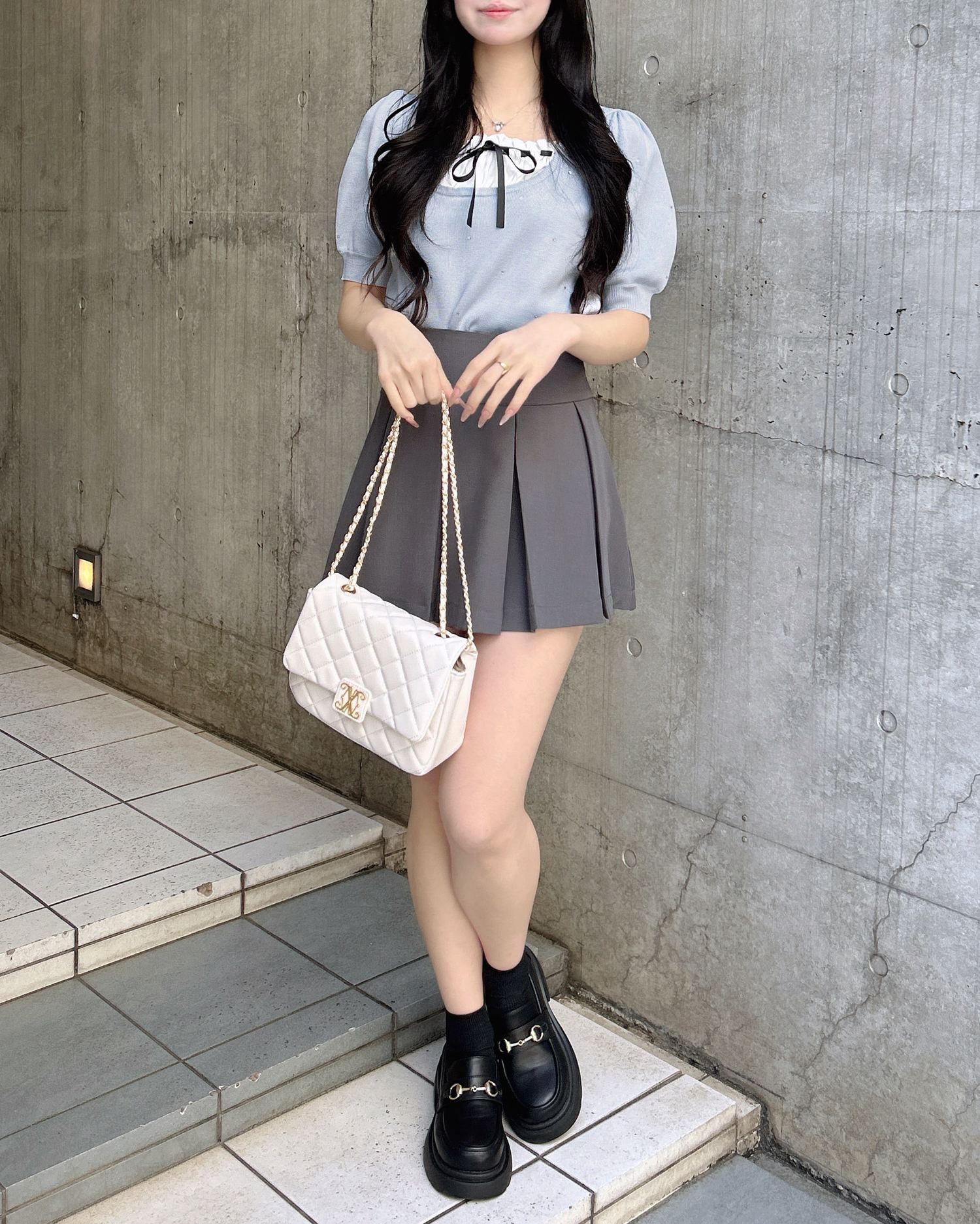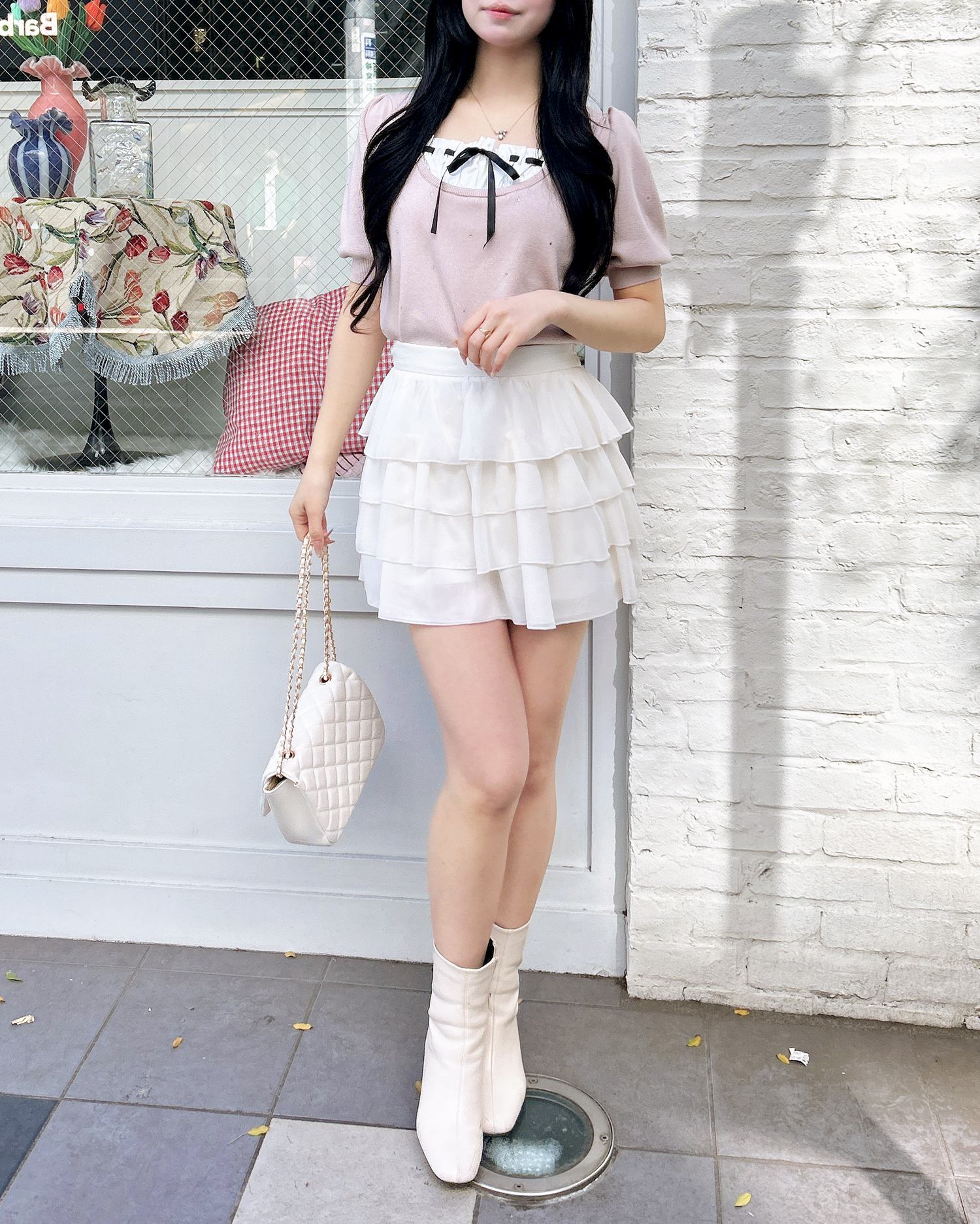 ミニスカートを合わせた王道ガーリーコーデに♡