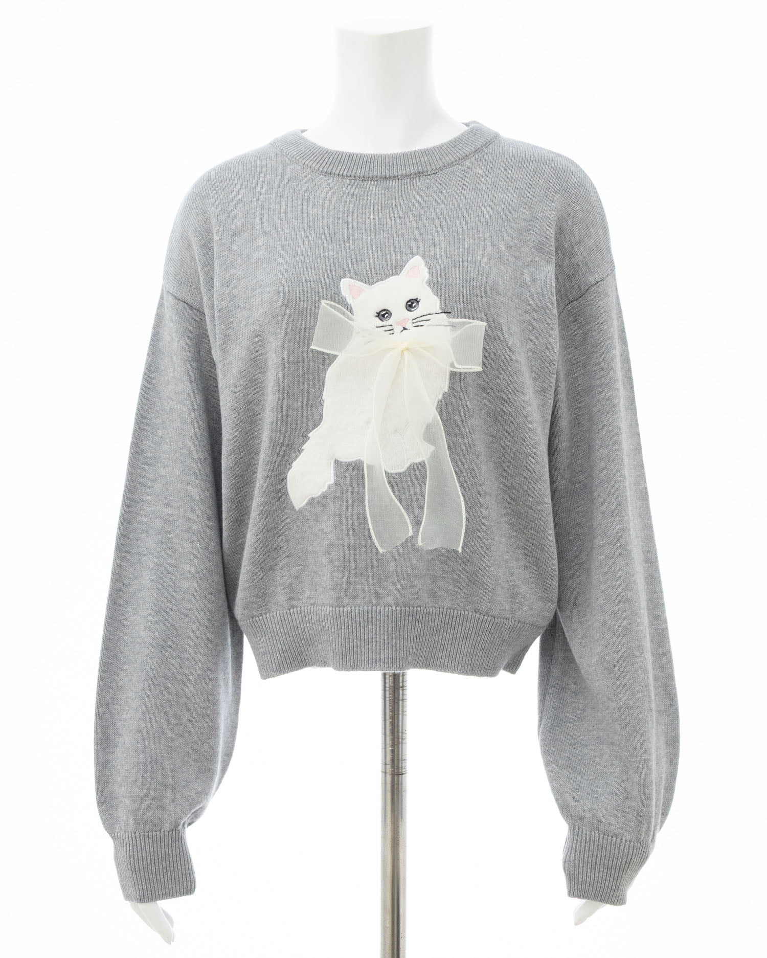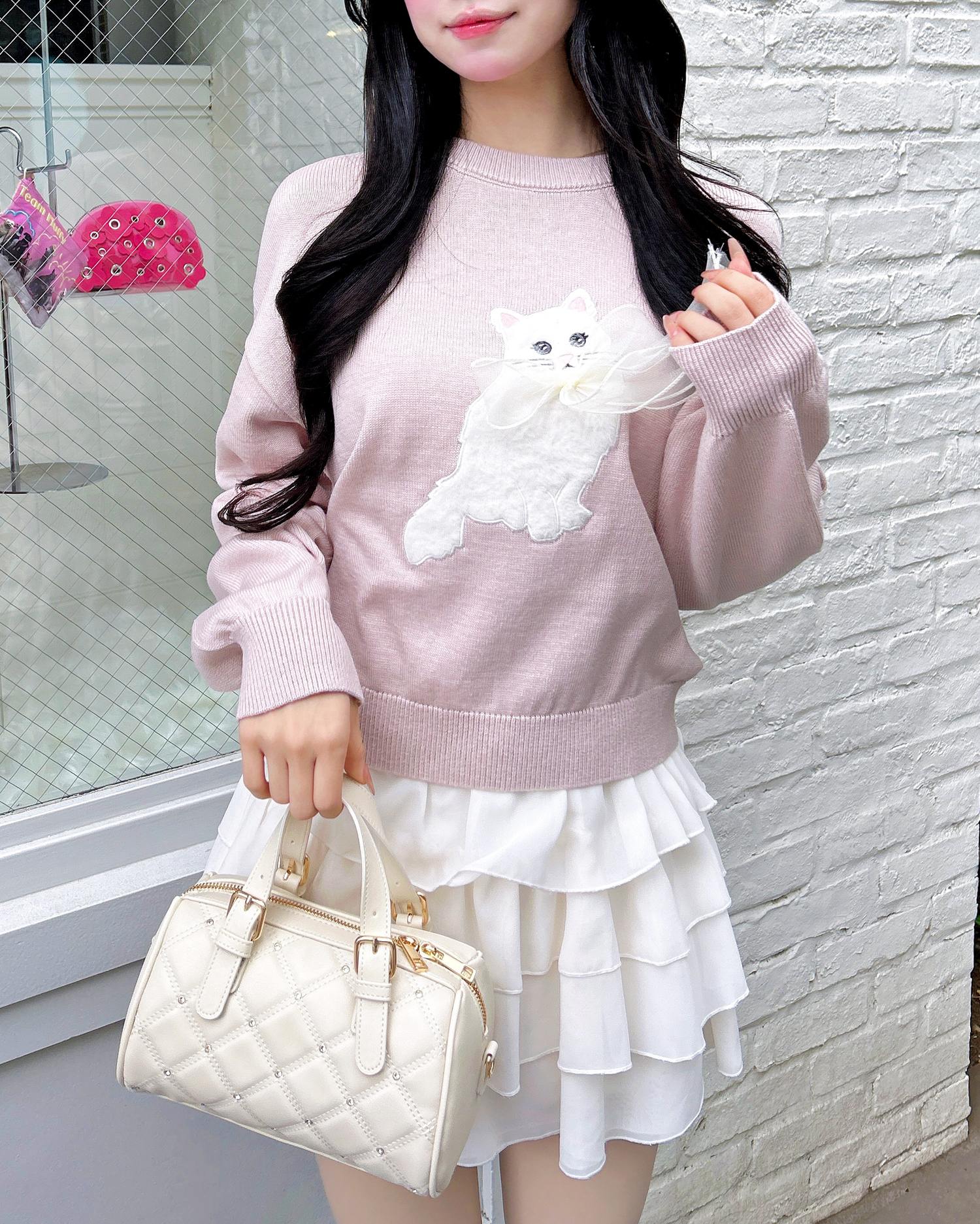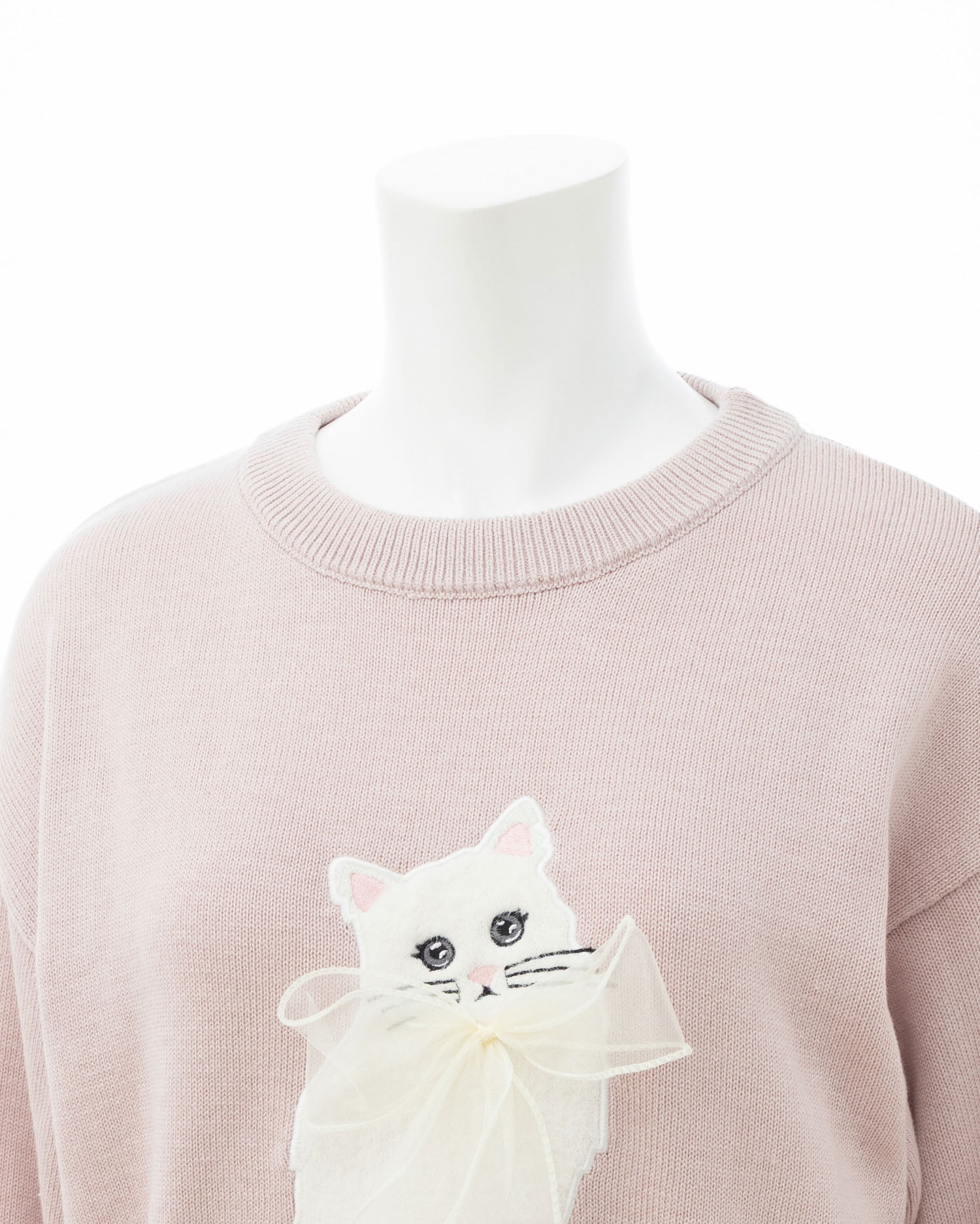 ねこの首元にはシフォンの立体リボンでアクセントをプラス。