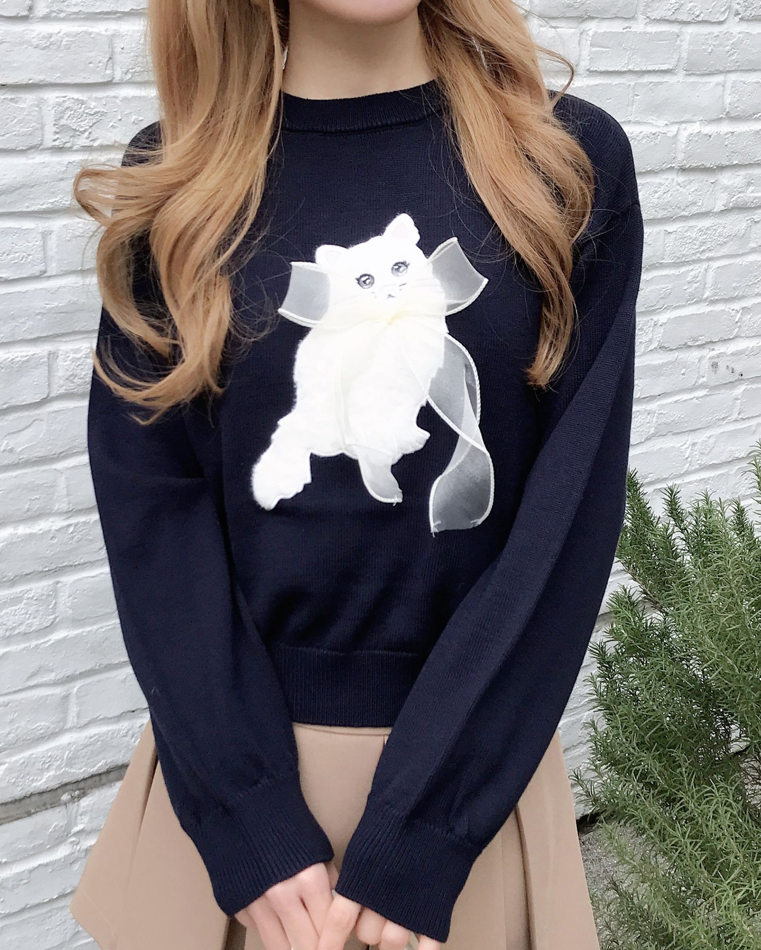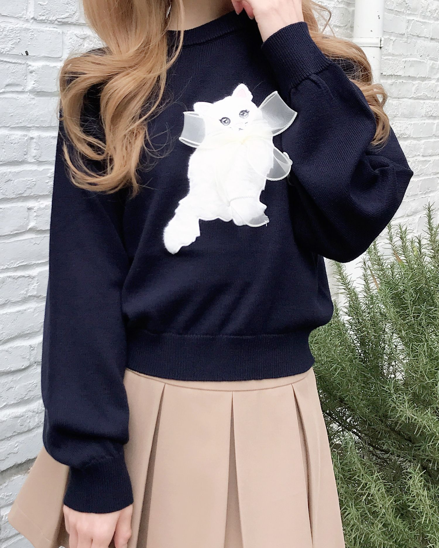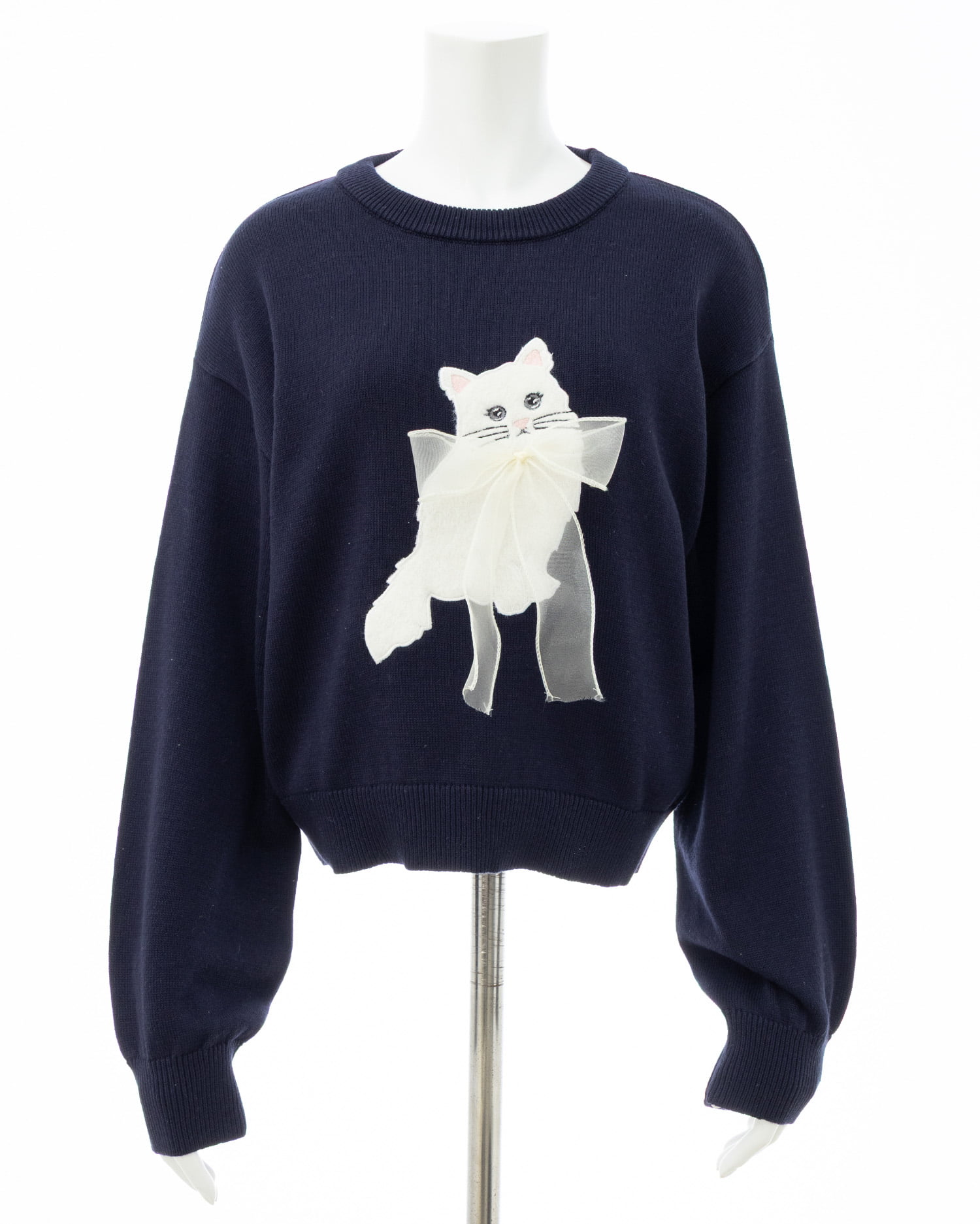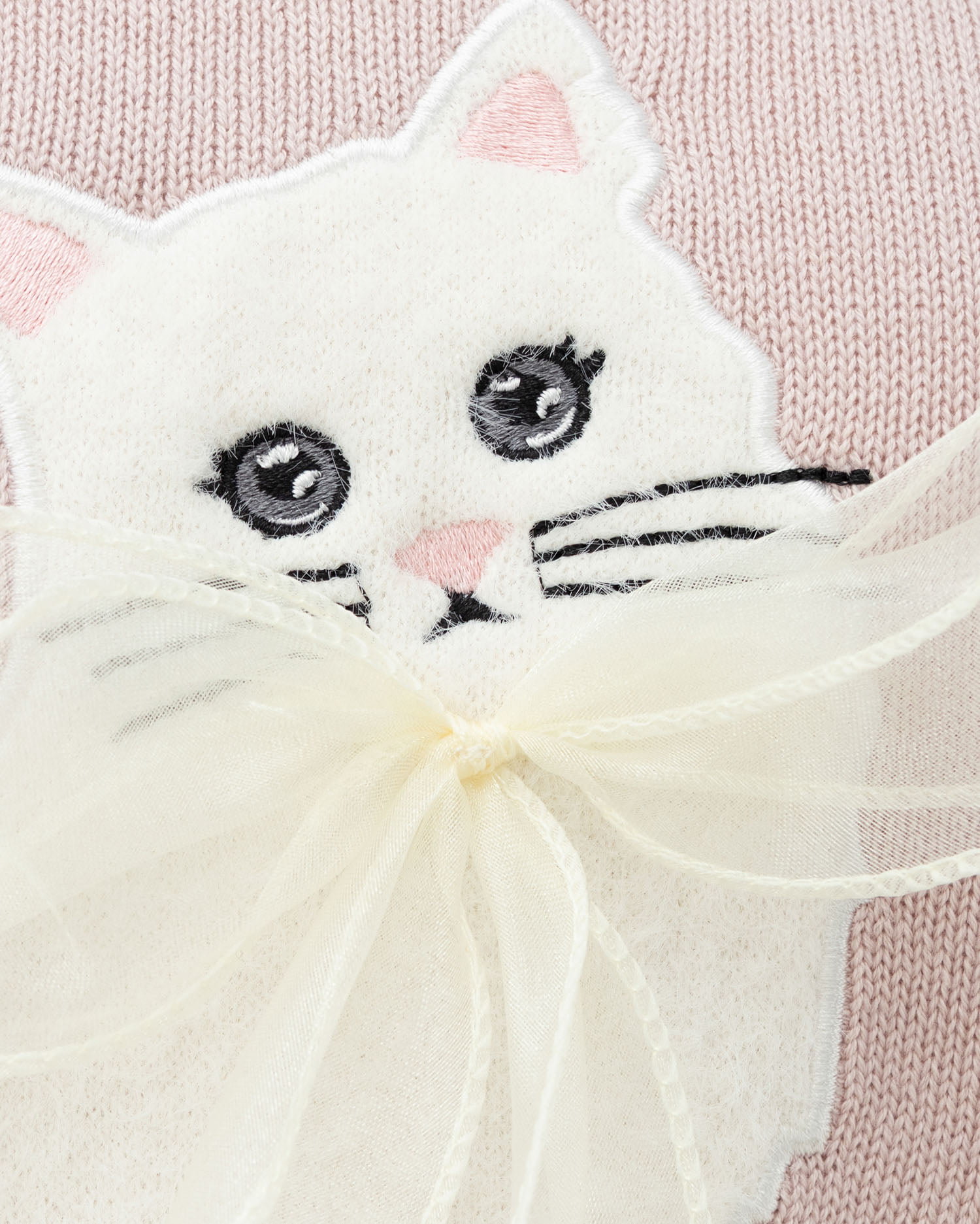 ねこの首元にはシフォンの立体リボンでアクセントをプラス。