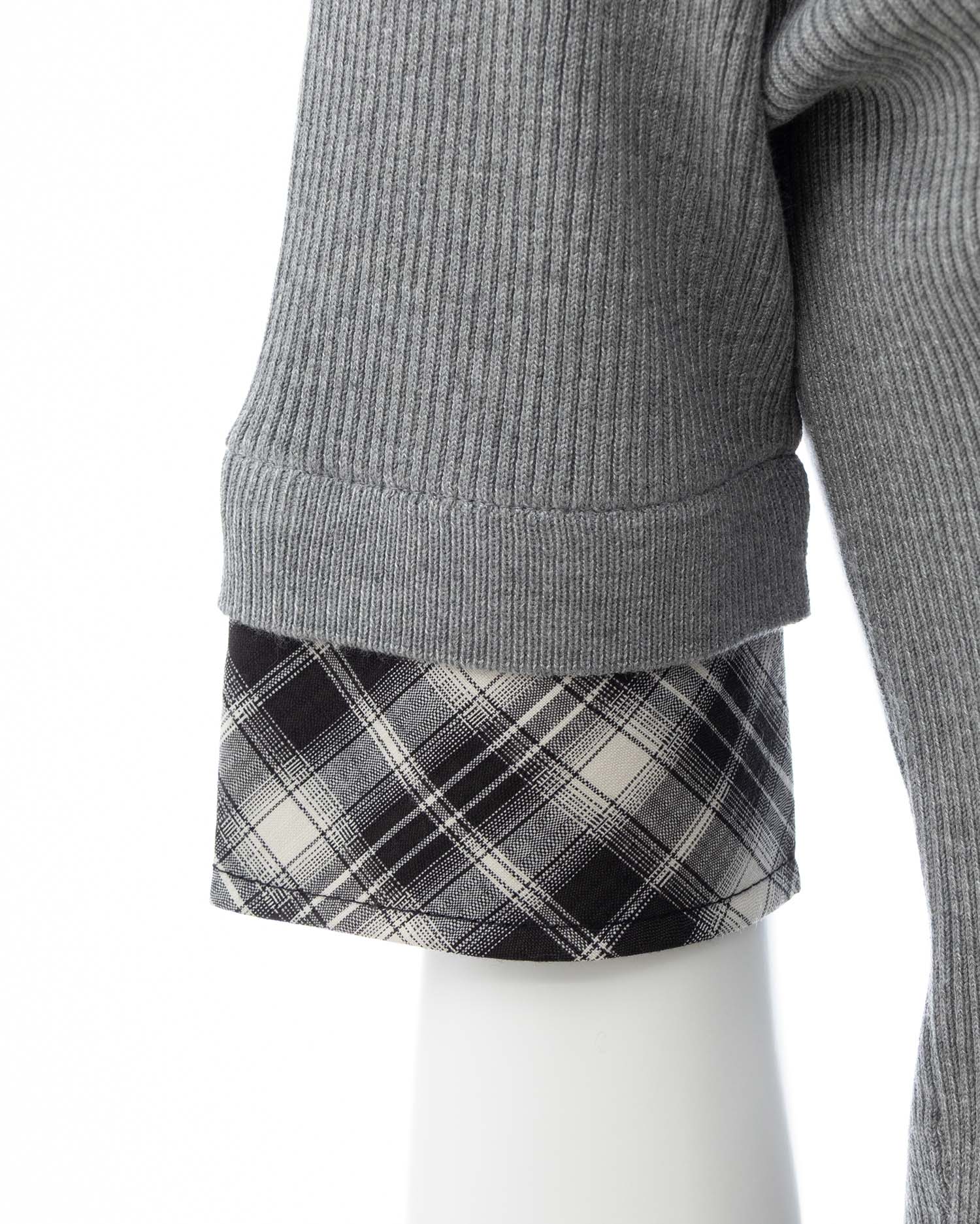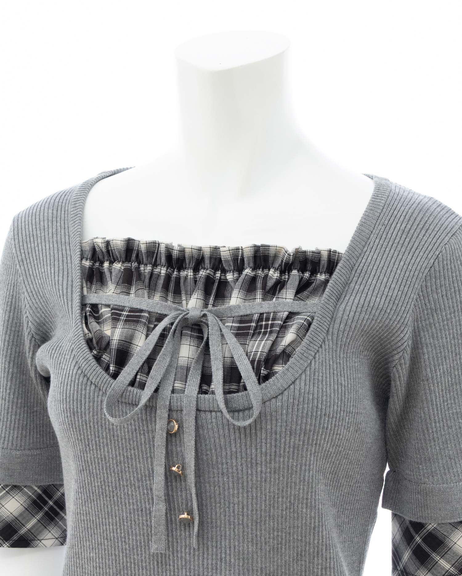 1枚ですっきり着られるドッキングデザインのニットトップス。
