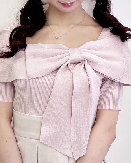 大きなリボンをあしらった、主役級のニットトップスです。