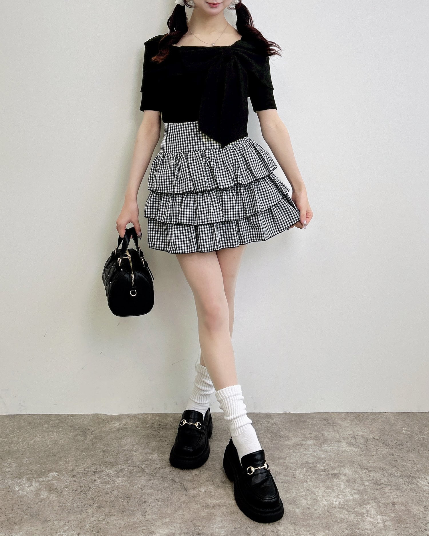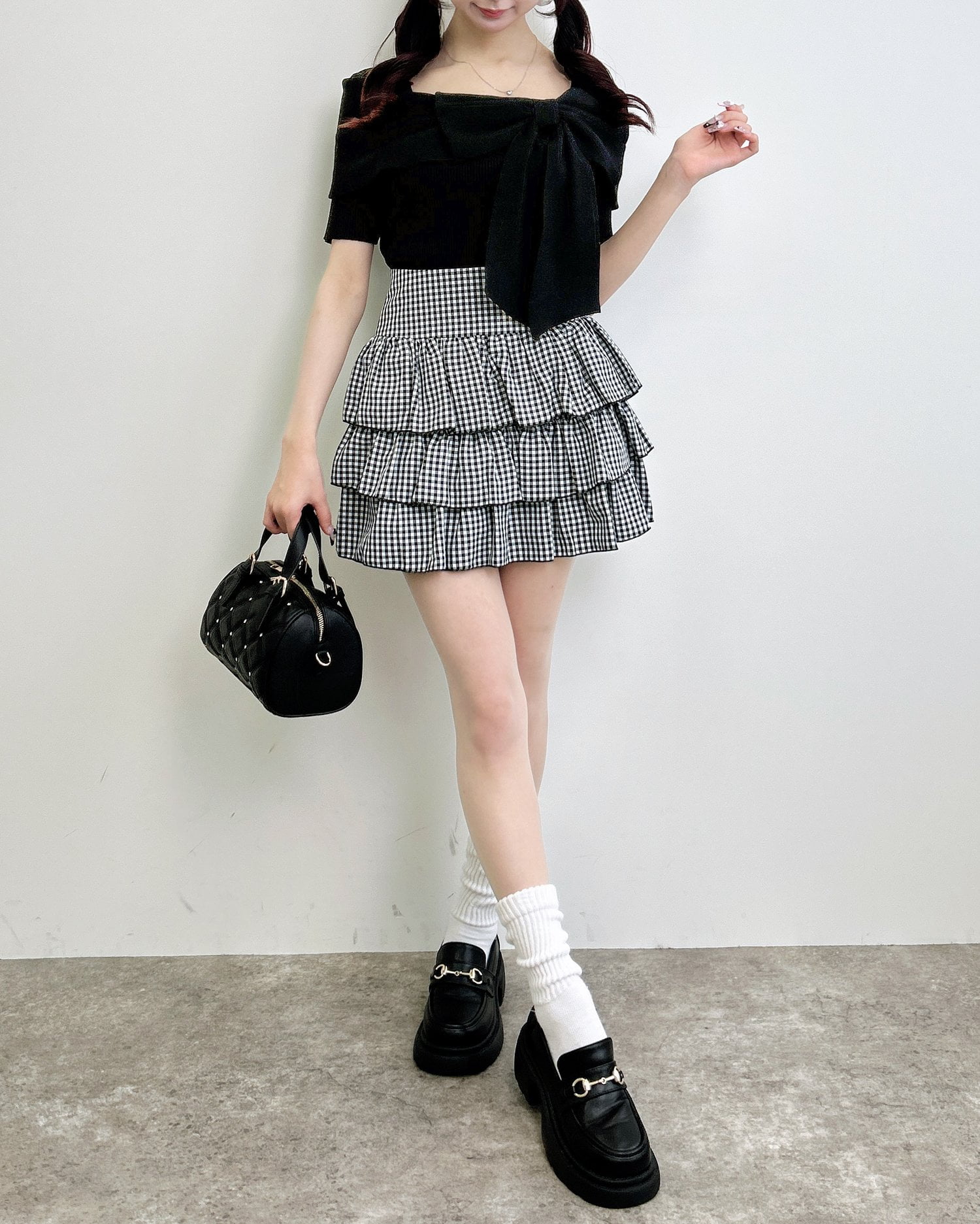 ミニスカートと合わせてより可愛らしいガーリーコーデにするのもおすすめです。
