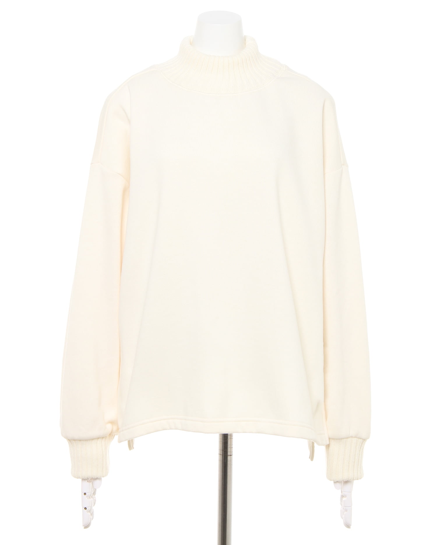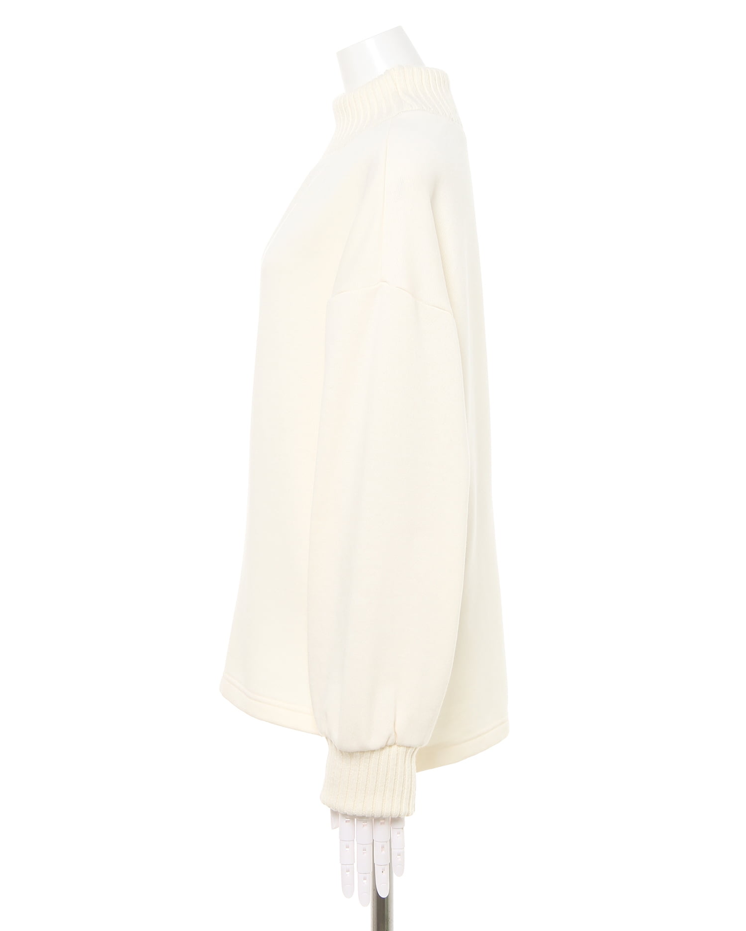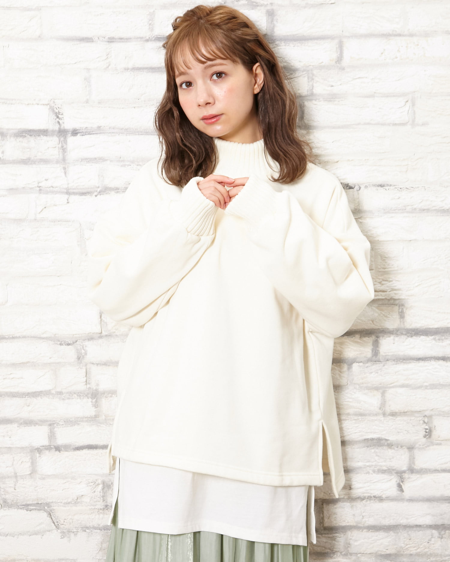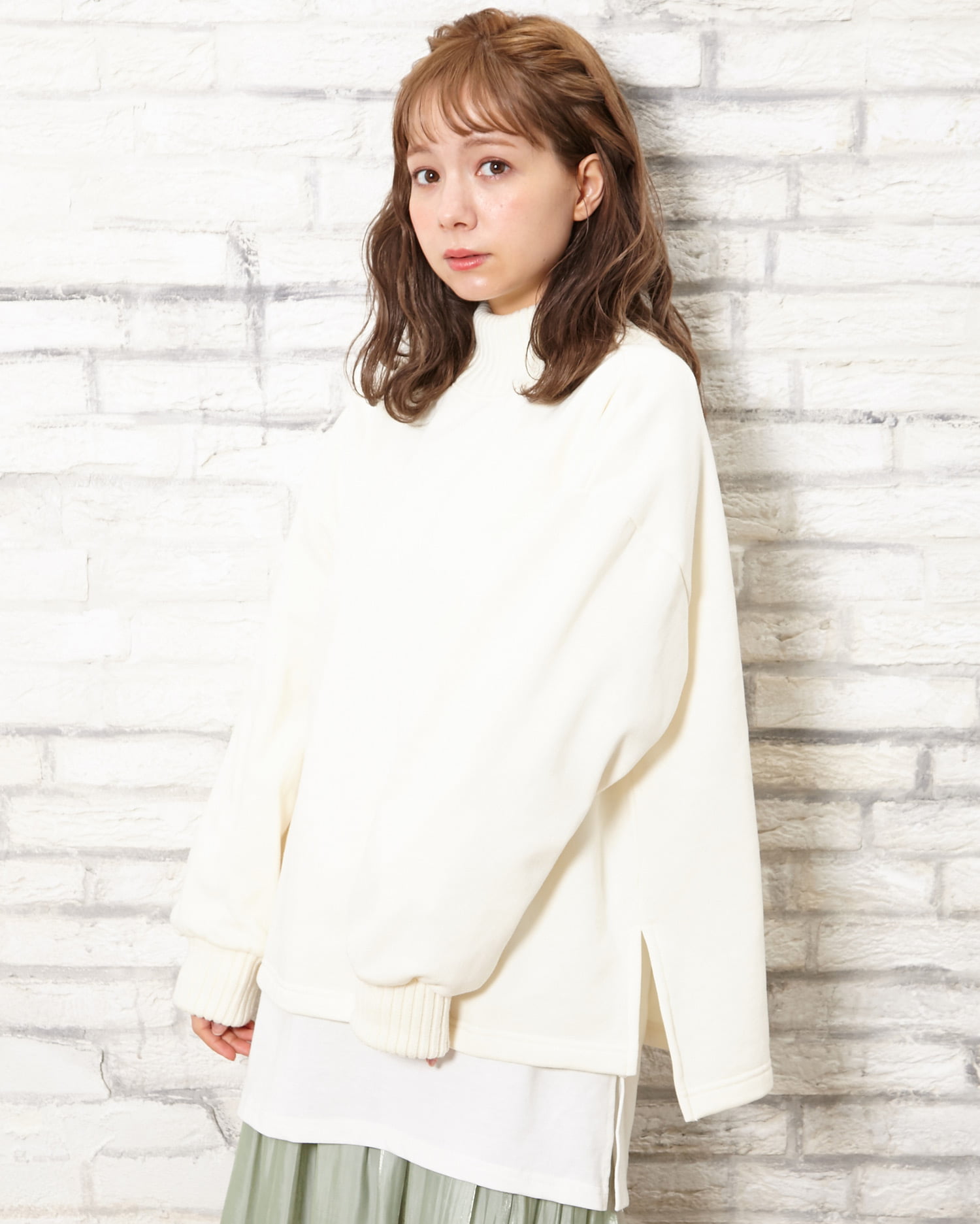 今年らしいゆったりシルエットで1枚で着てもサマになる優秀トップス。シンプルながらモックネックや袖口の異素材の変化で表情豊かな着こなしを楽しめる技ありのアイテムです。裾サイドにスリットを入れて前後差を付けることでボリュームがありながらもすっきりとした印象に。ふんわりやわらかな裏起毛素材で暖かく、やや薄手の素材はコートのインナーにも着回せて重宝します。