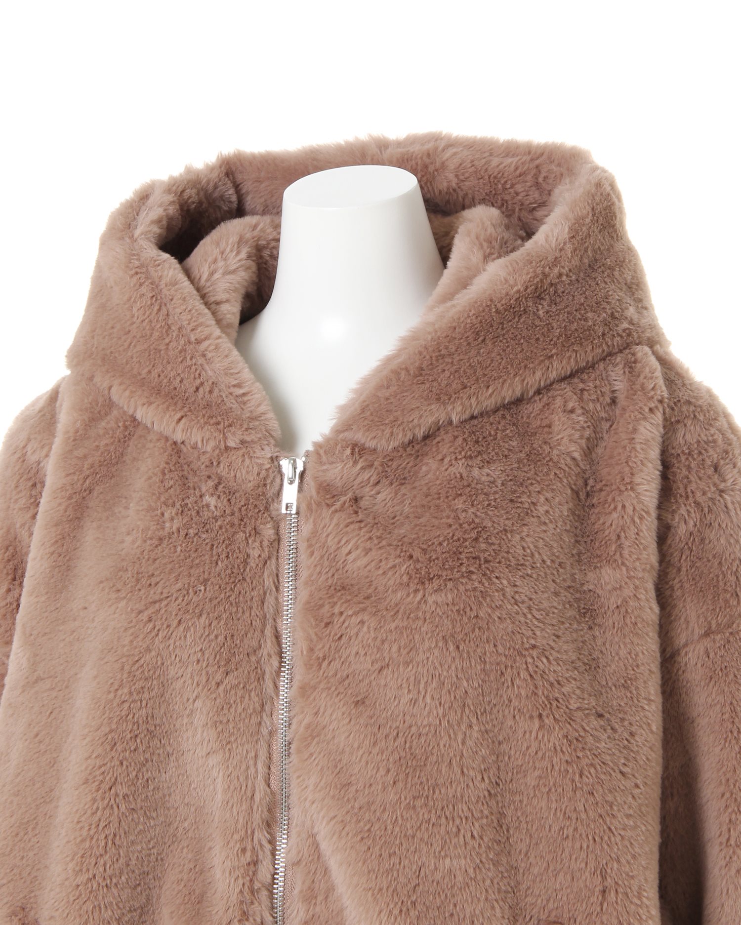 存在感抜群のボリューム感のあるファーで愛されコーデが完成するパーカーブルゾン。毛足のあるふわもこのエコファーデザインはサッと羽織るだけで旬のスタイルに導きます。ビックシルエットもショートな丈ですっきり着られるのが魅力。さらりとした滑らかな裏地を付けているのでインナーもゴワゴワせずに着られます。ベーシックなカラー展開でデイリーユースにオススメ。