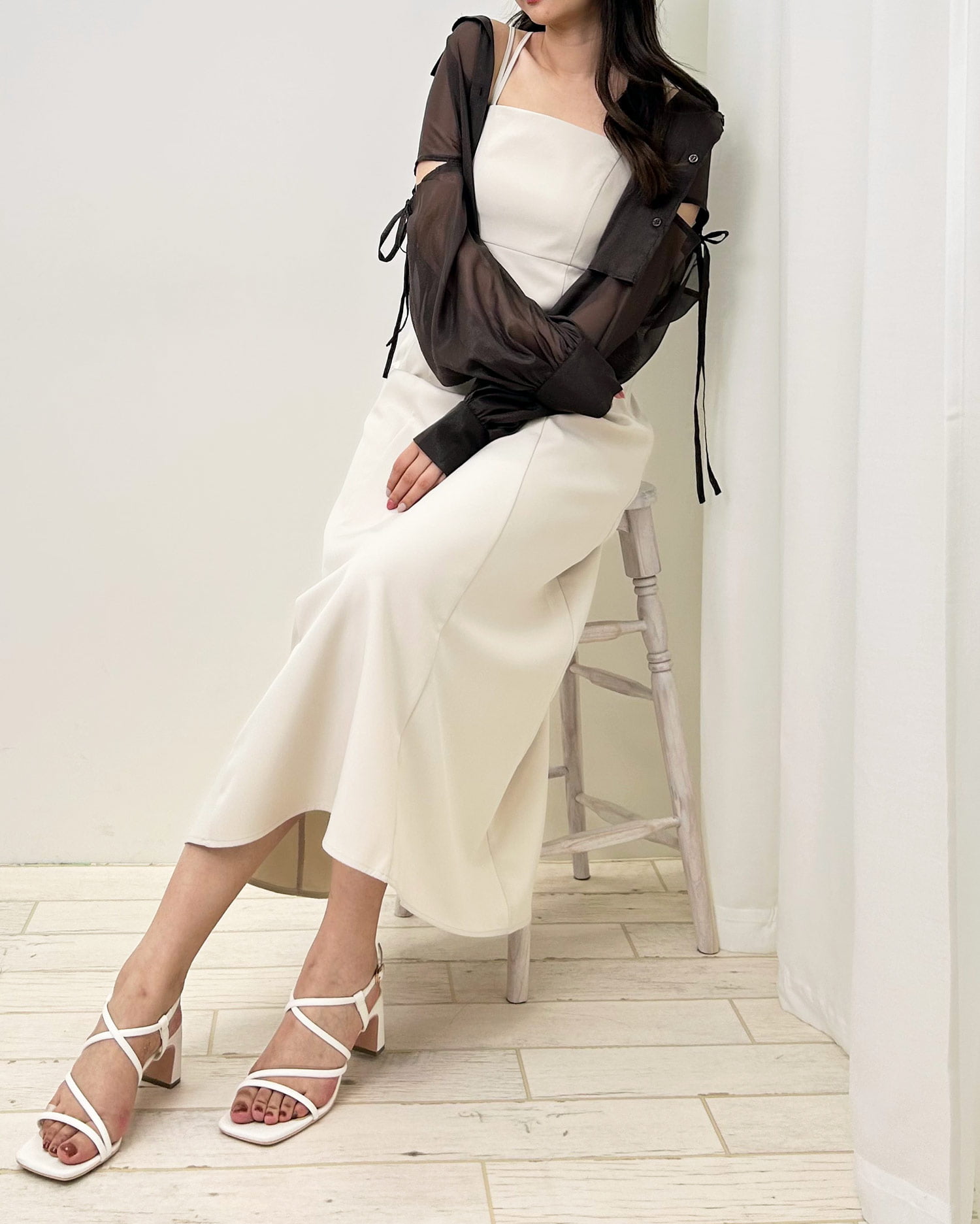 ・シアー感や肌見せをより効果的に魅せるために、インナーはキャミソールやタンクトップがおすすめです◎