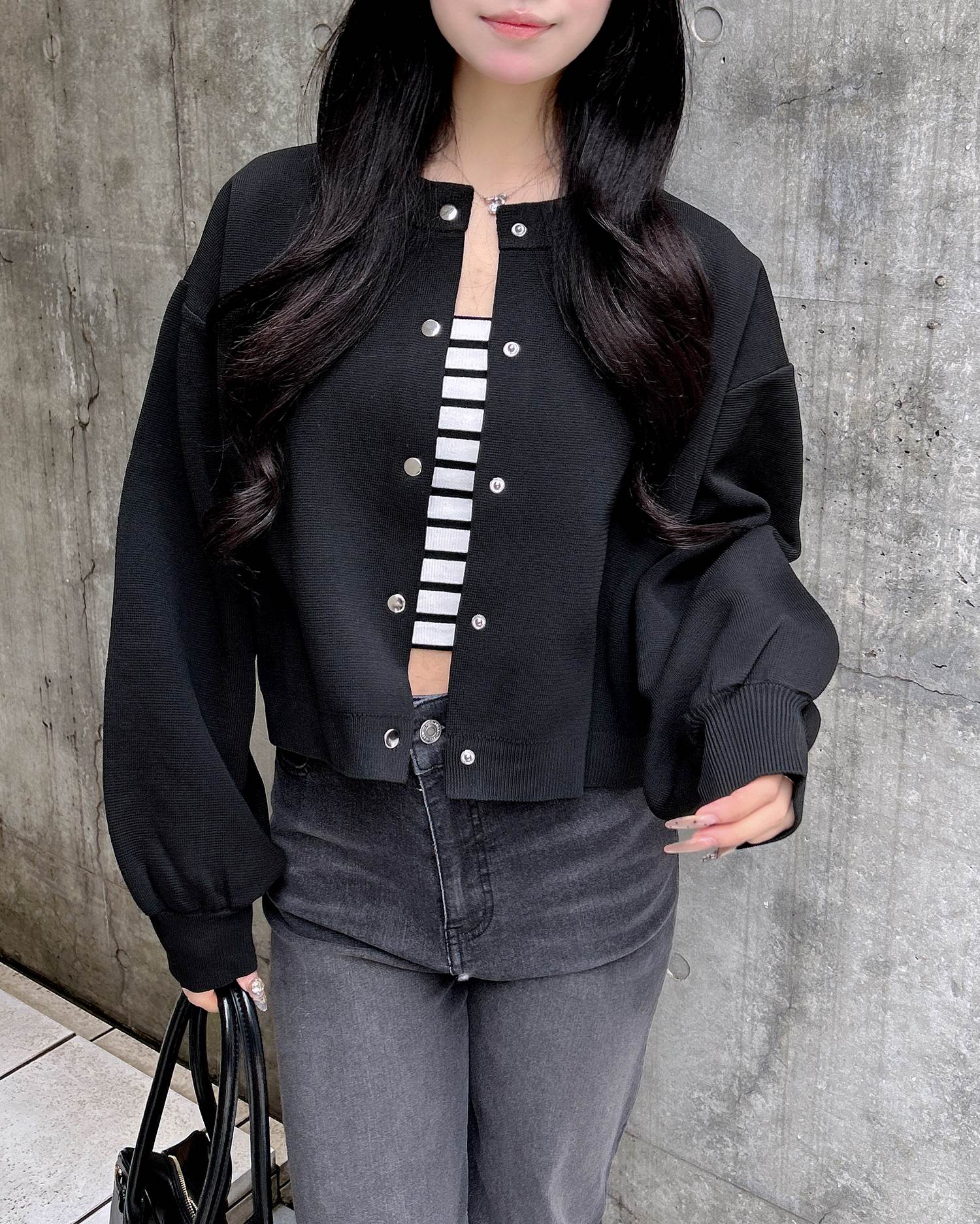 • INGNI(イング) 【12/31までの限定価格】ショート丈スポンディッシュニットカーディガン クロ