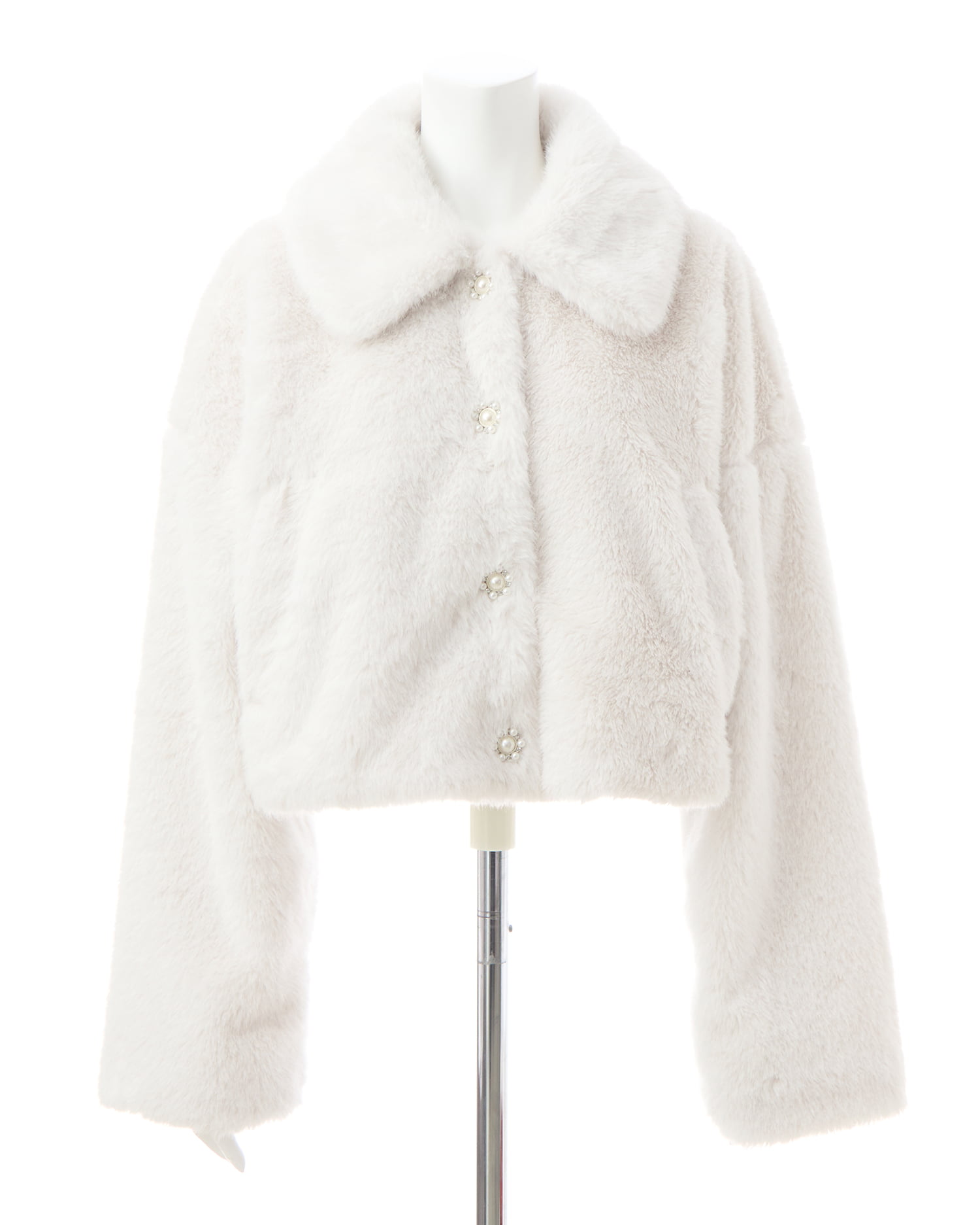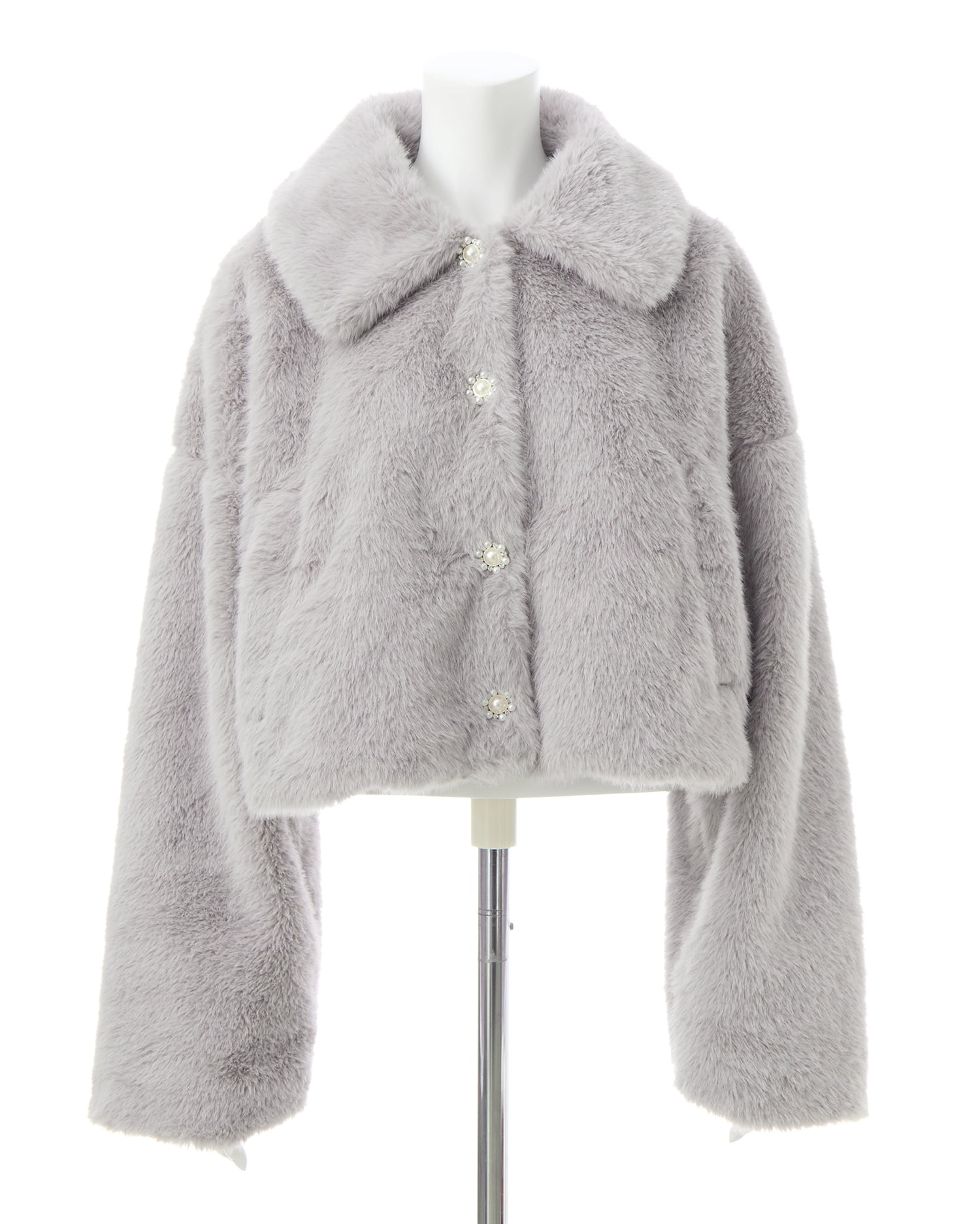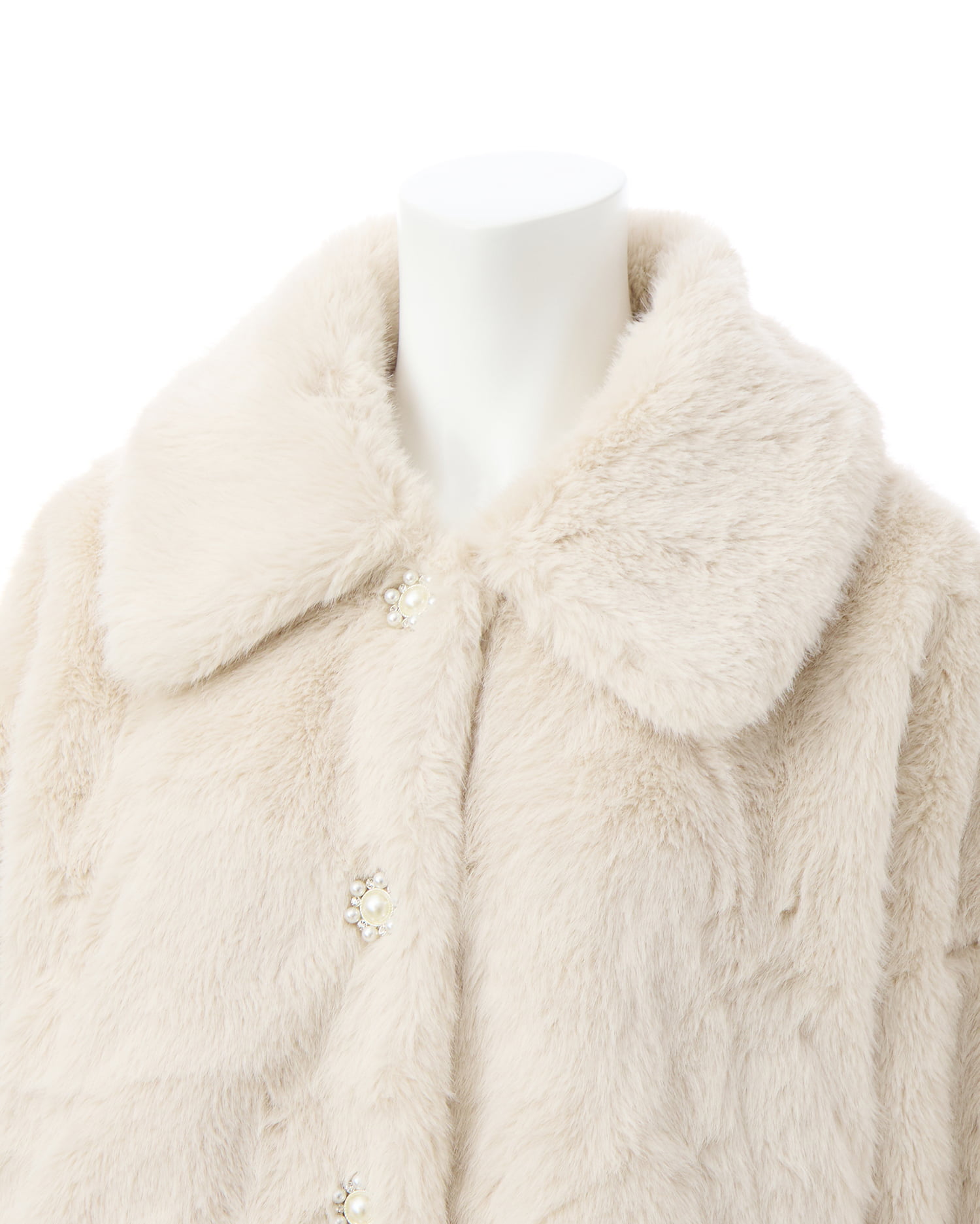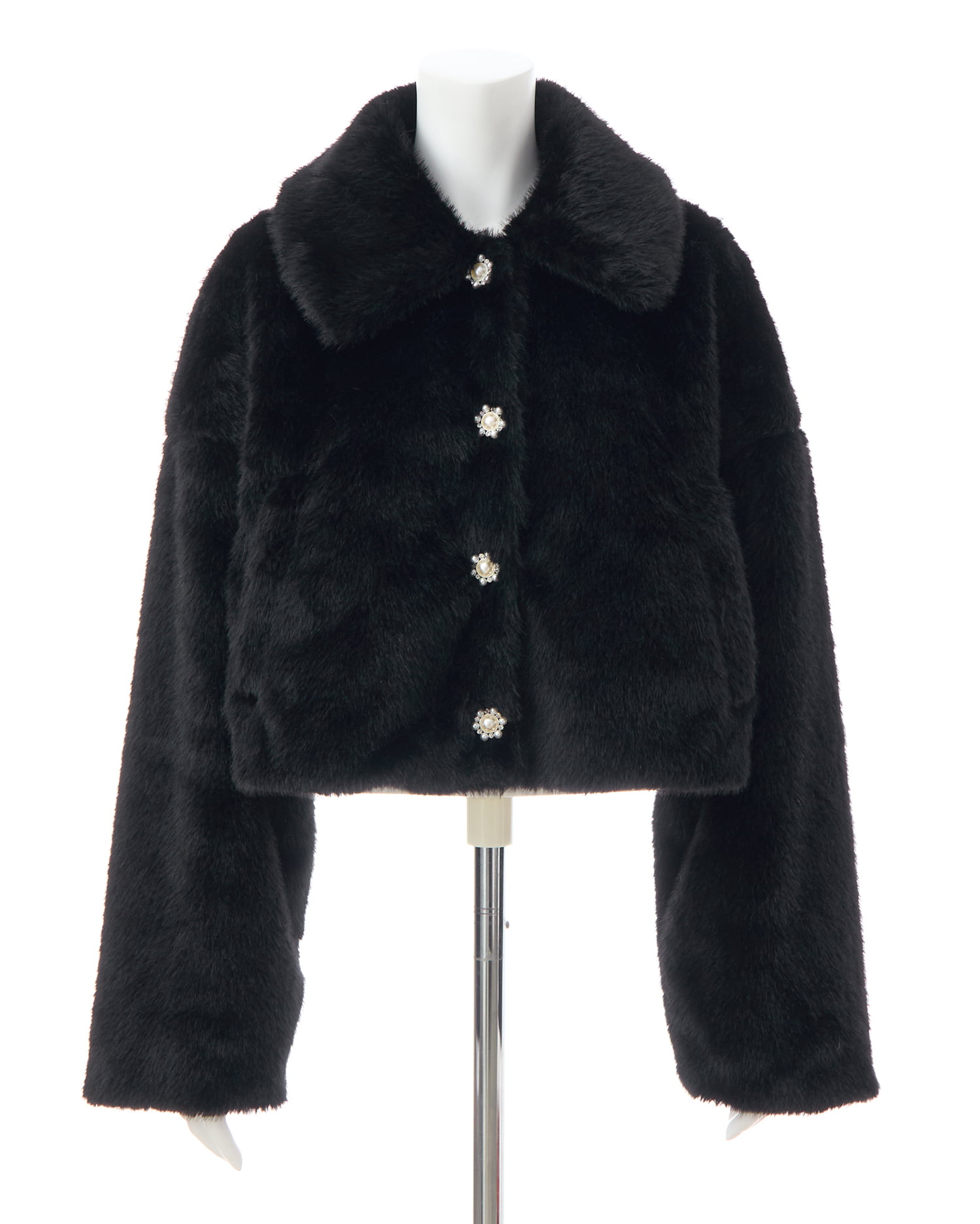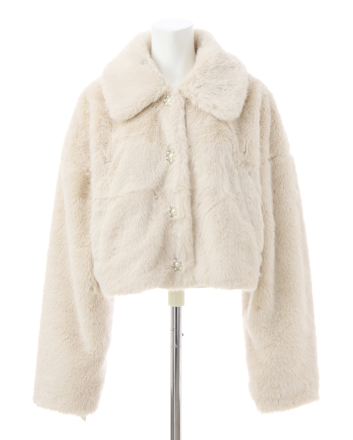 【キラキラビジューボタンで高見え叶うふわふわエコファージャケット】