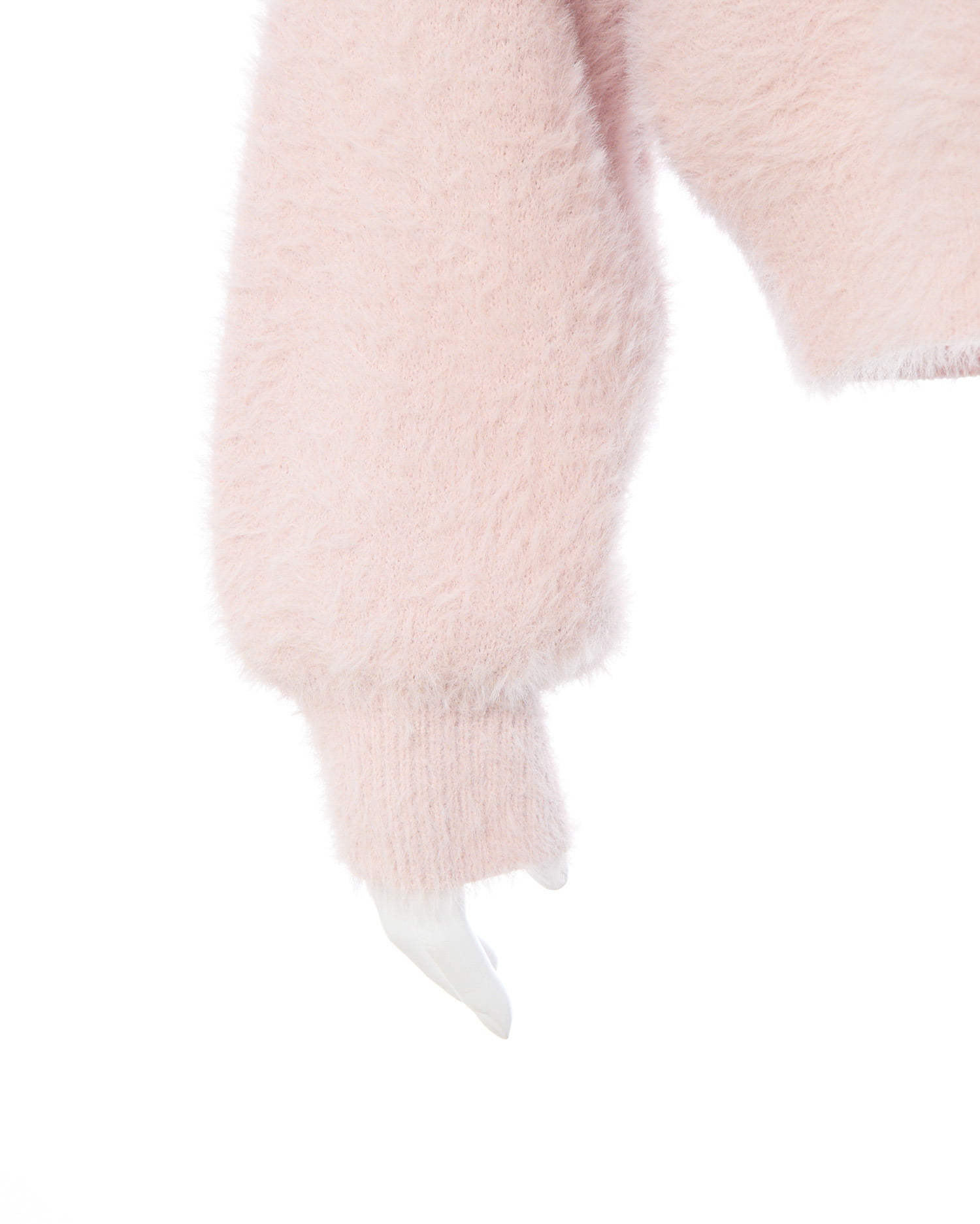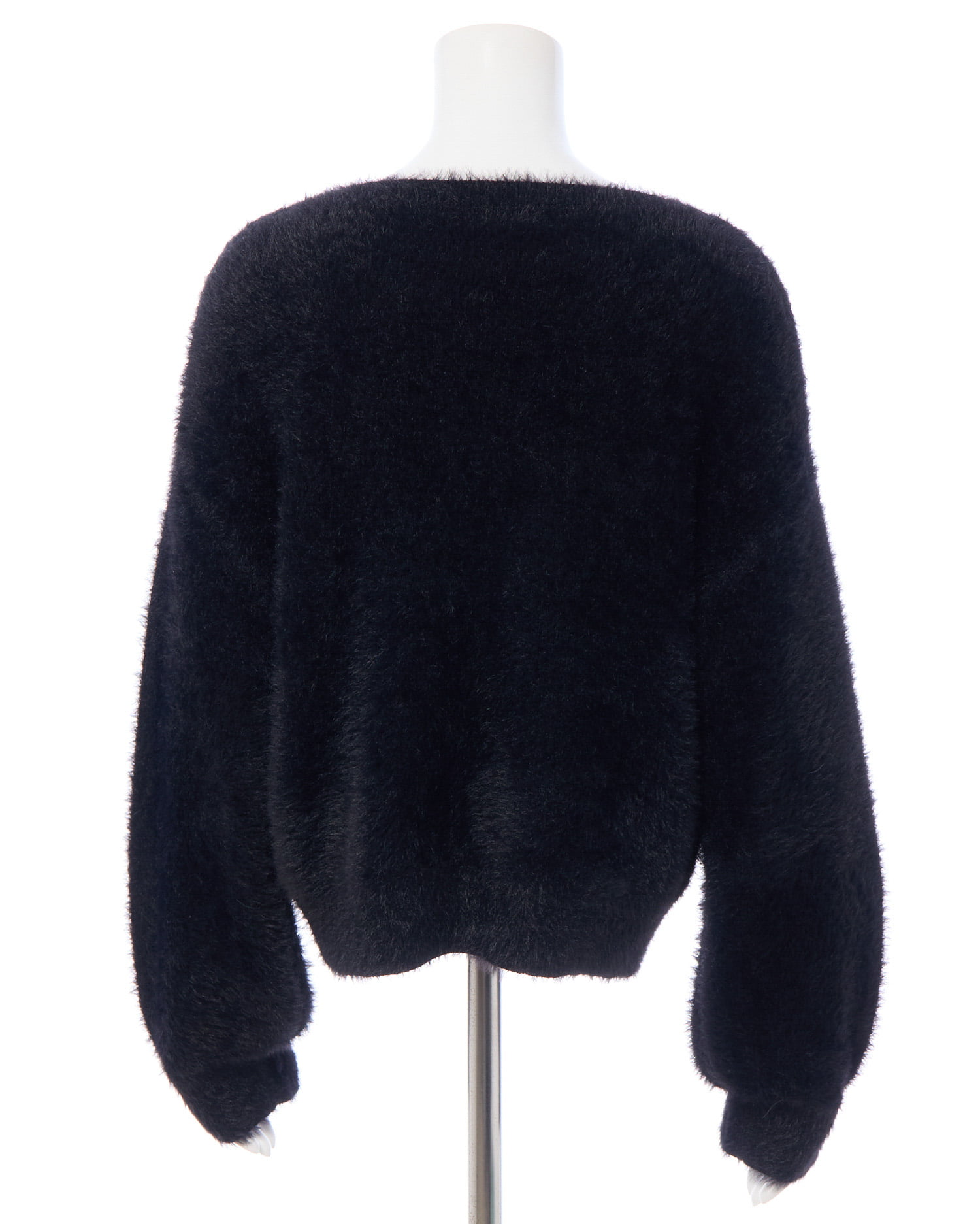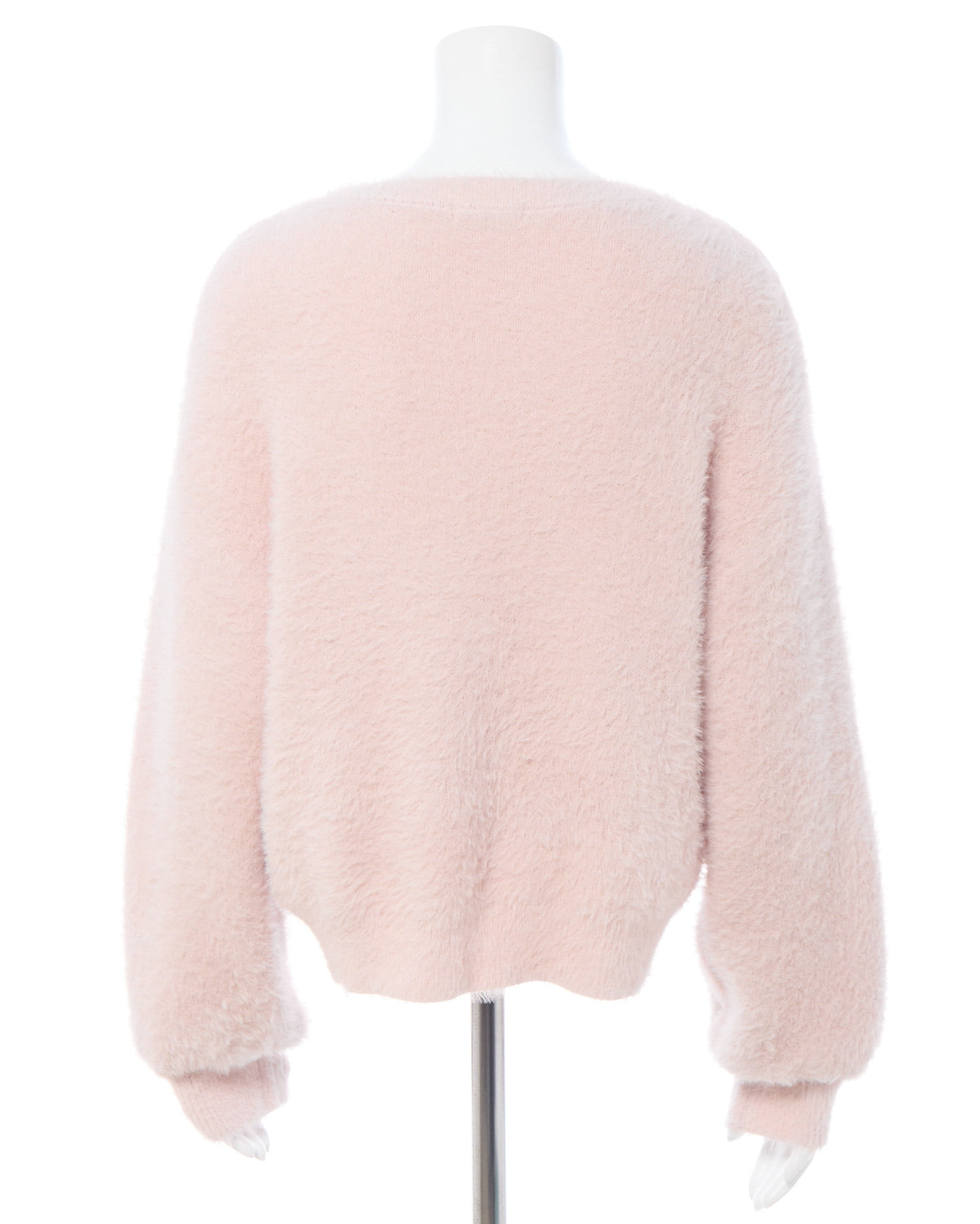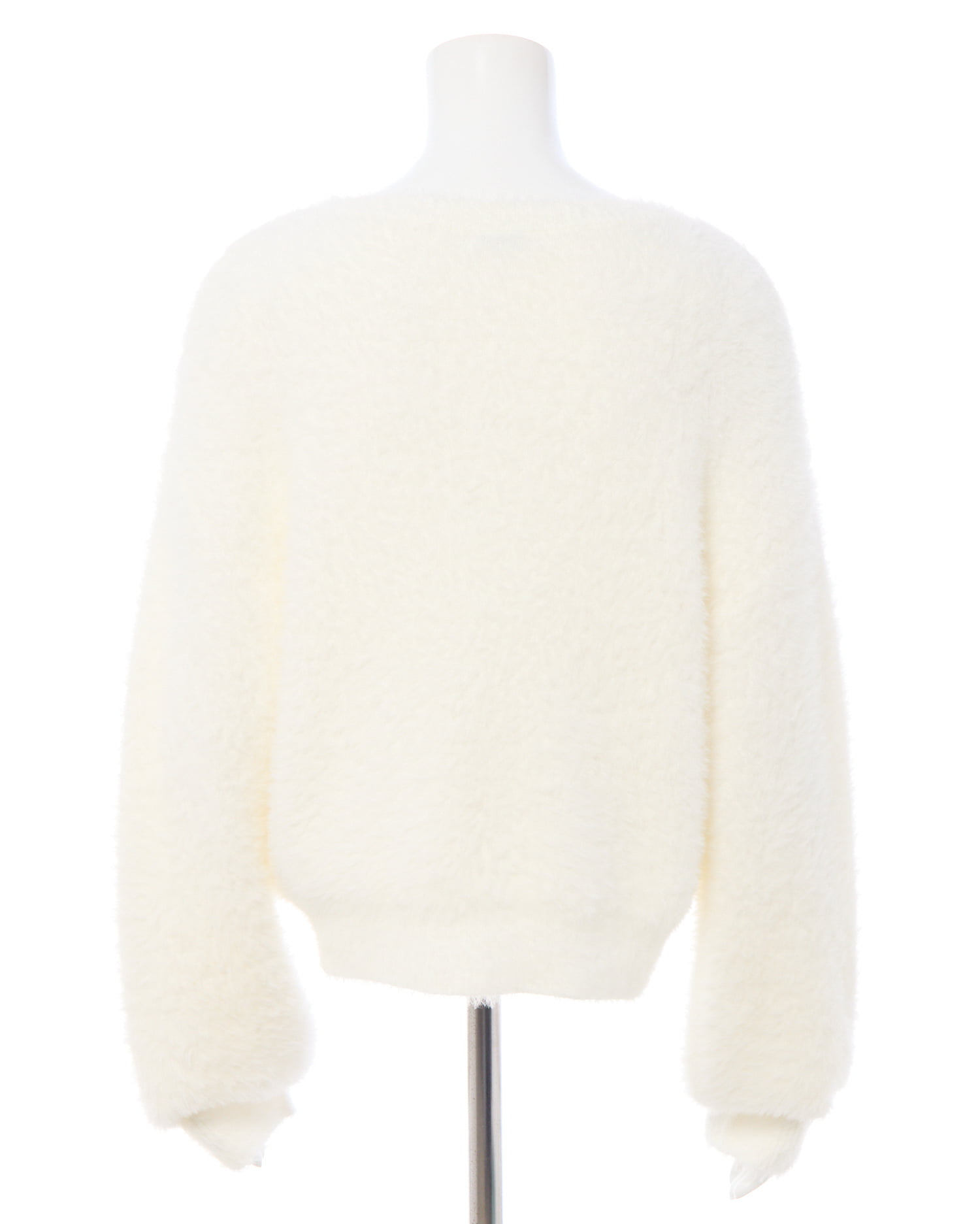 冬の定番フェザーニットにパールビジューロゴで華やかさをプラス。