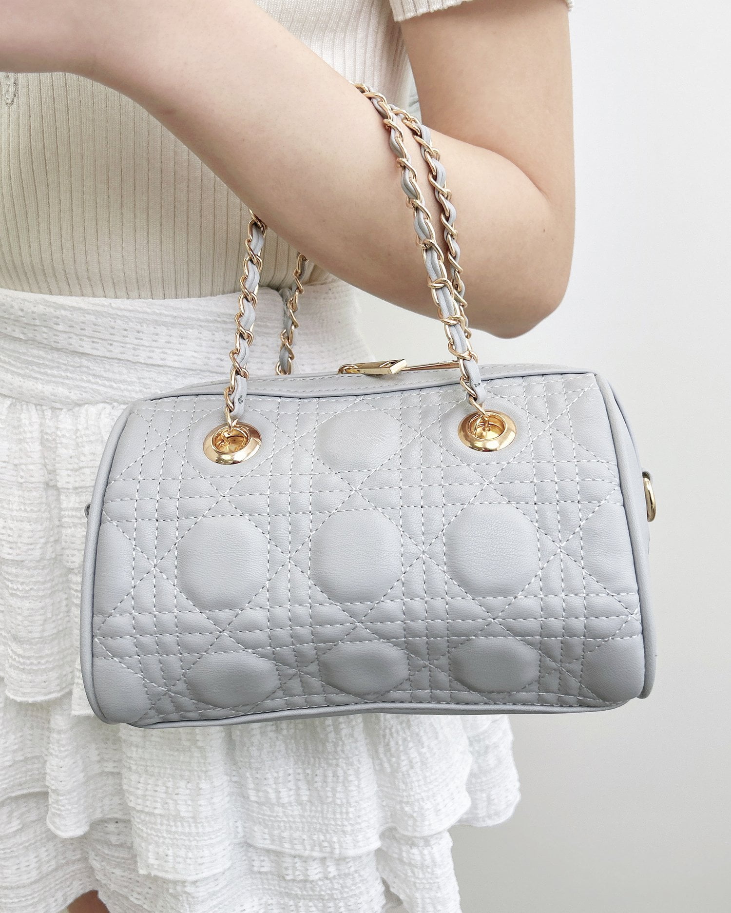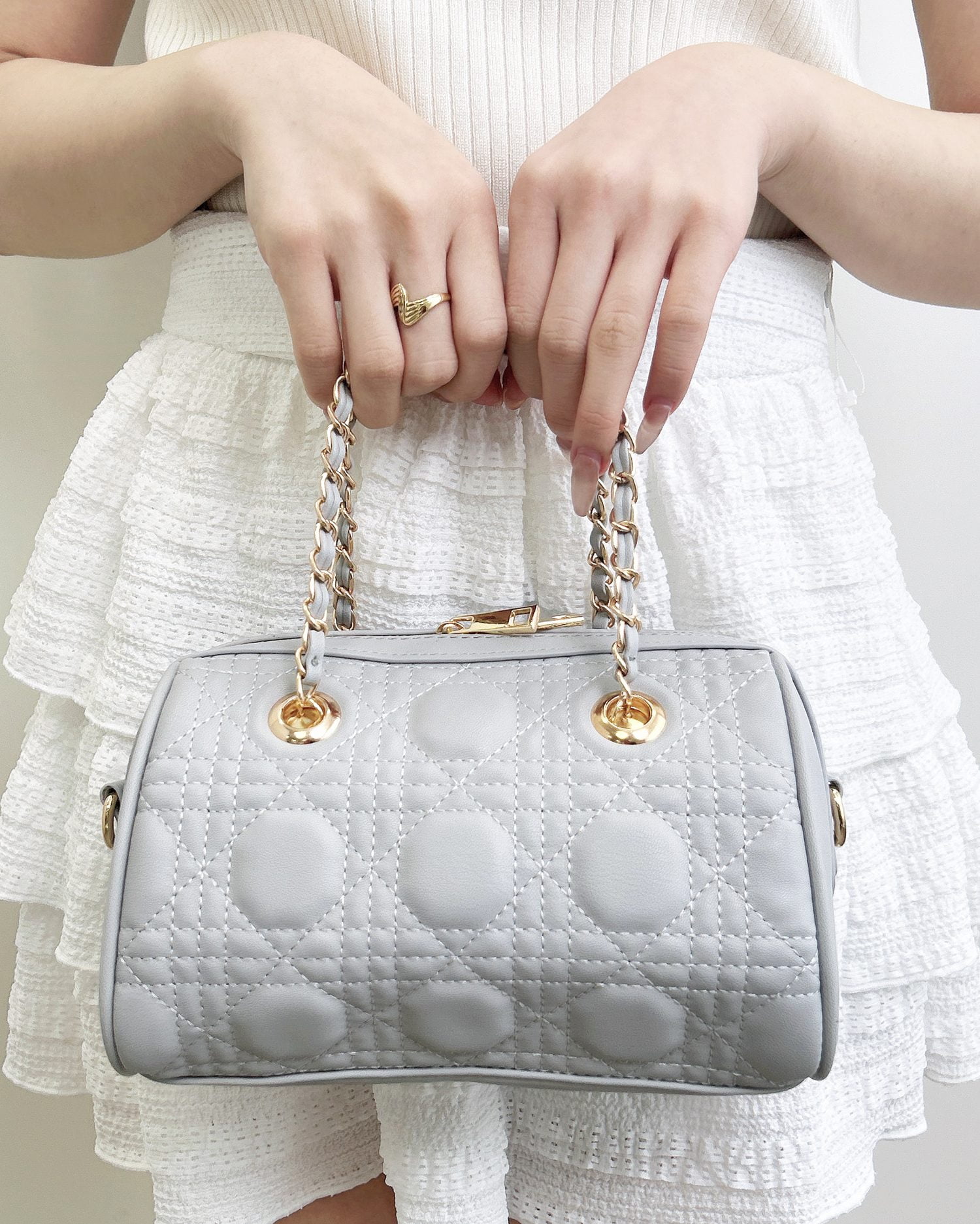 キルティングチェーンボストンバッグ