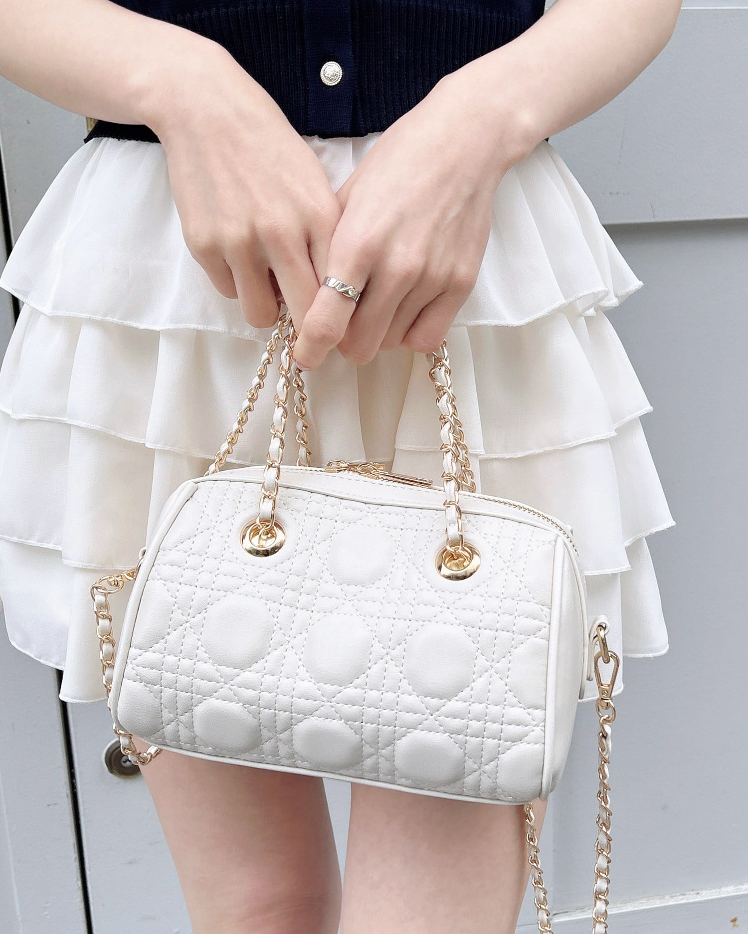 • INGNI(イング) キルティングチェーンボストンバッグ アイボリー