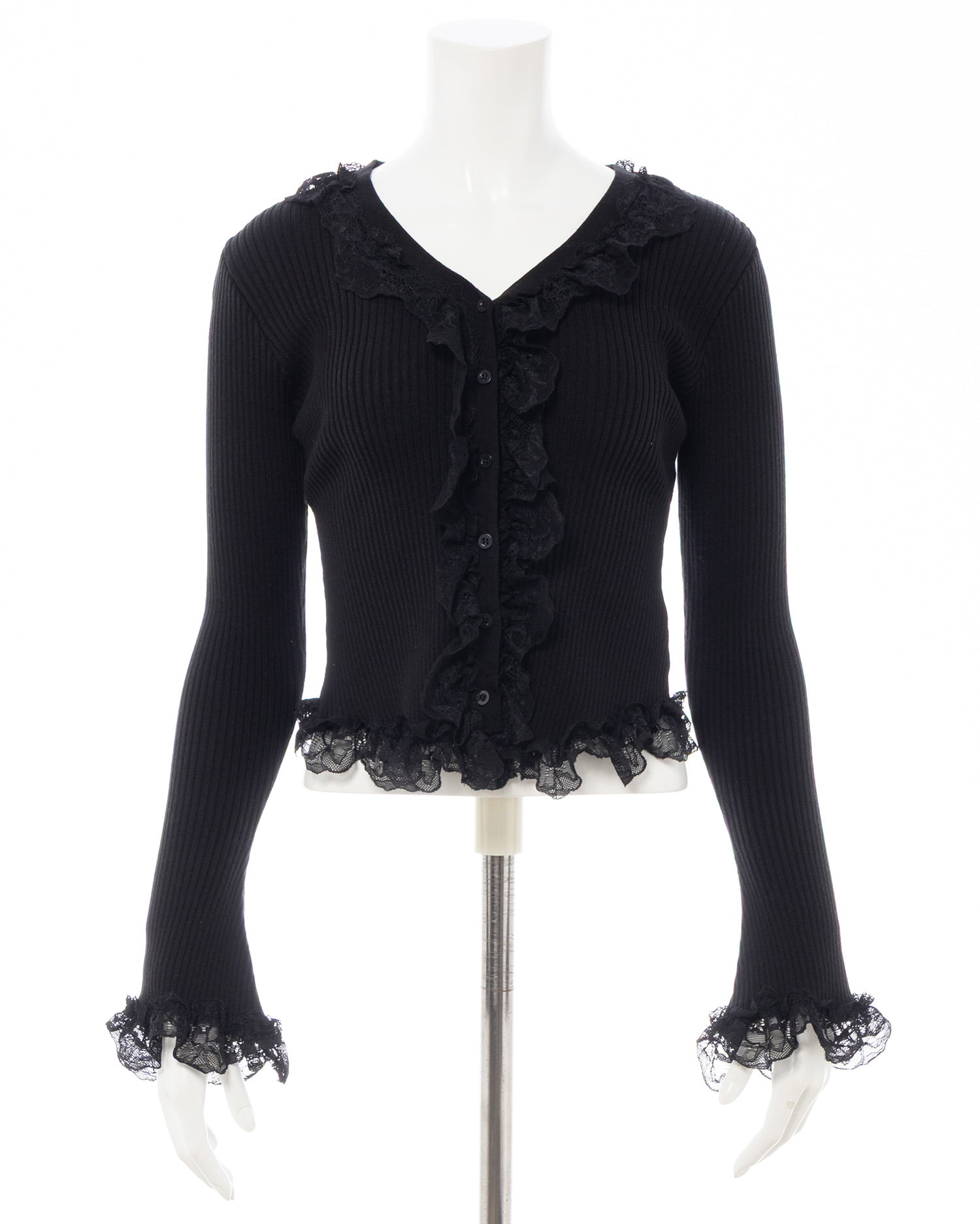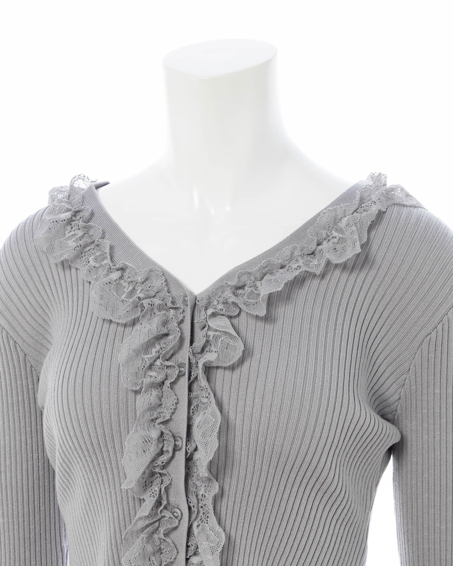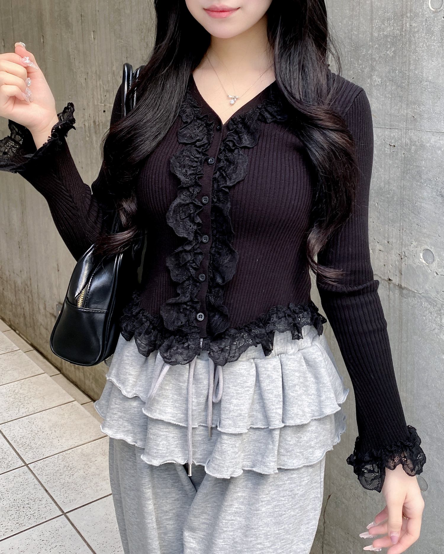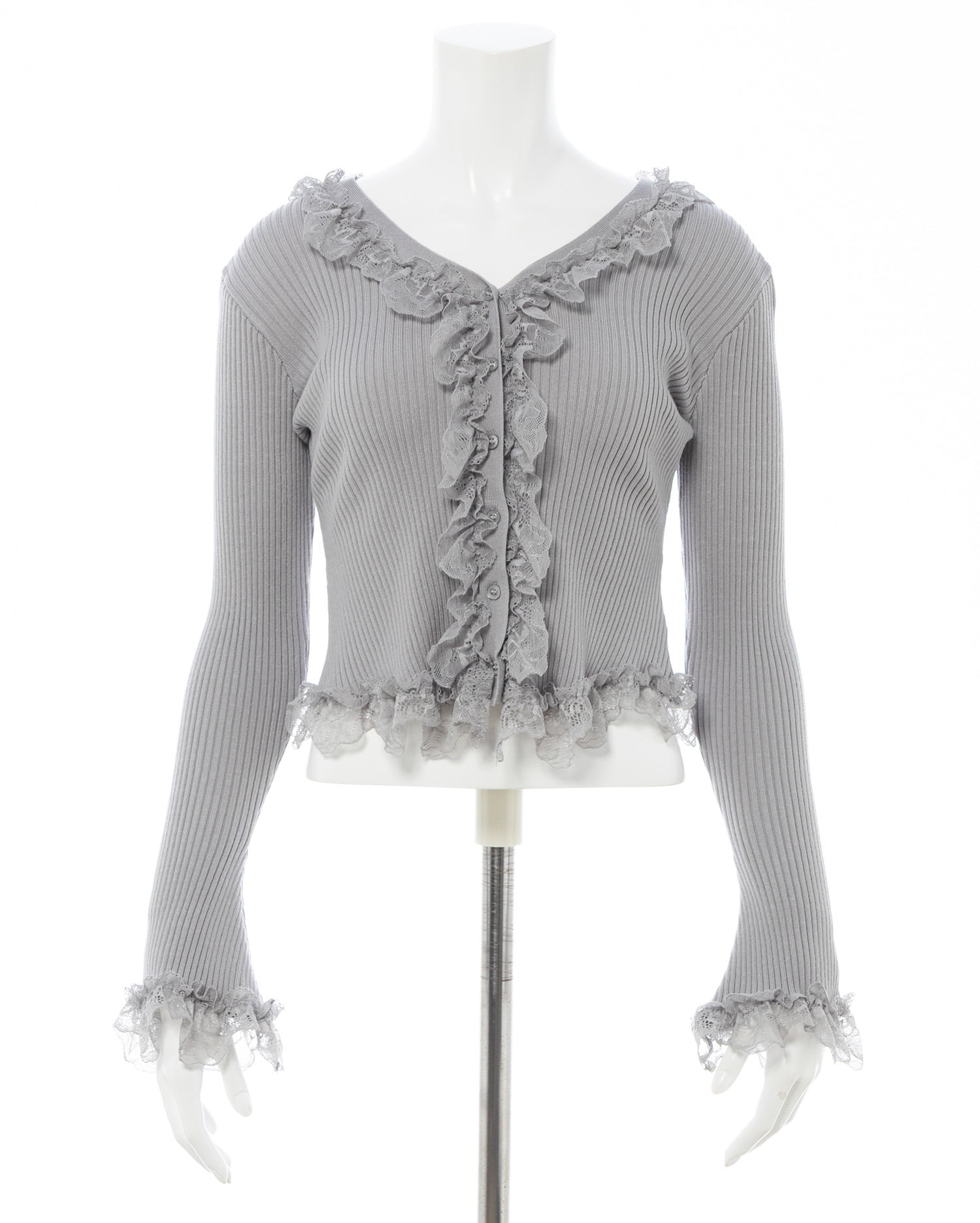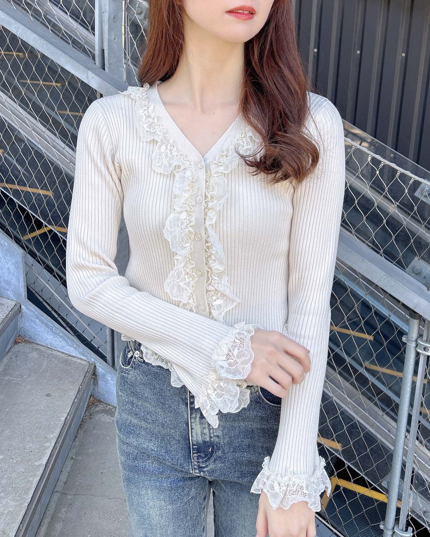 【フリルレースがかわいすぎる♡リブニットカーディガン】