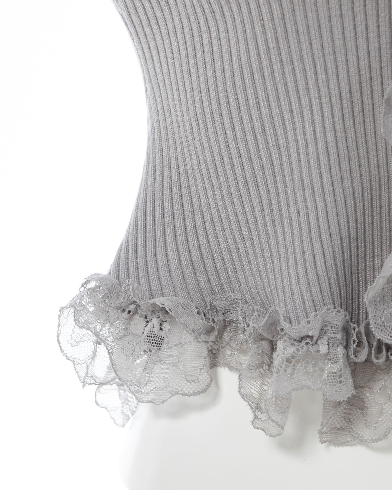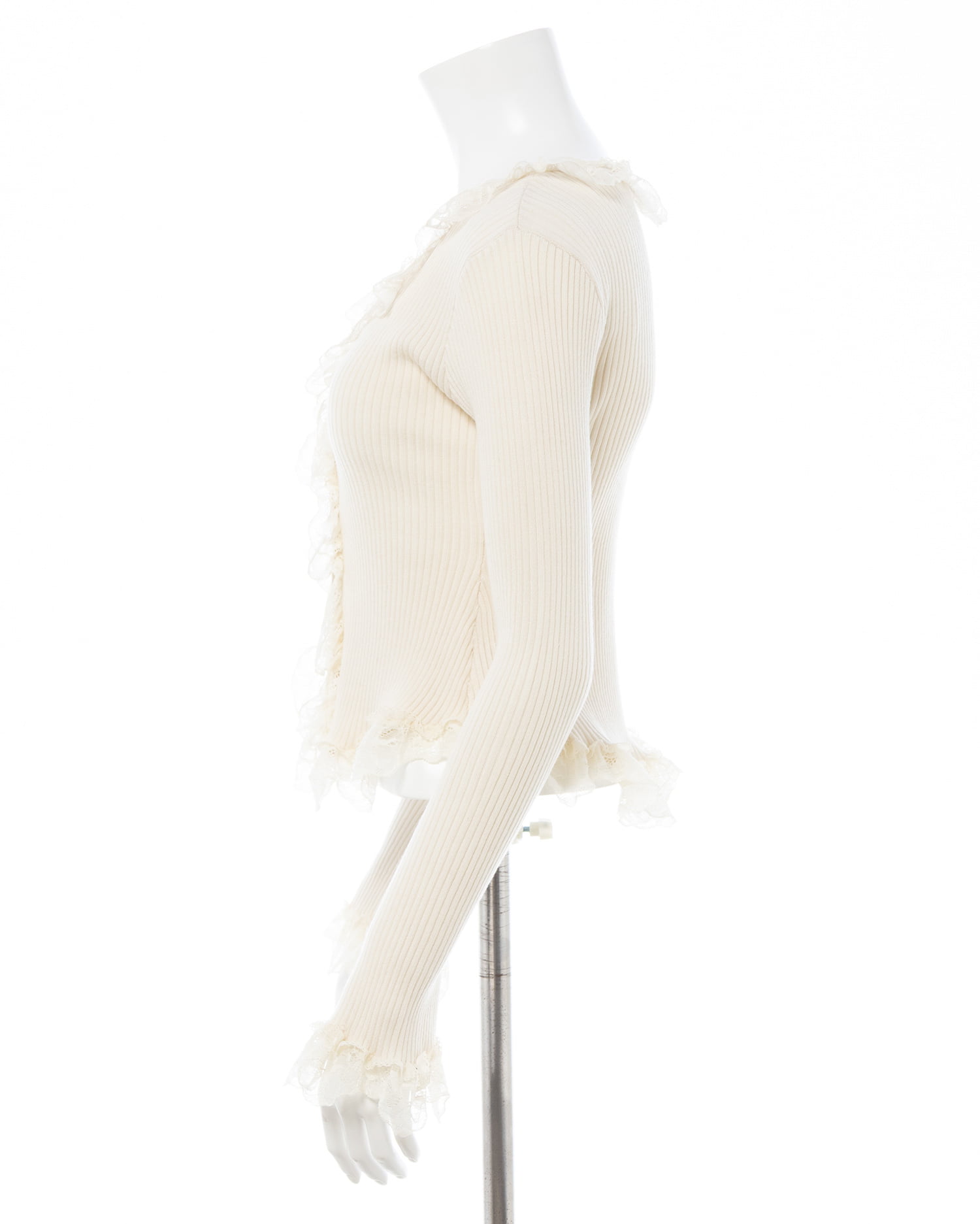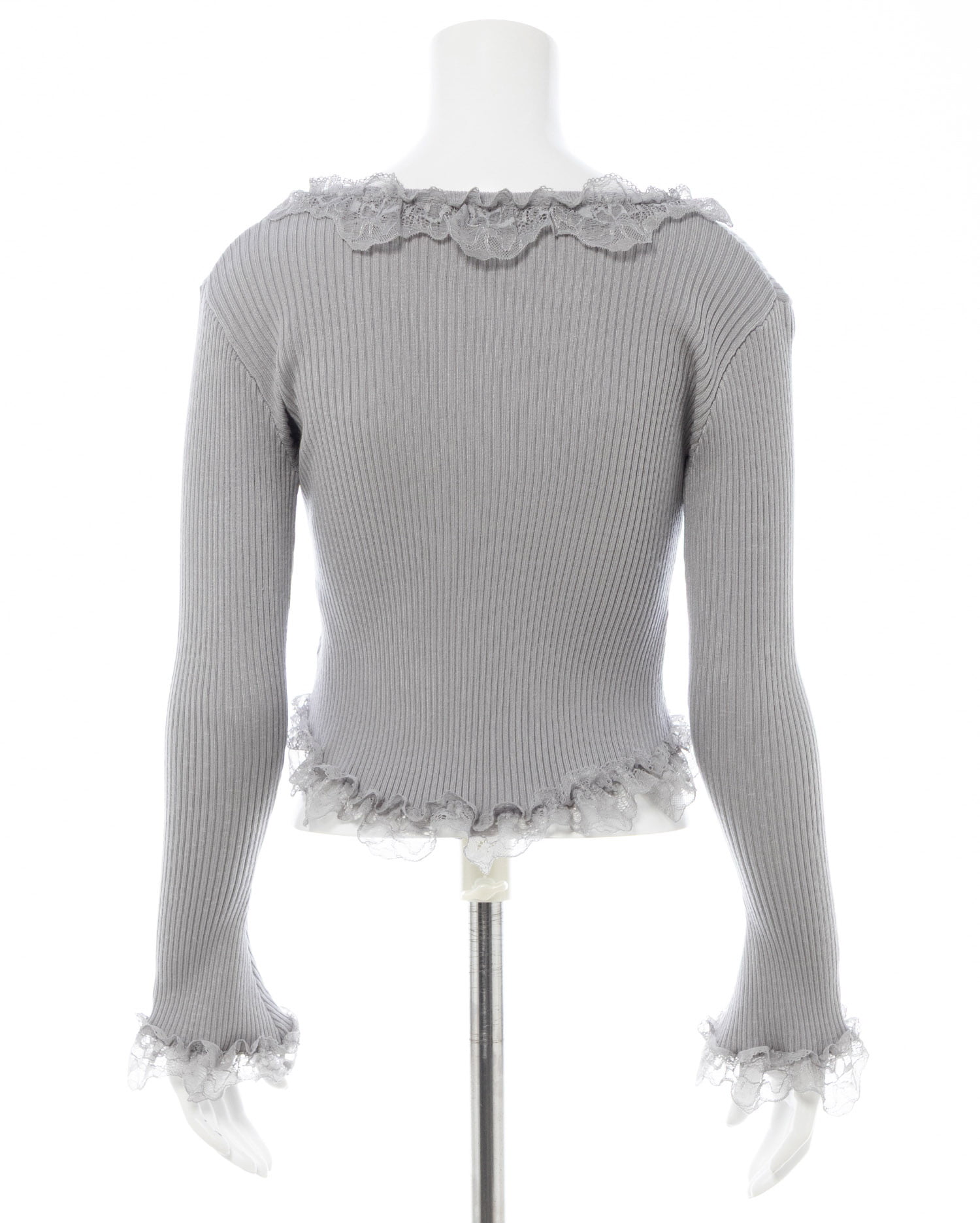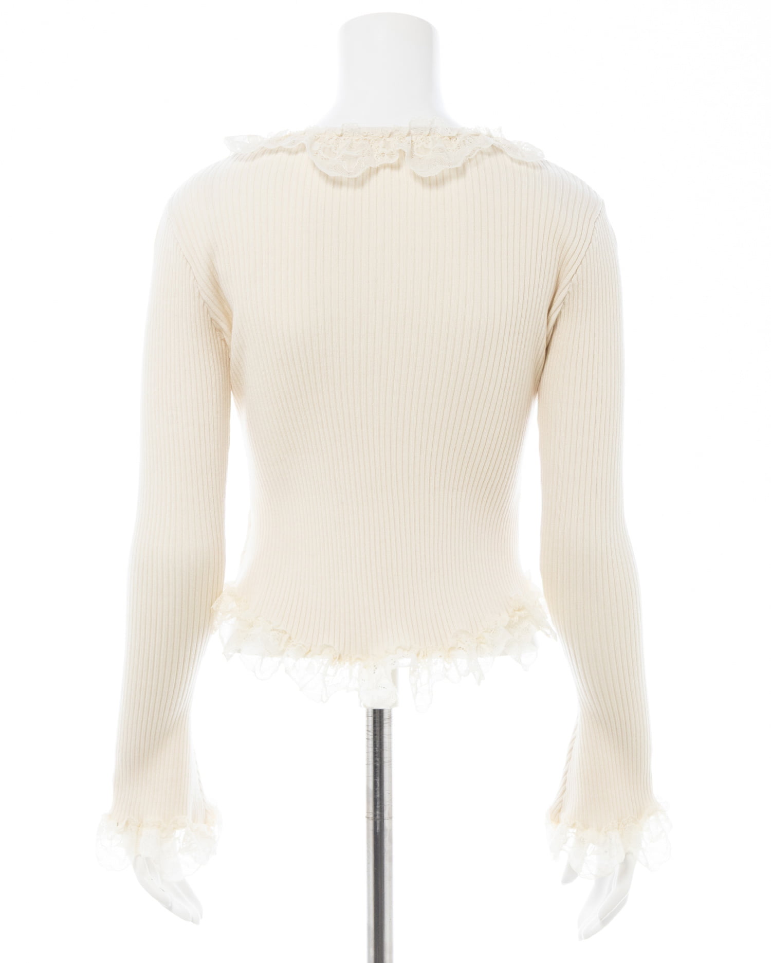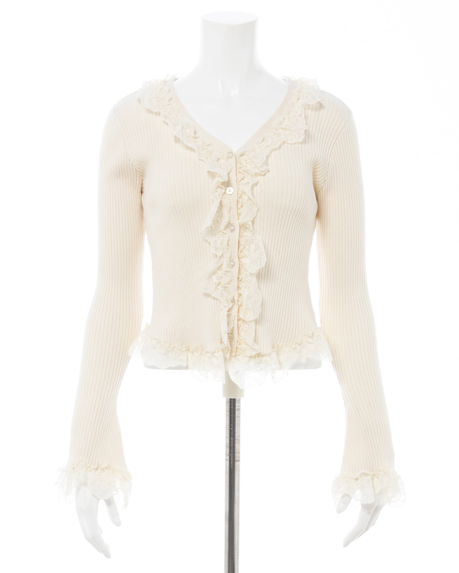 【フリルレースがかわいすぎる♡リブニットカーディガン】
