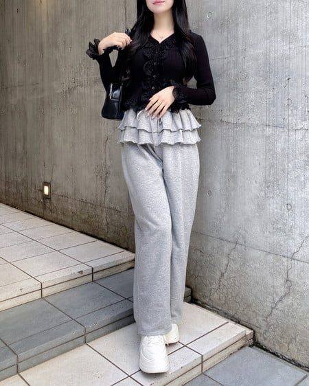 フリルレースがドッキングされたフェミニンなアイテムです。