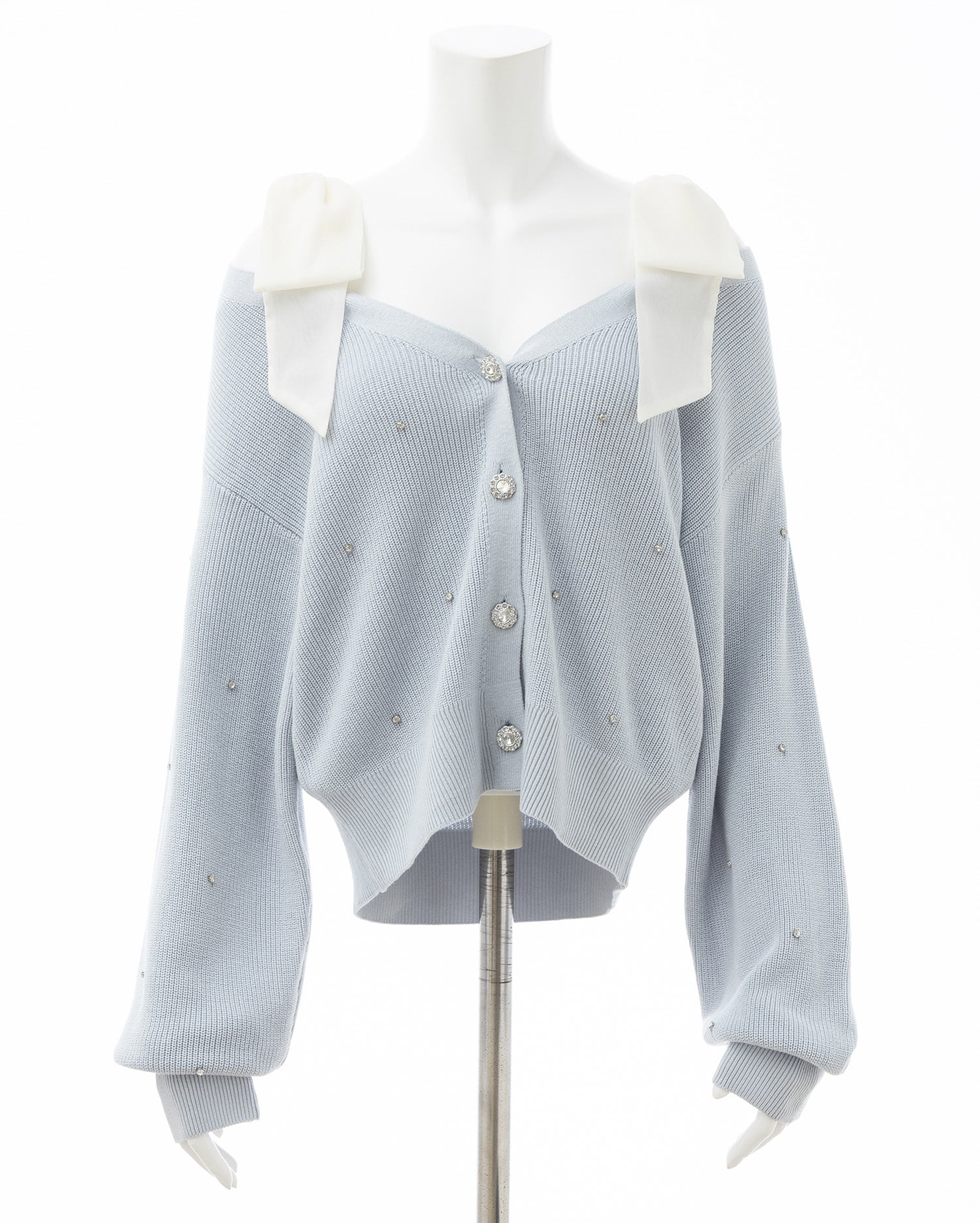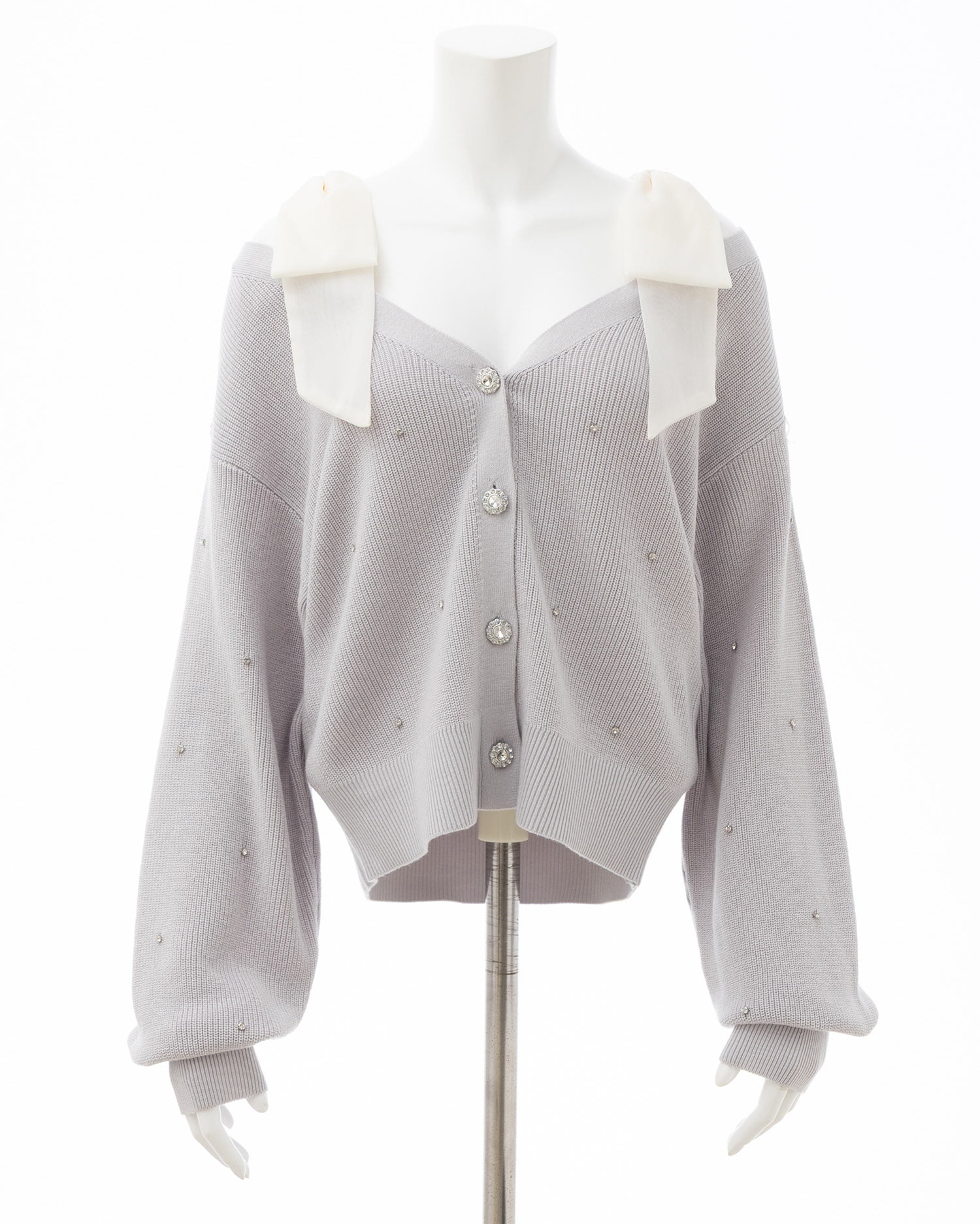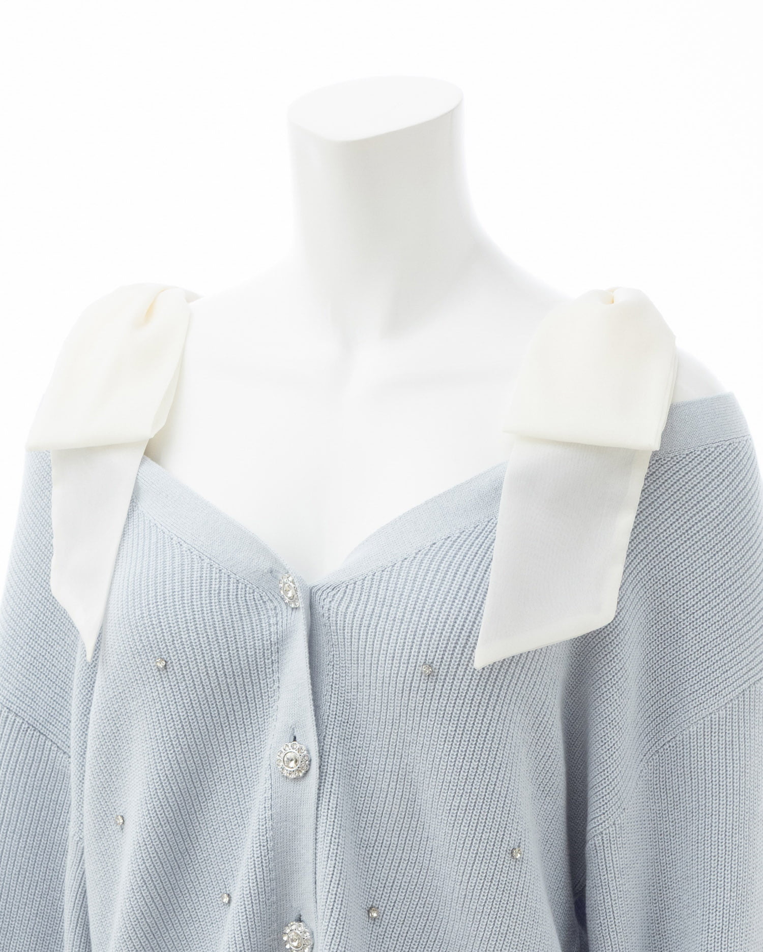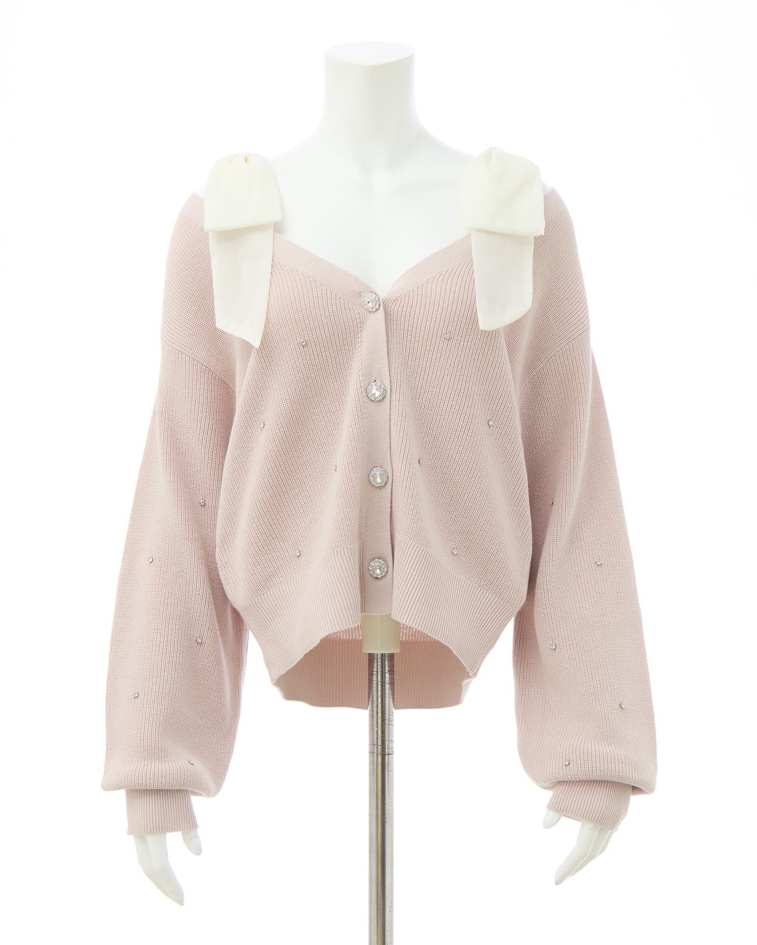 肩紐部分がリボンになっている可愛らしい印象のカーディガンです。