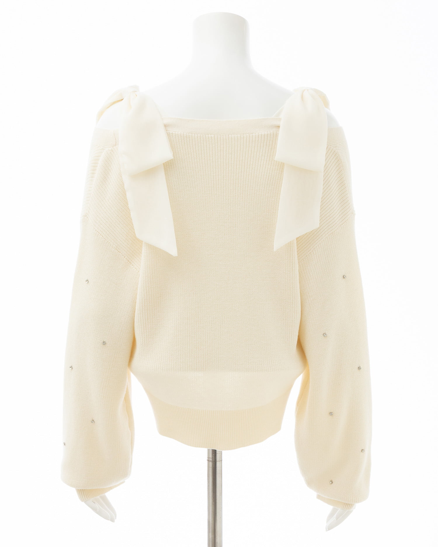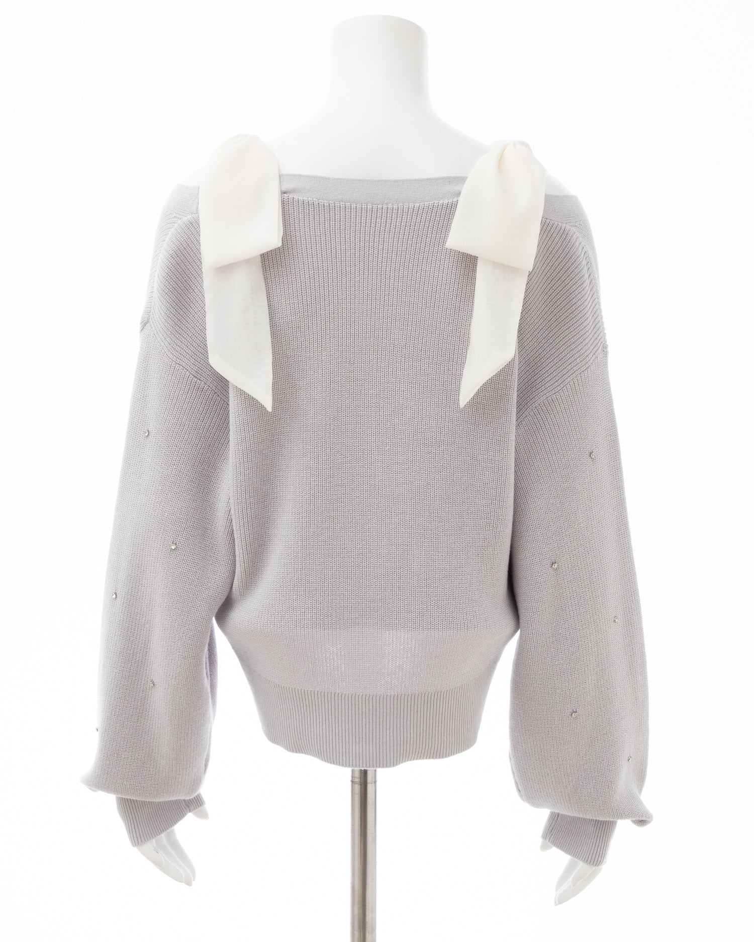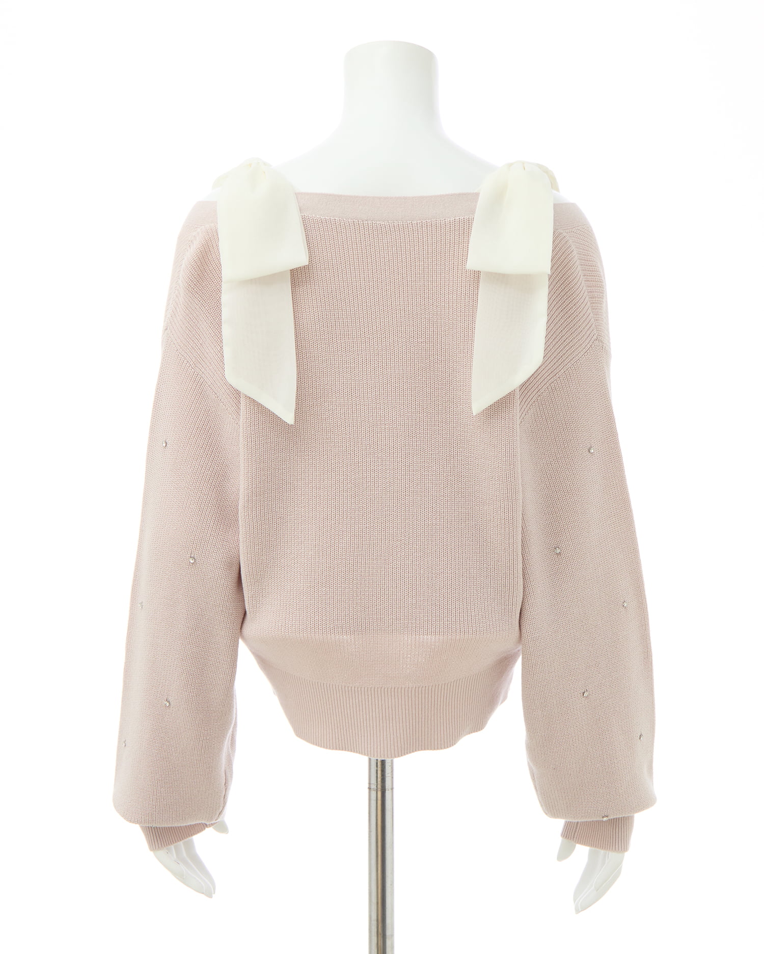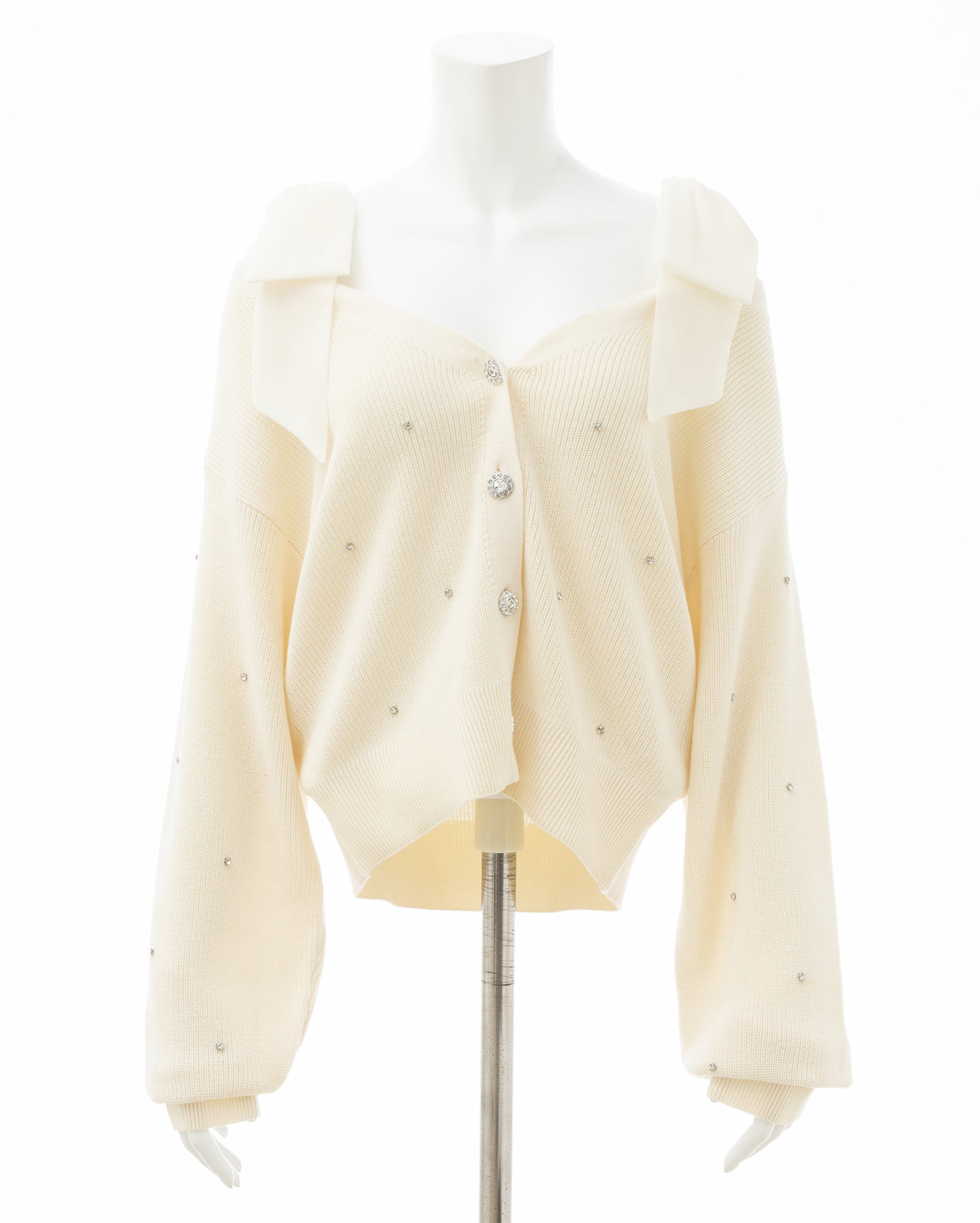 肩紐部分がリボンになっている可愛らしい印象のカーディガンです。