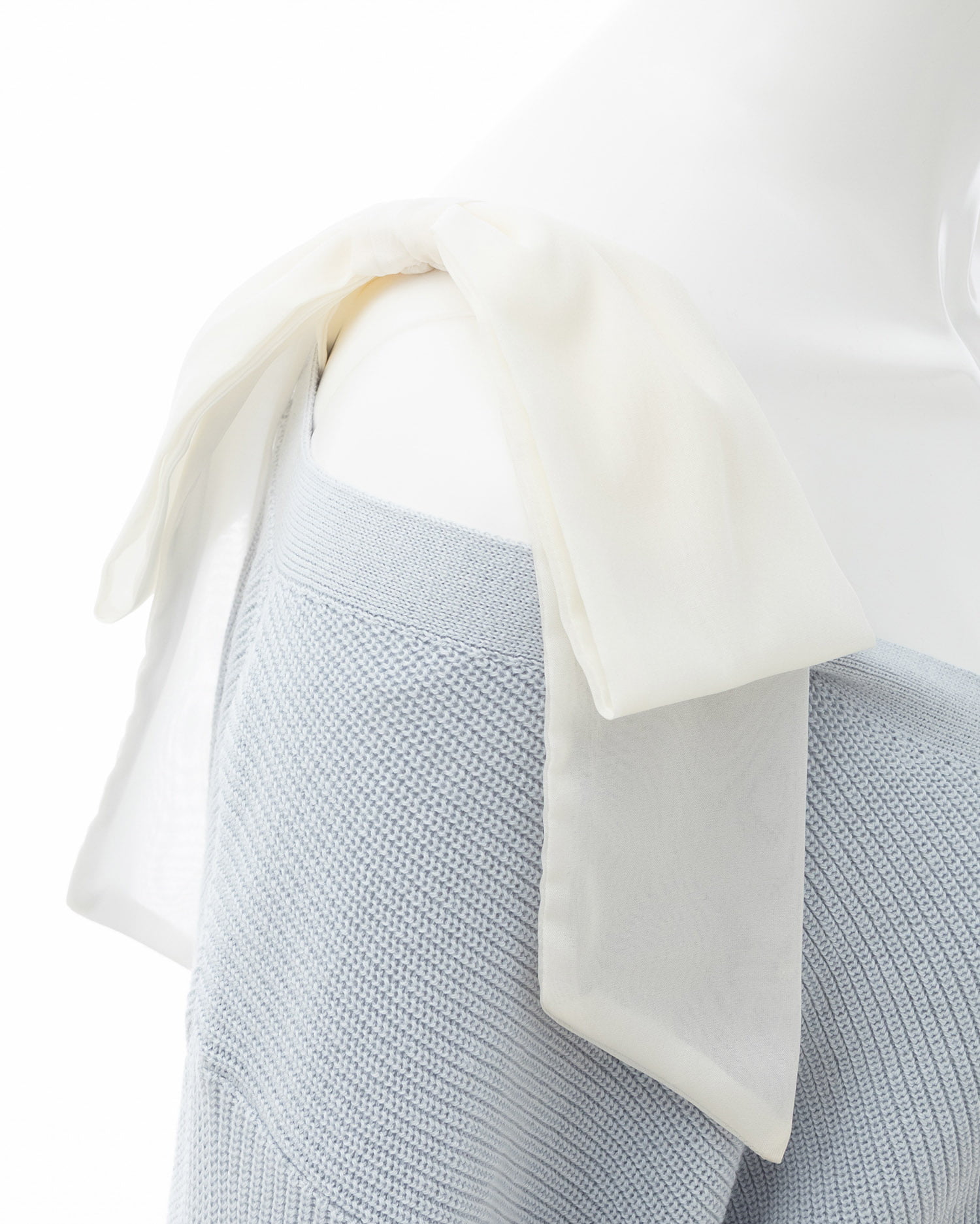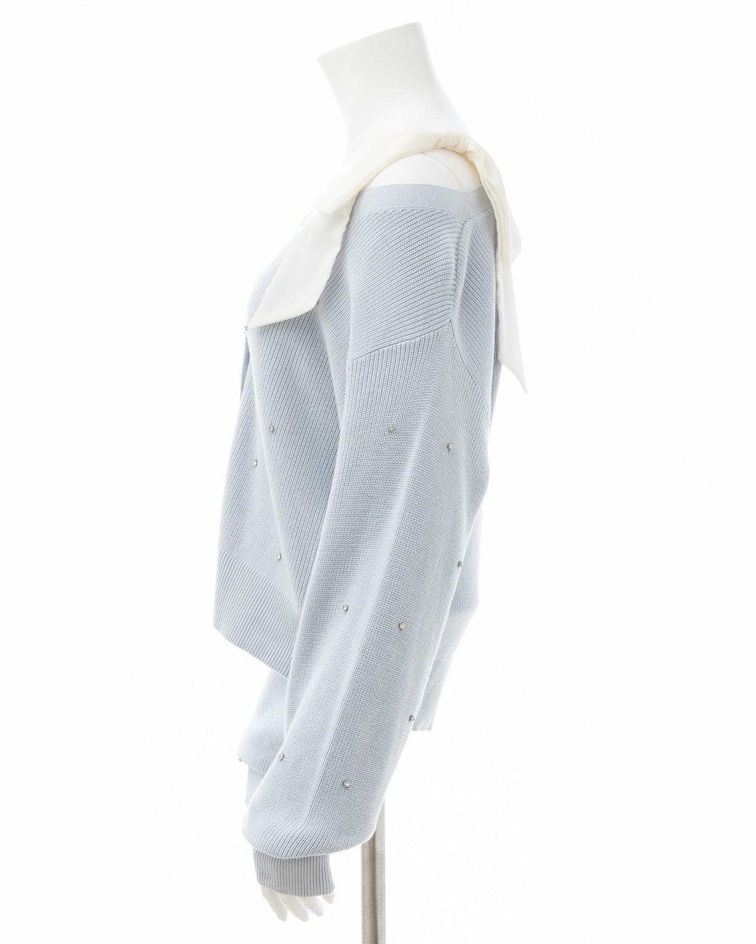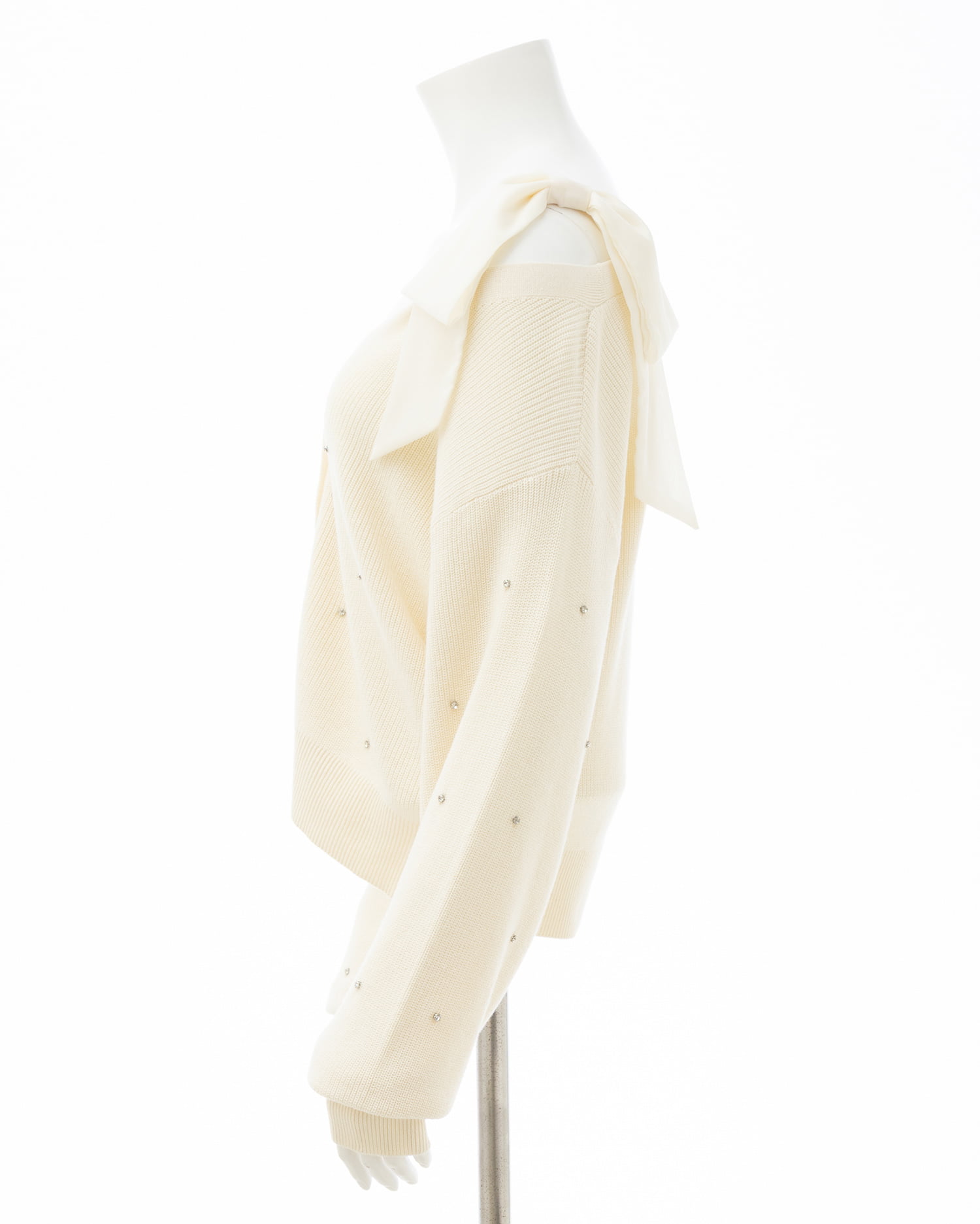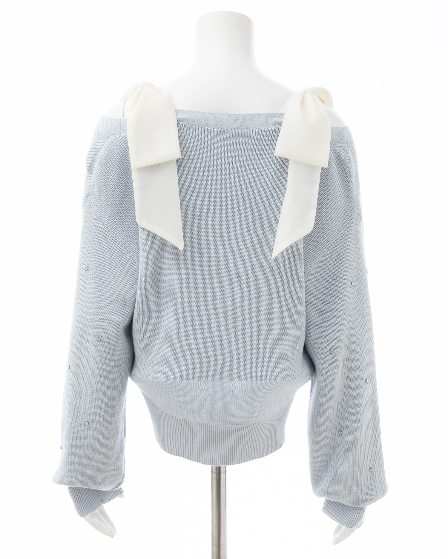 肩紐部分がリボンになっている可愛らしい印象のカーディガンです。