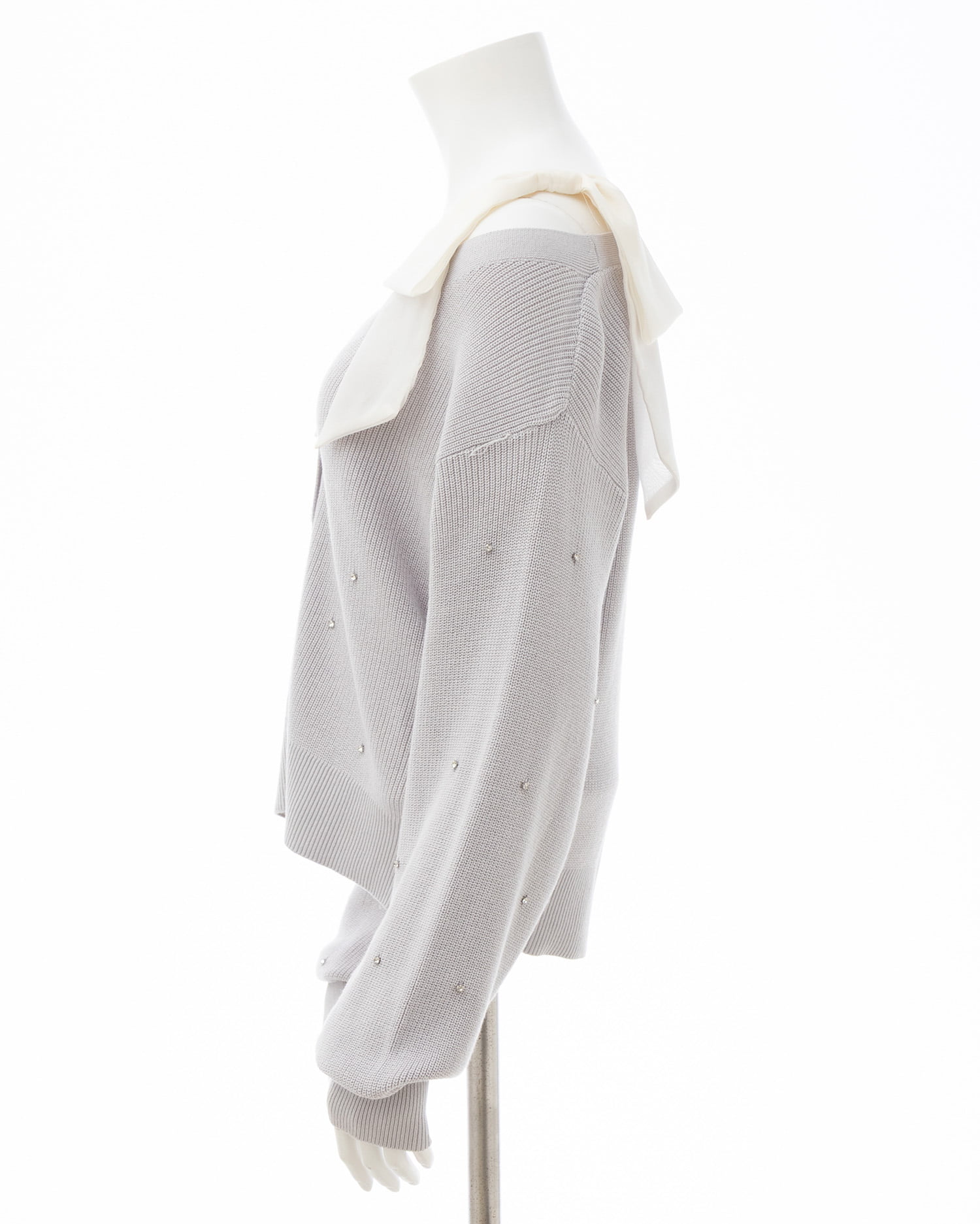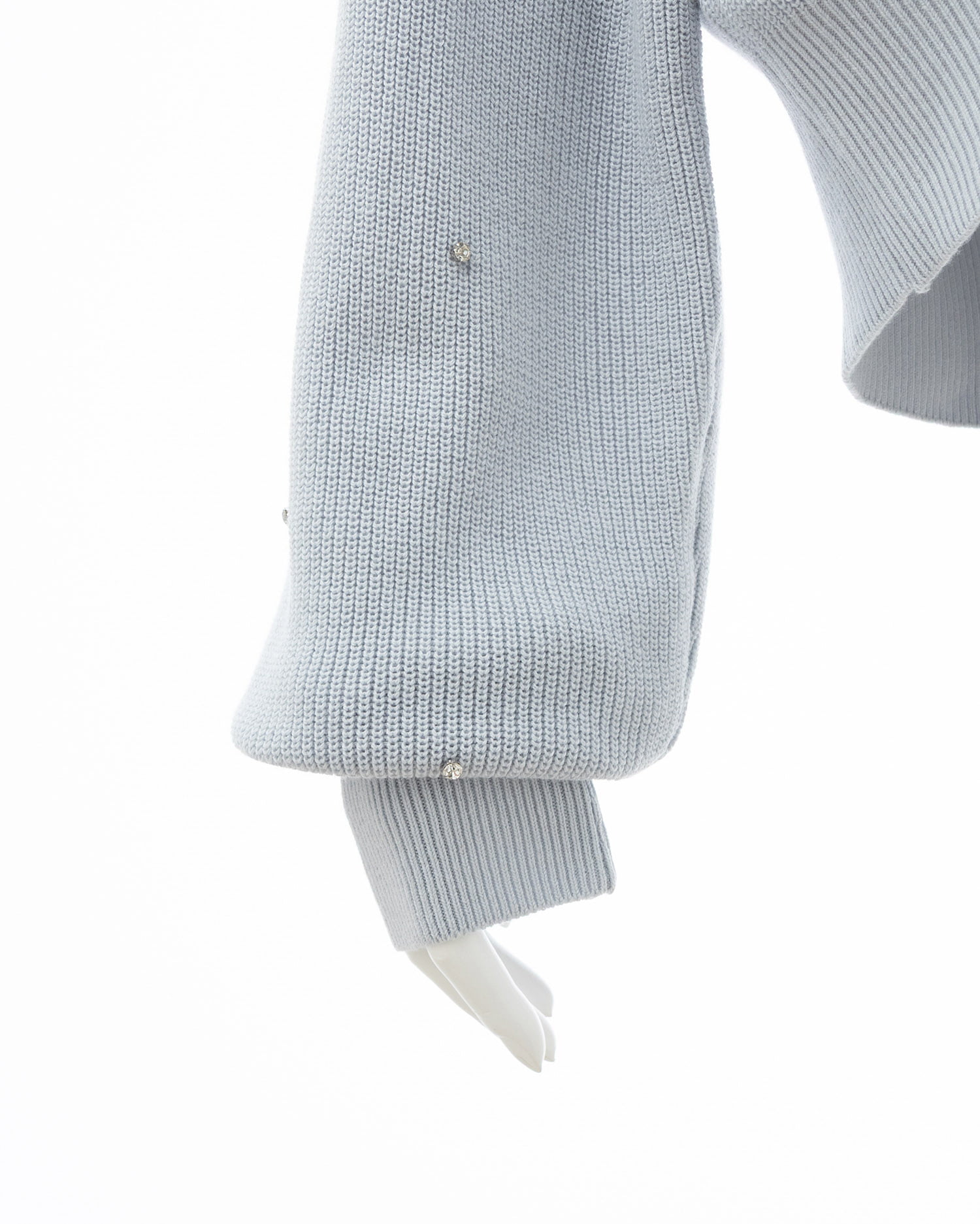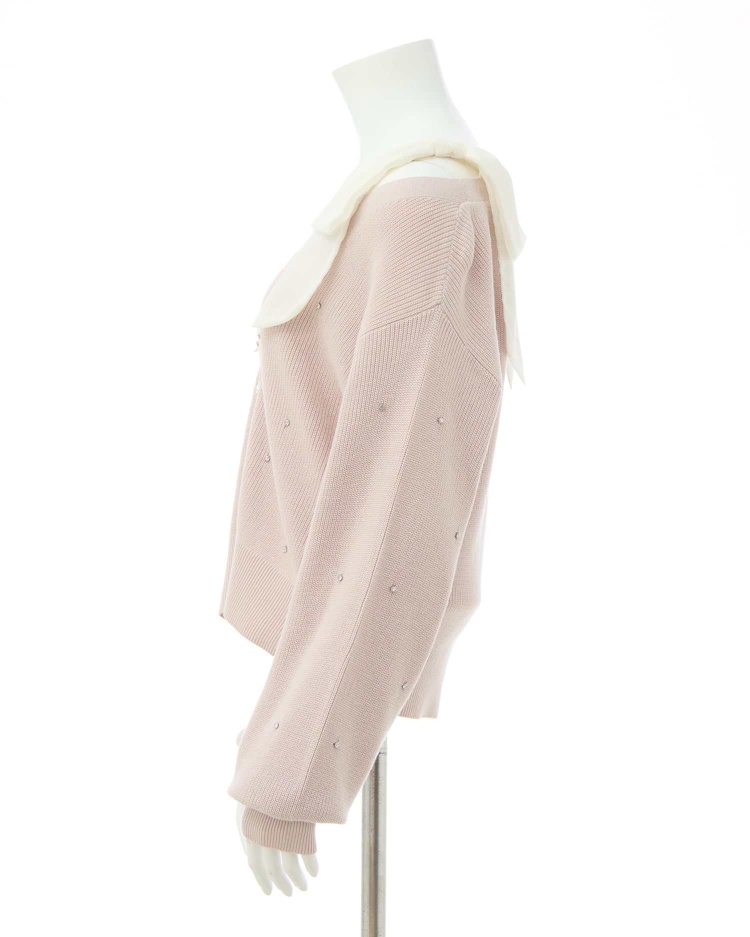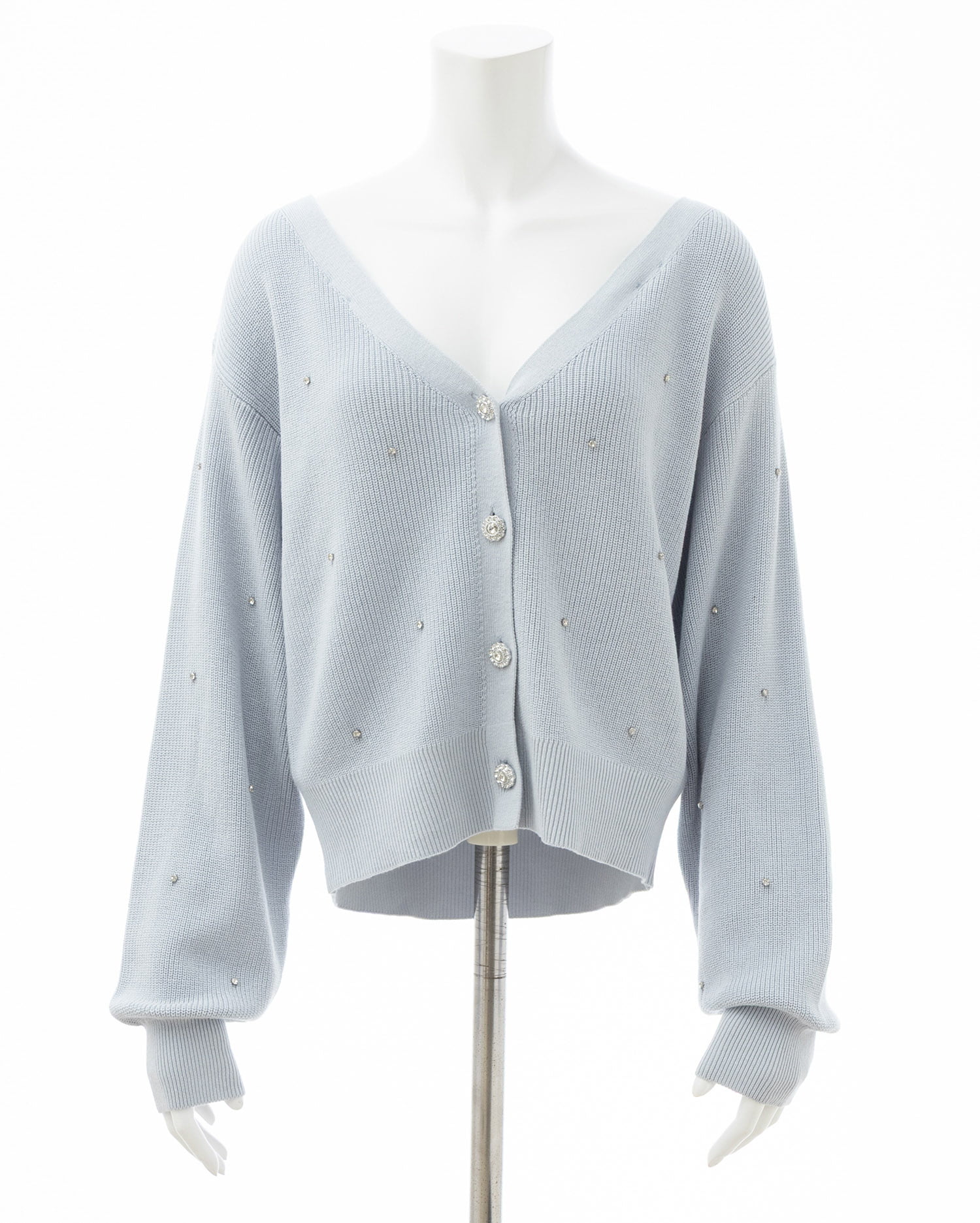 フロントと袖部分にほどこされたキラキラのラインストーンが