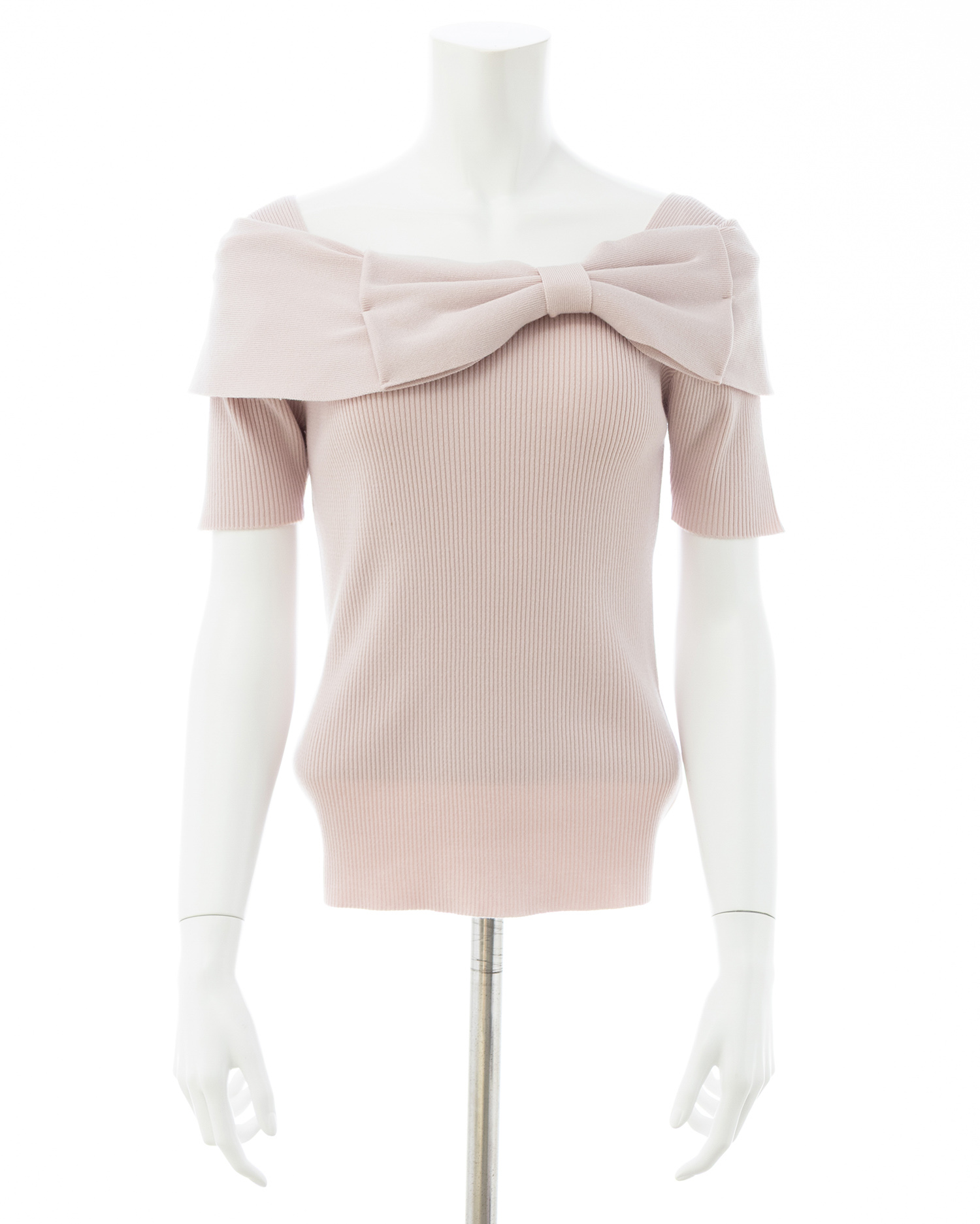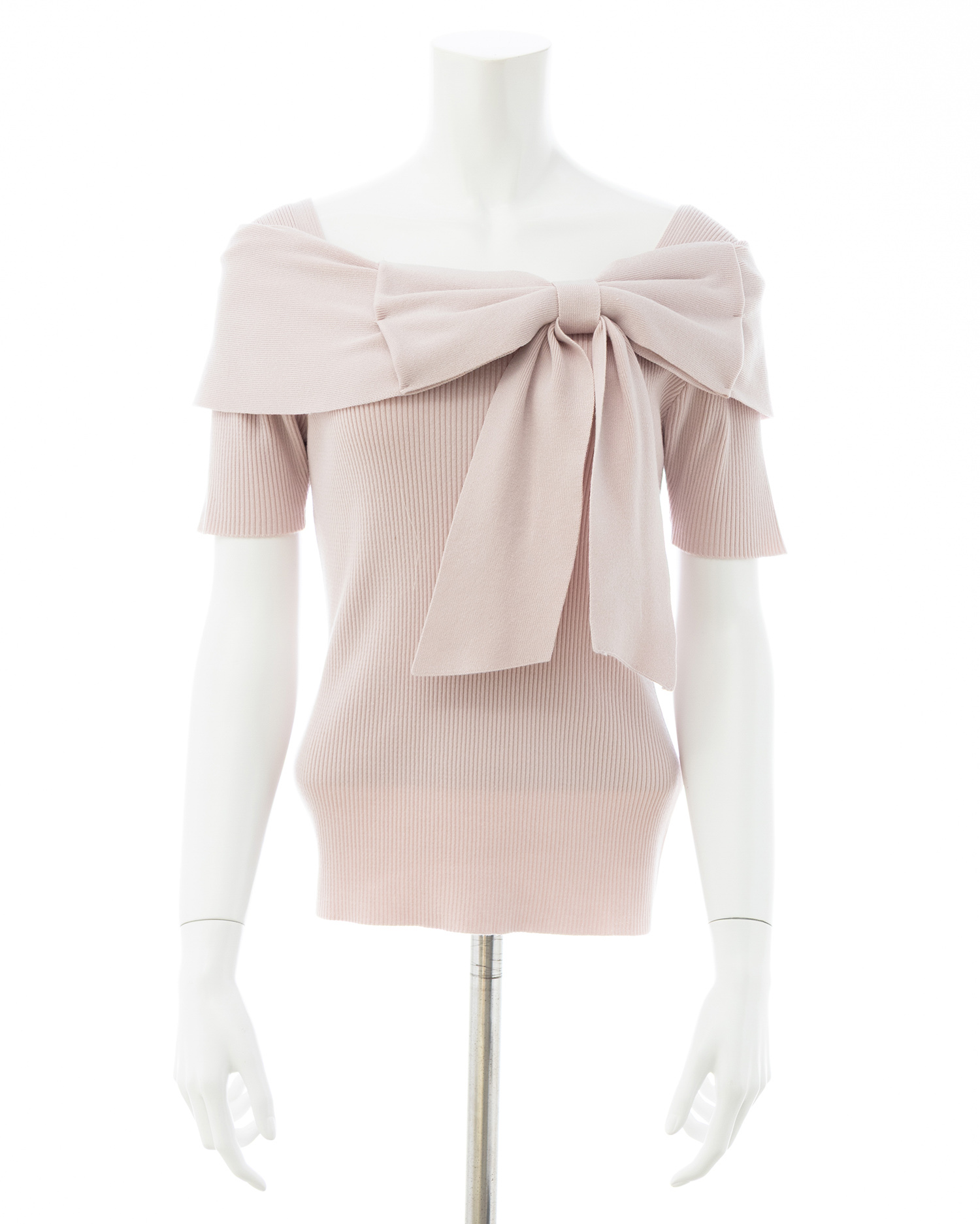 1261-900255 リボンオフショル半袖ニット