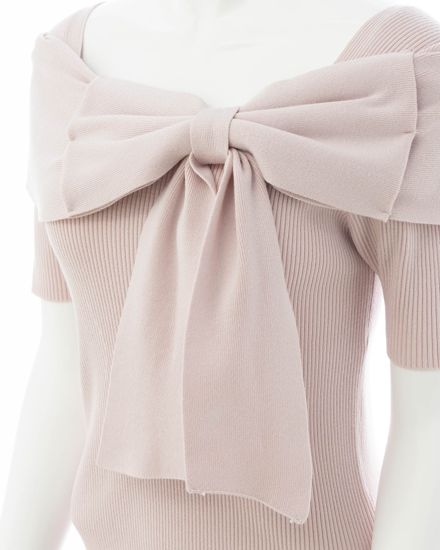 ほどよく身体に馴染むニット生地×リボンデザインがバスト部分を立体的にメイク。
