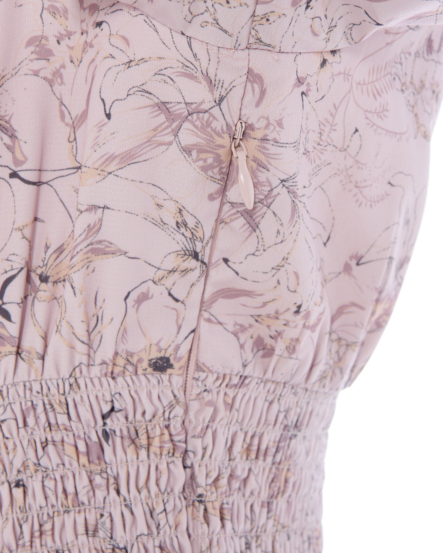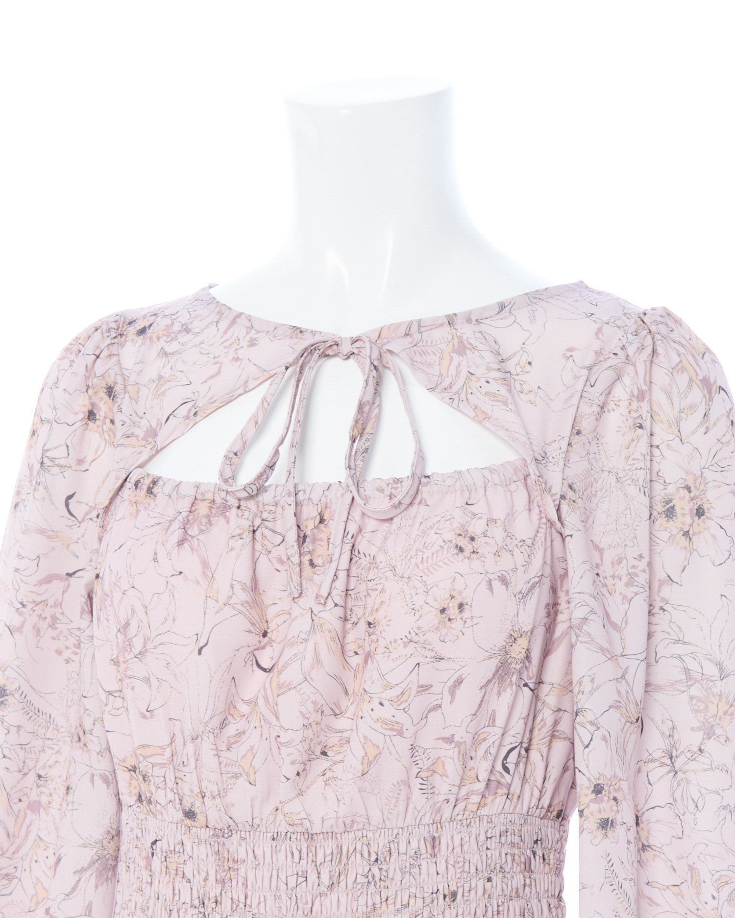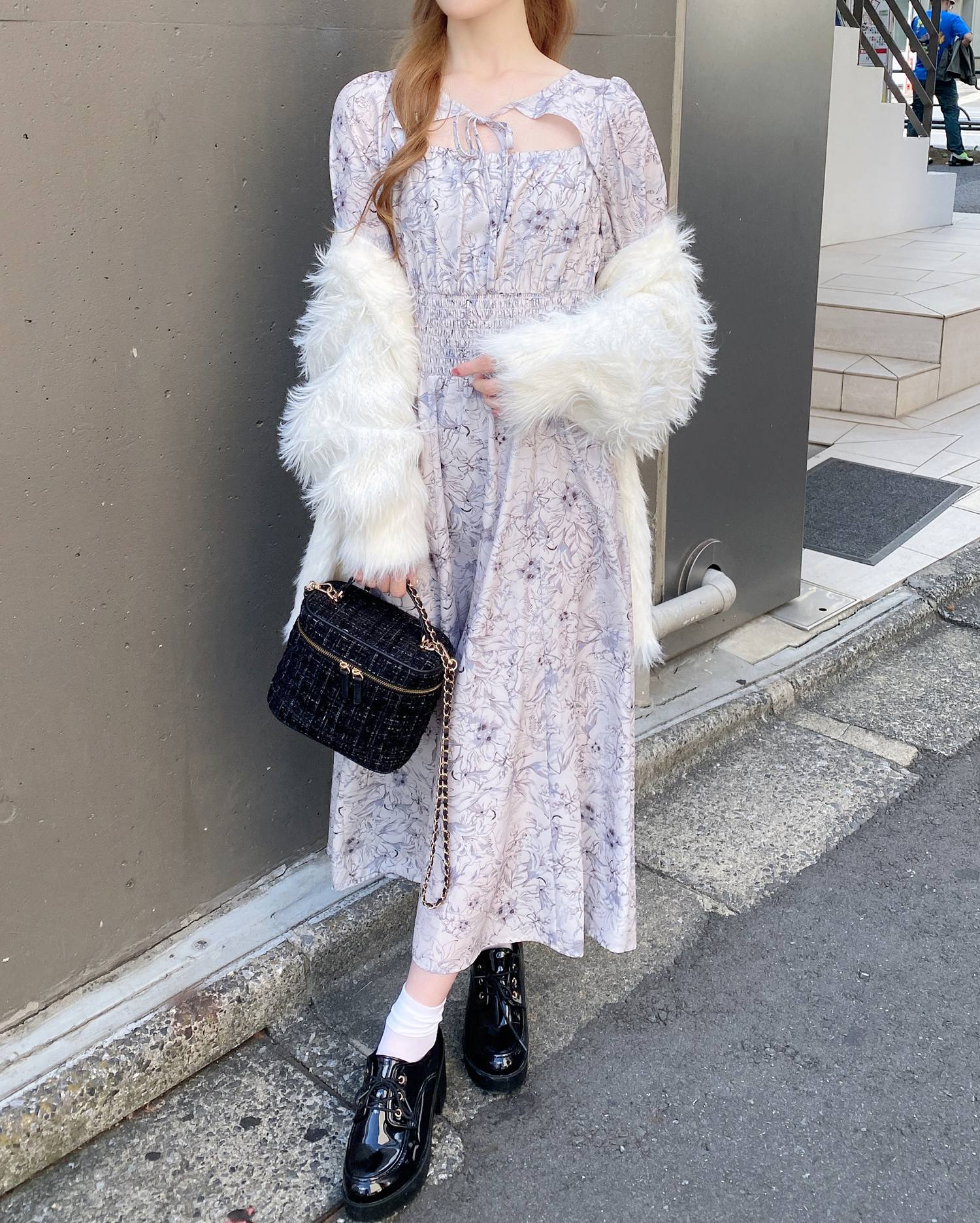 人気のデコルテオープンデザイン×フェミニンな花柄が大人かわいい雰囲気を演出。