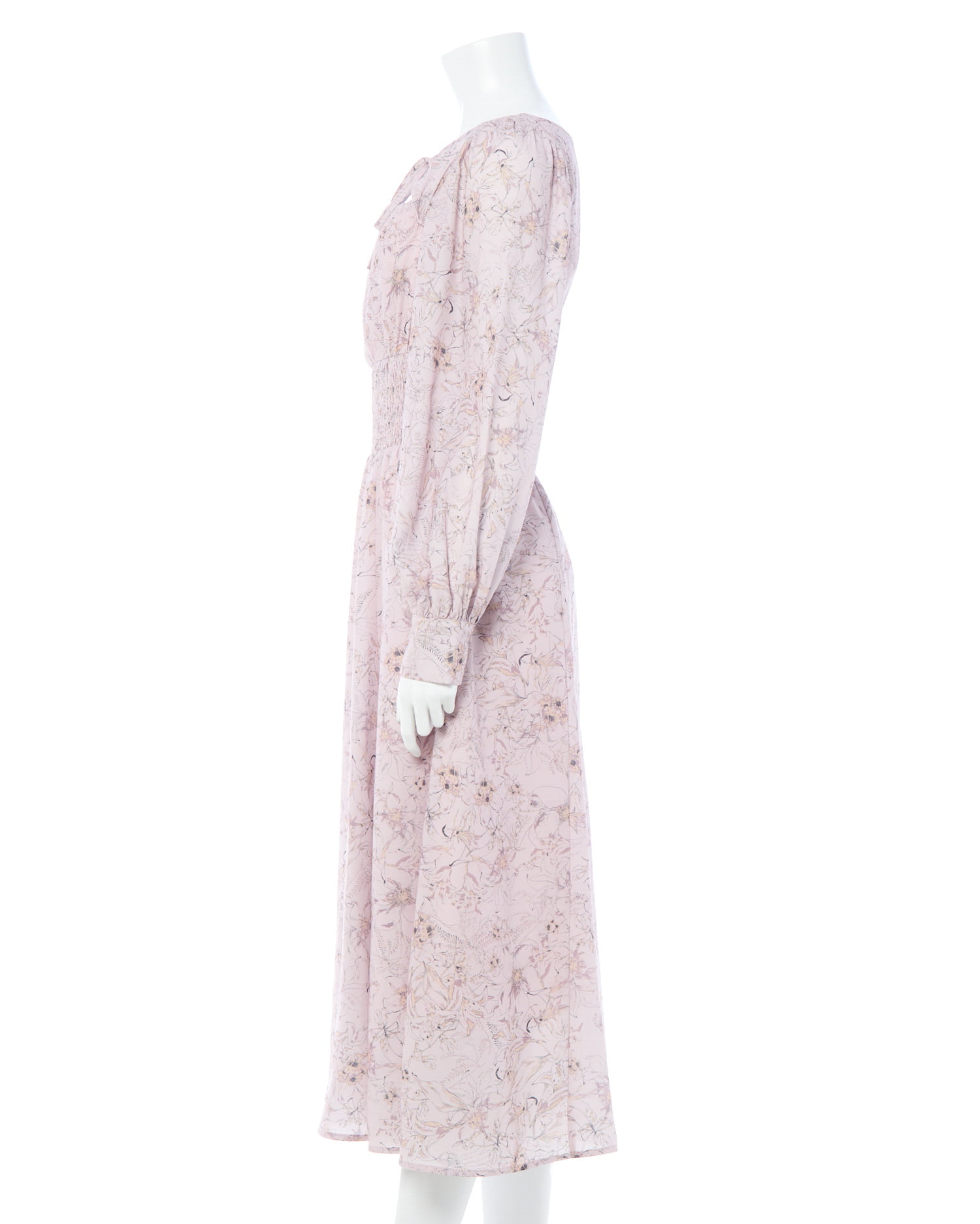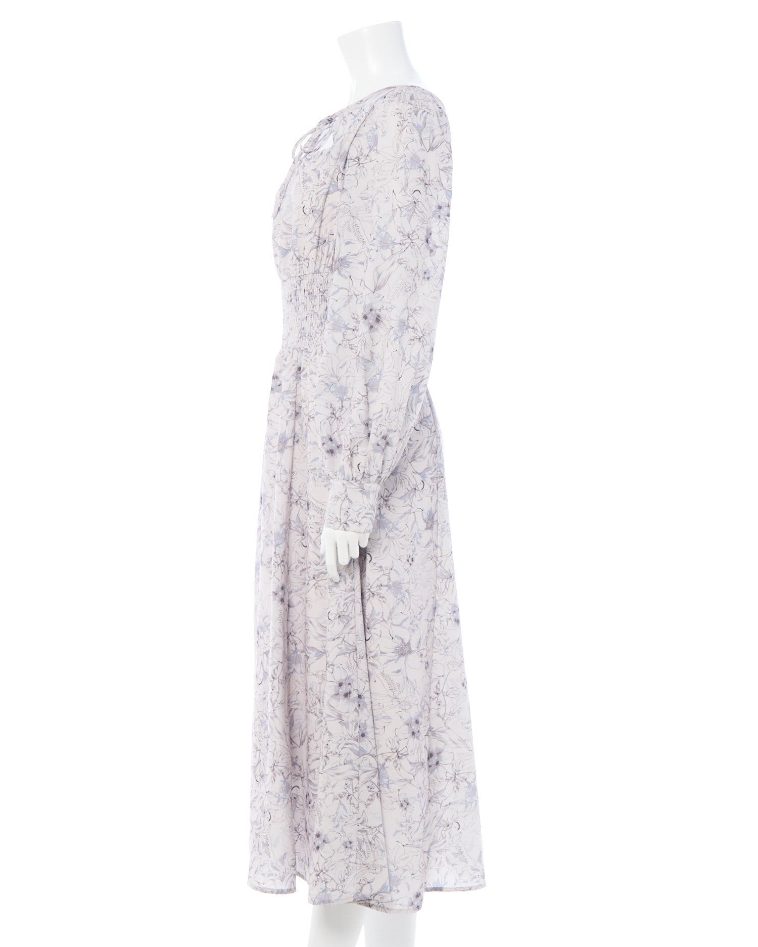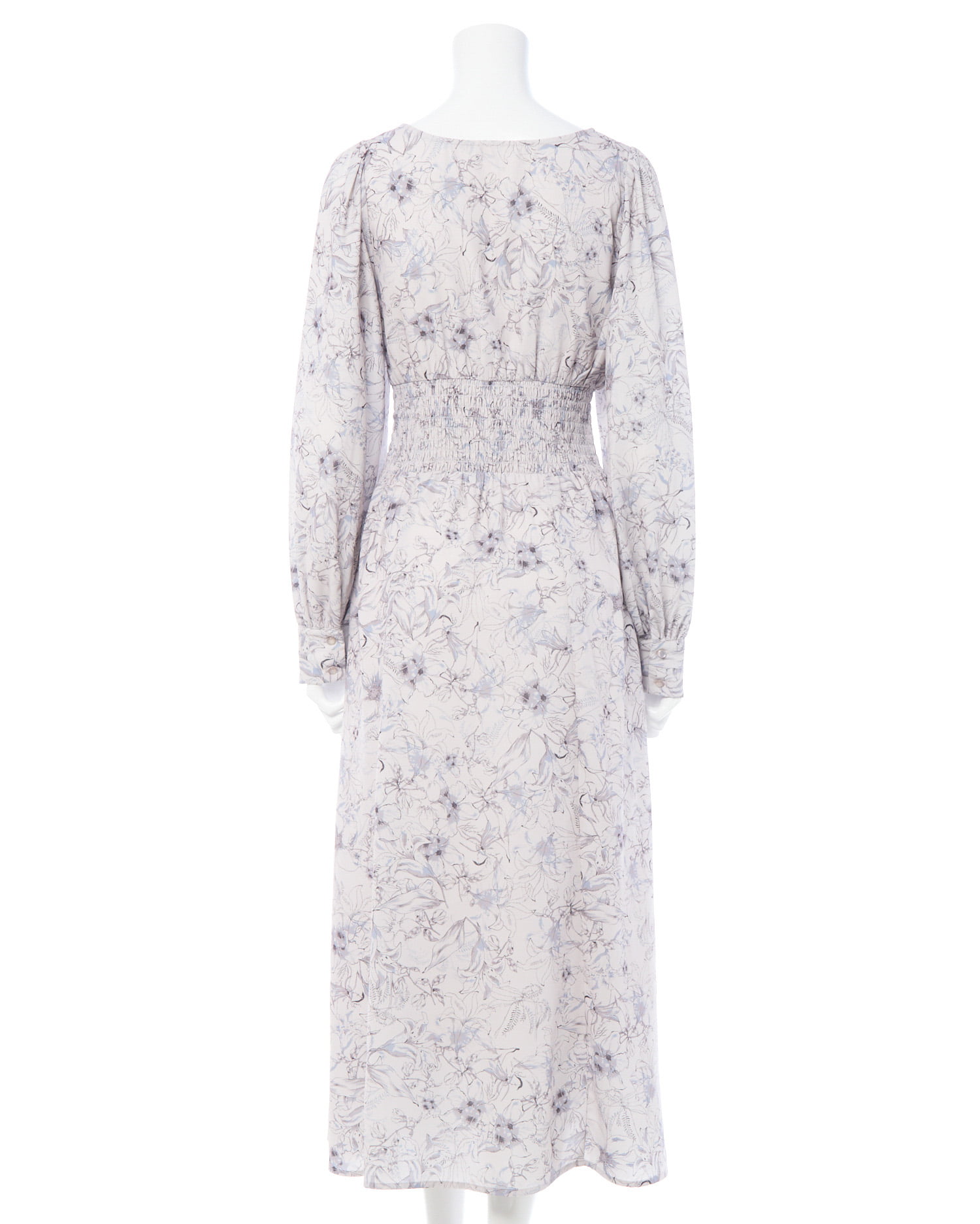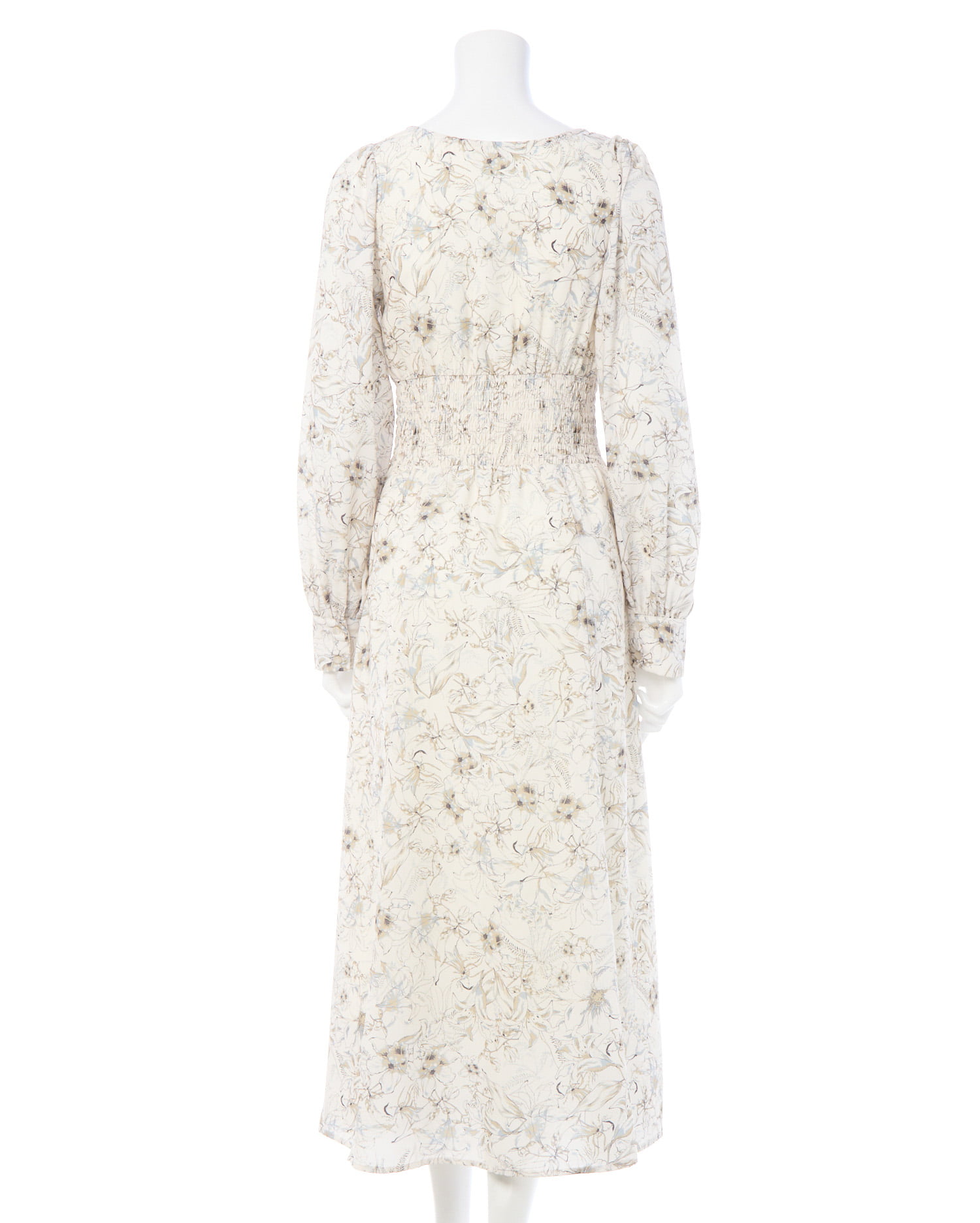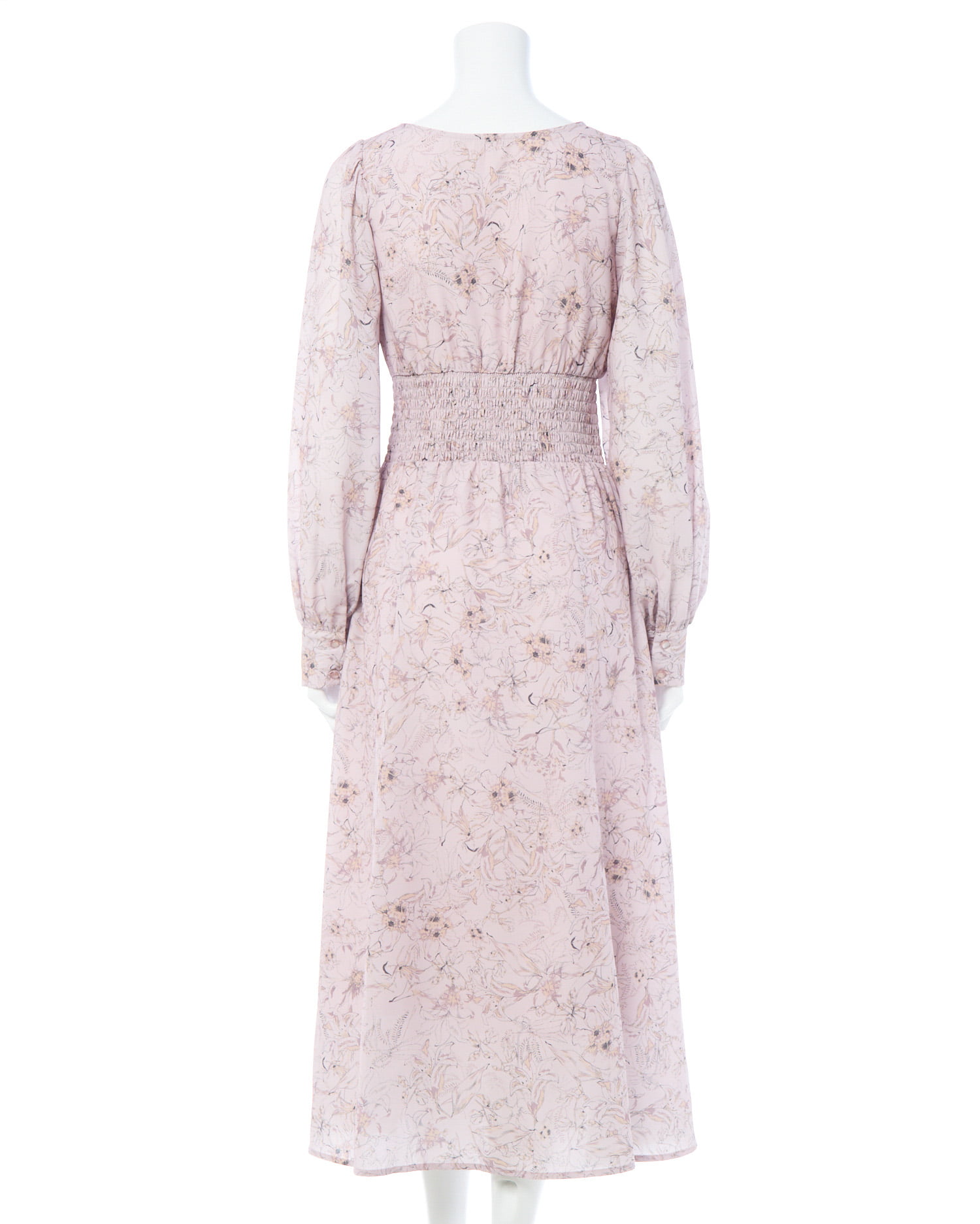 長袖にロング丈のワンピでも軽やかな生地感とウエストシャーリングで細見え間違いなし♡