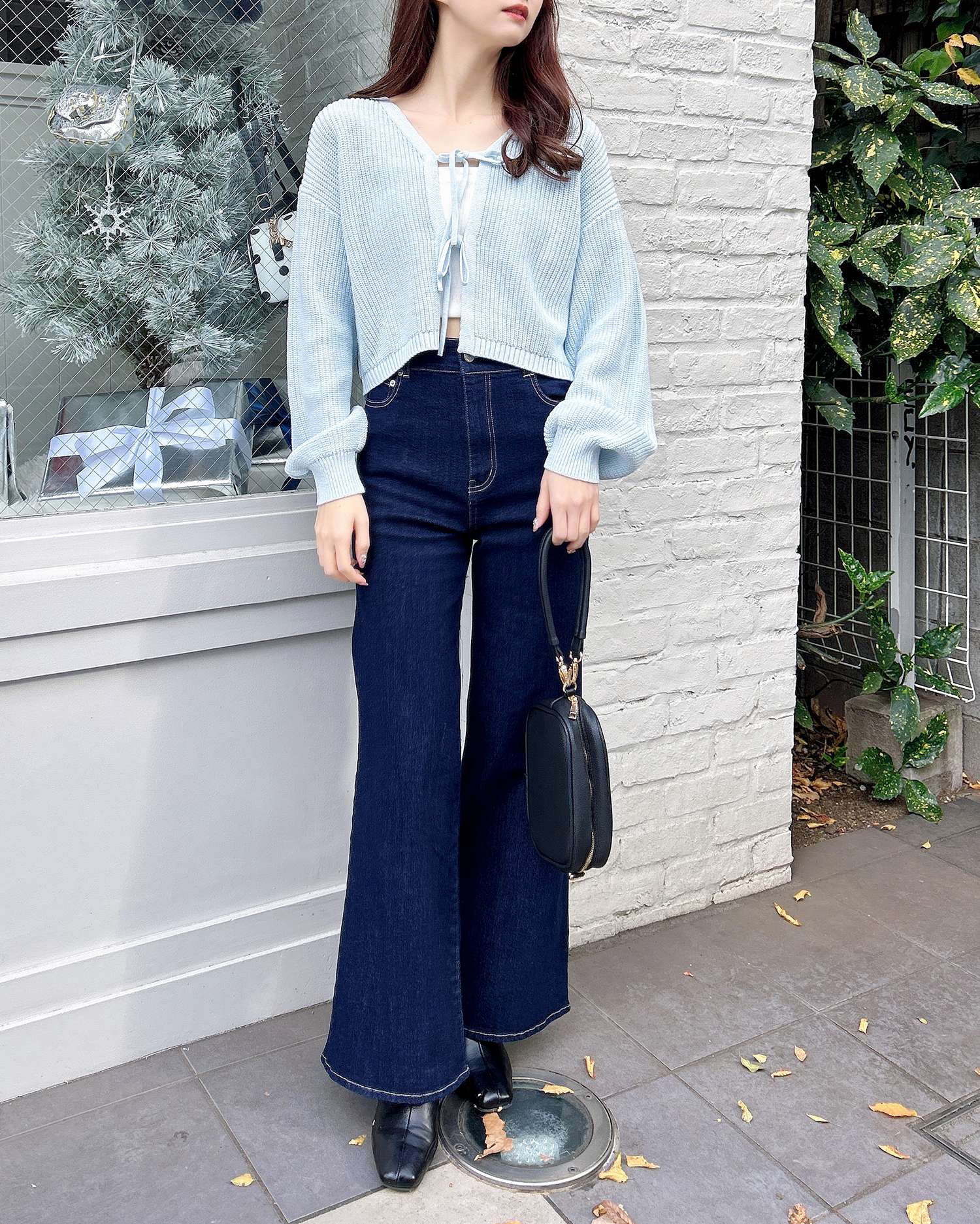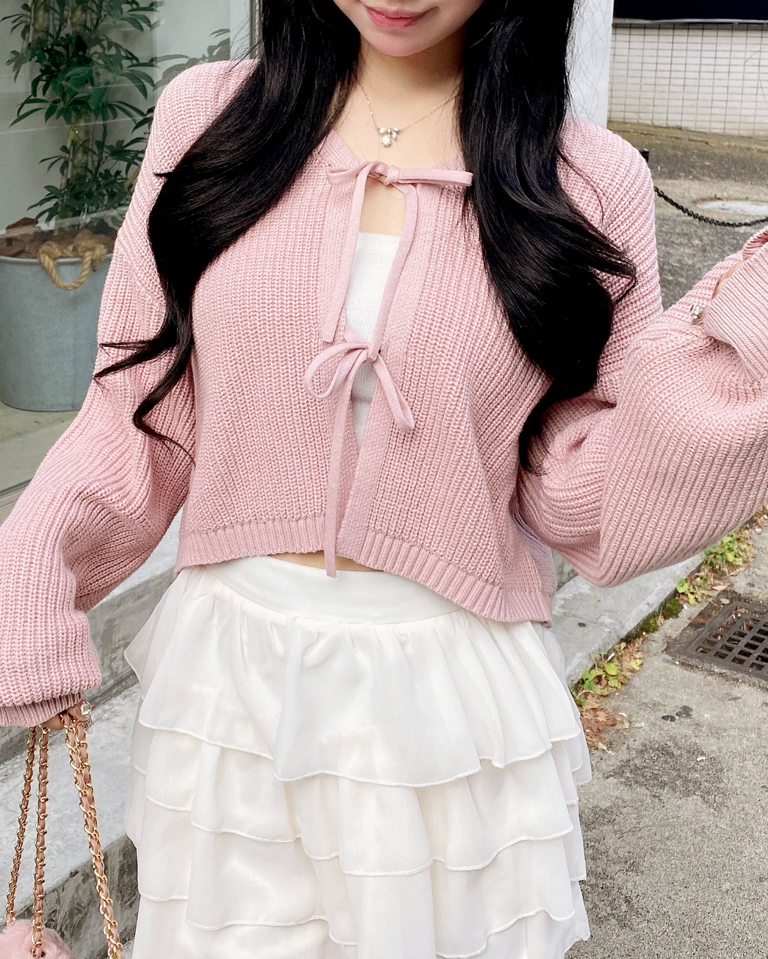 【2つのリボンがアクセントになったシンプルカーディガン】