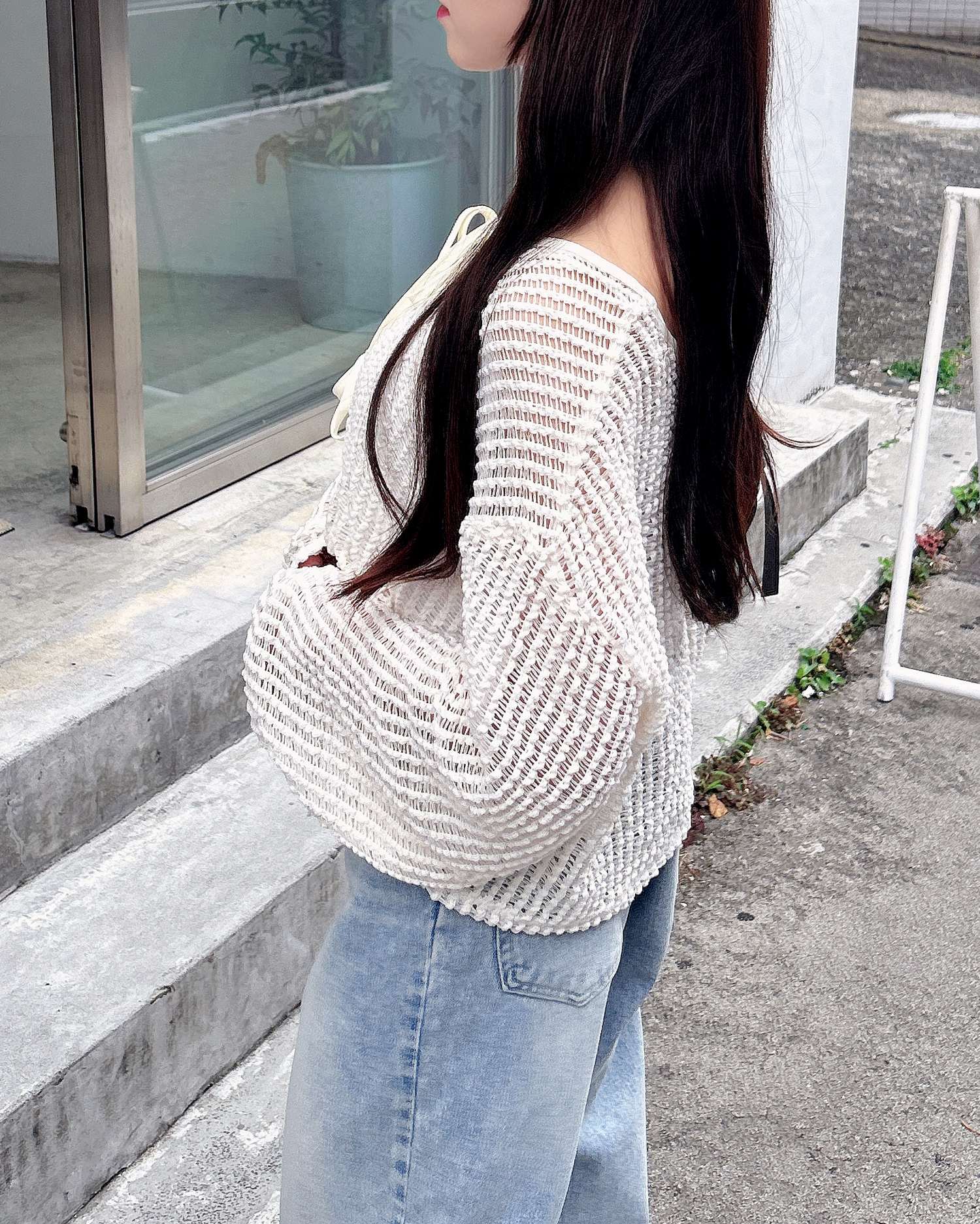 【WEB限定】フロントリボンメッシュカットカーディガン(OUTLET)