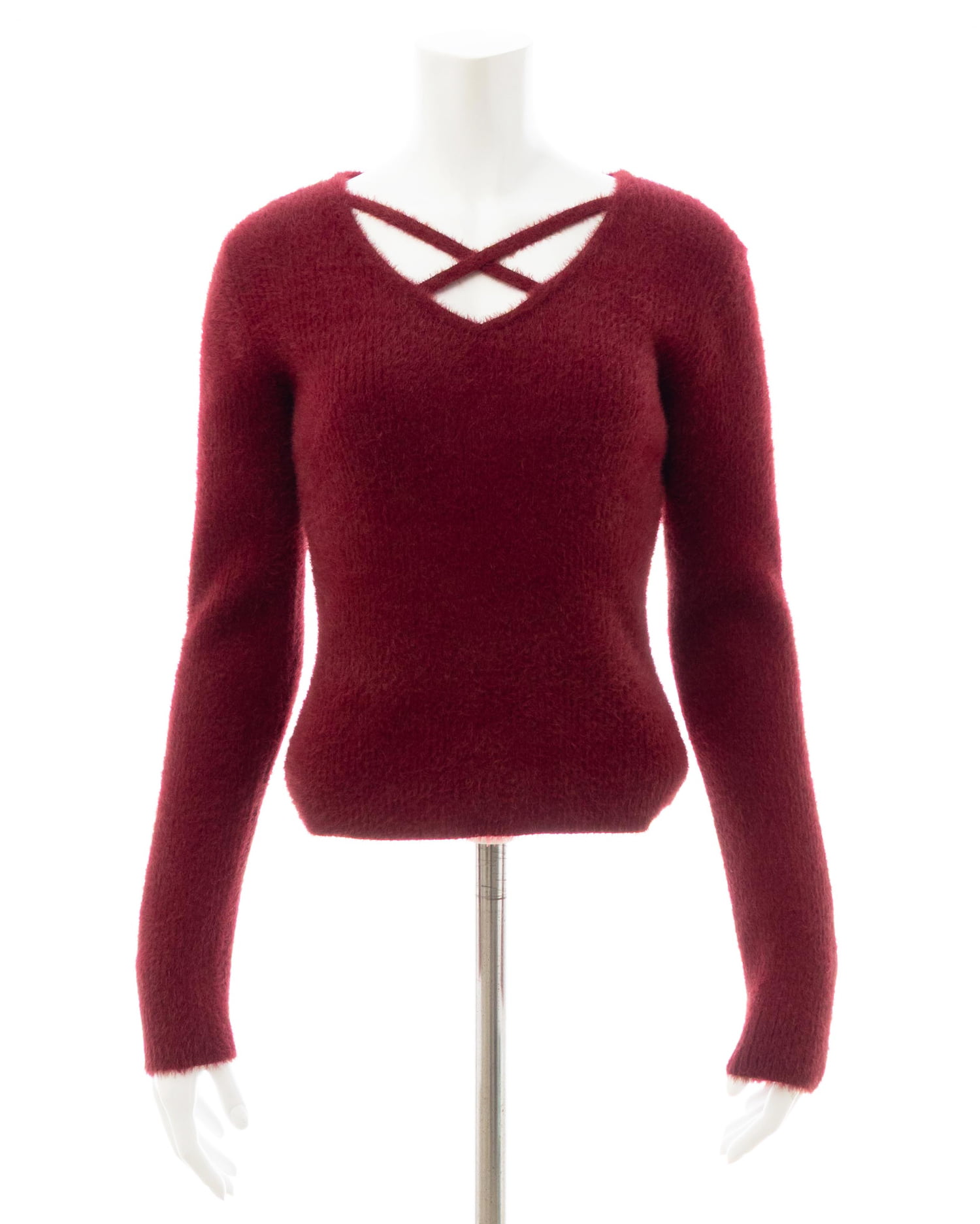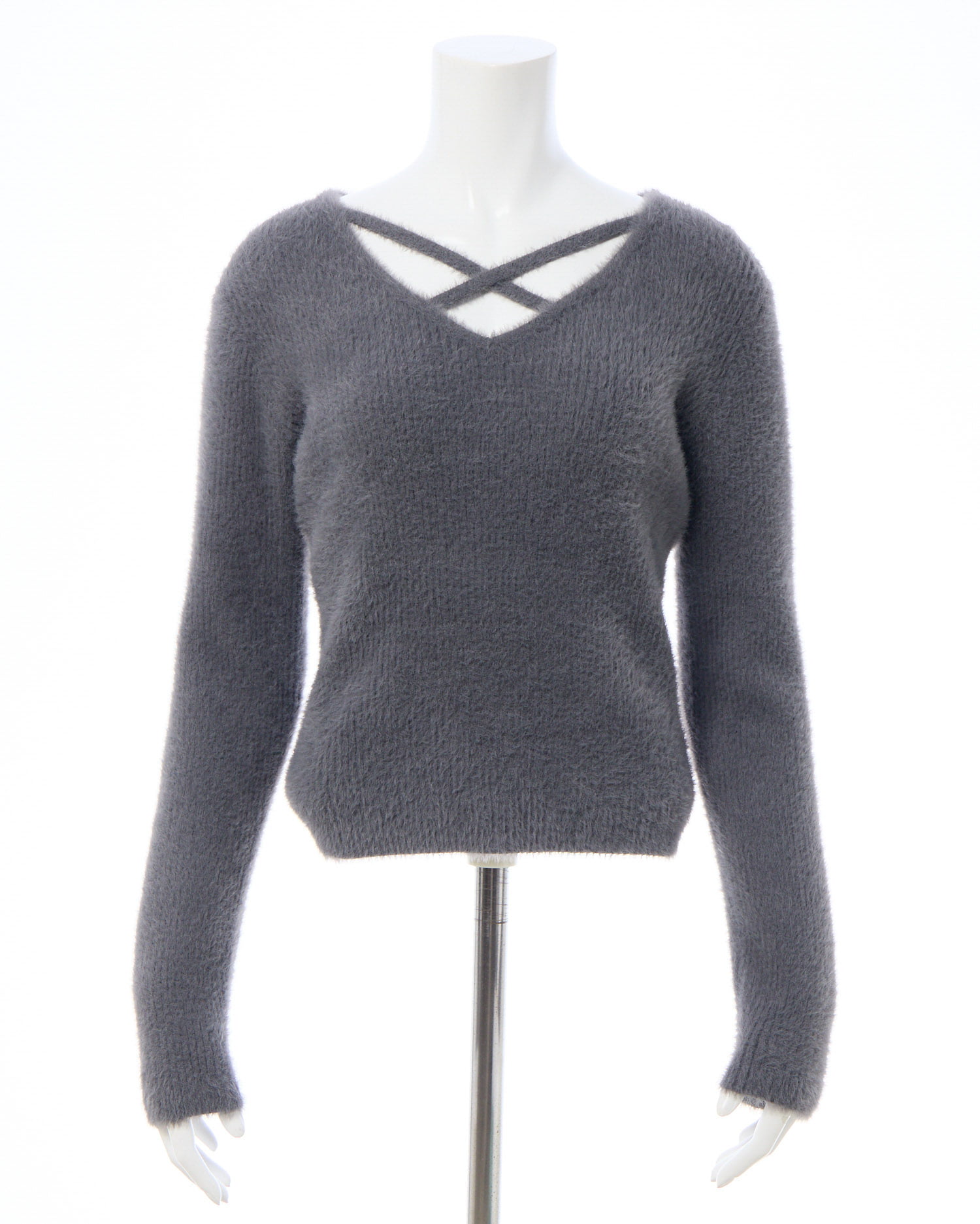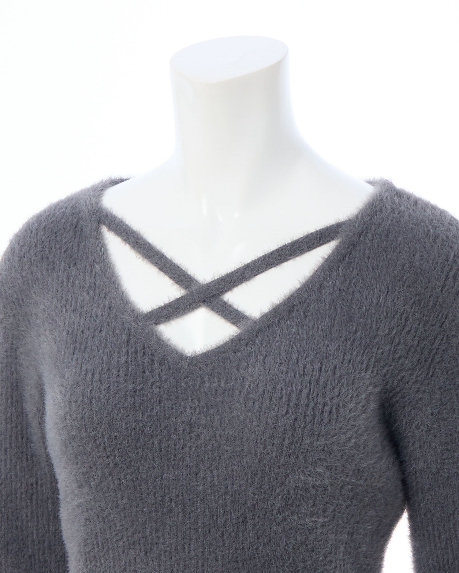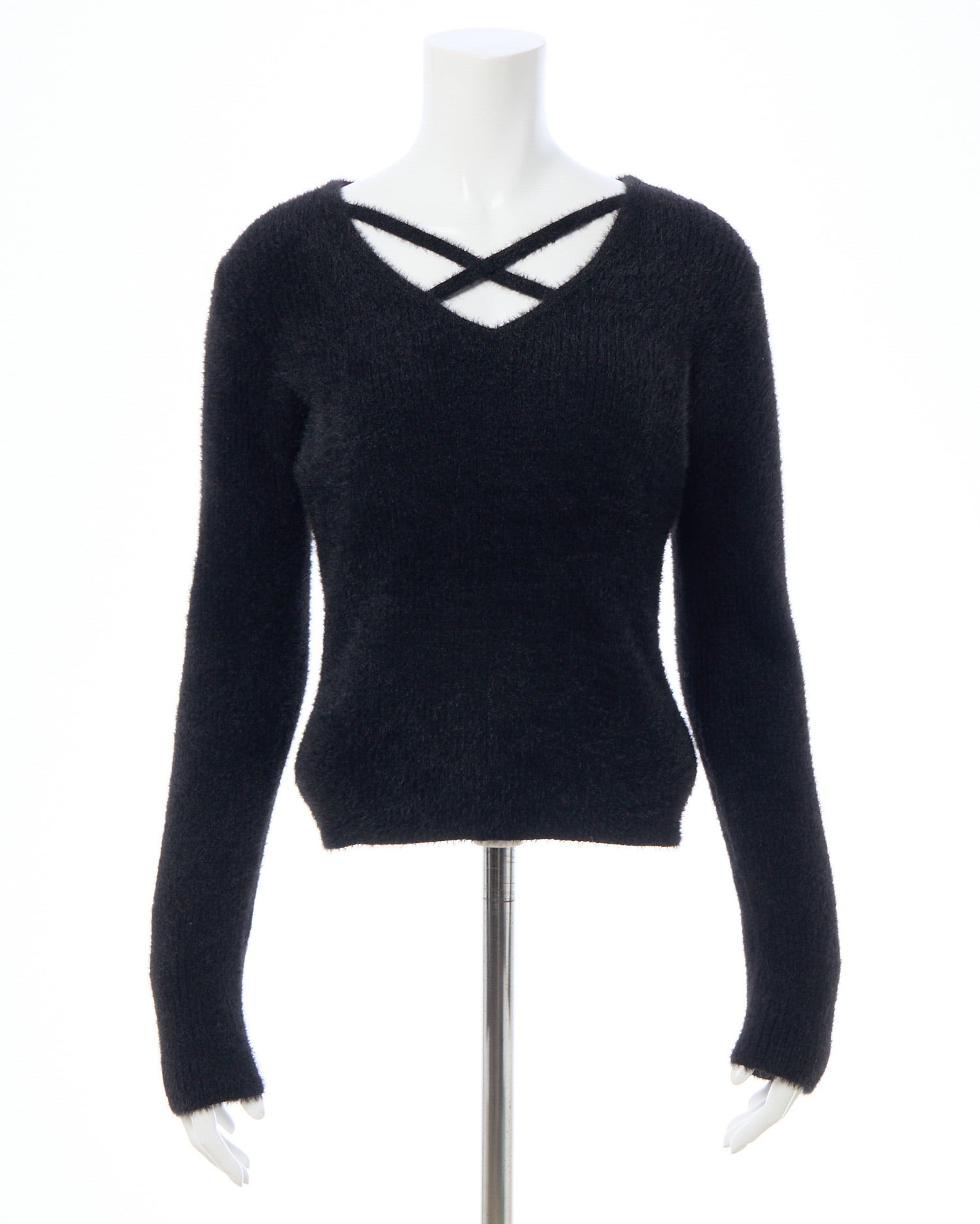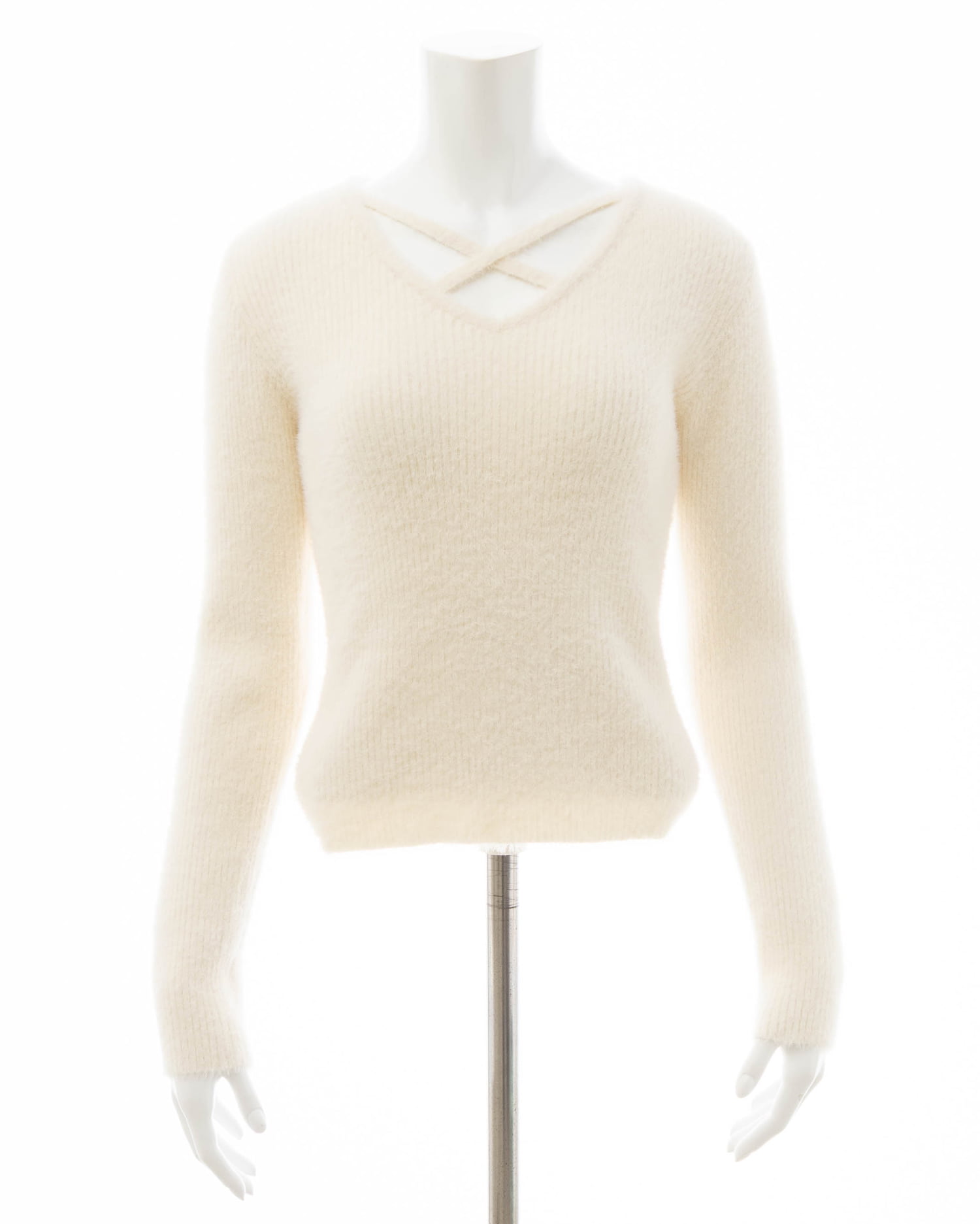【デコルテのデザインがかわいい♡フェザークロスニット】