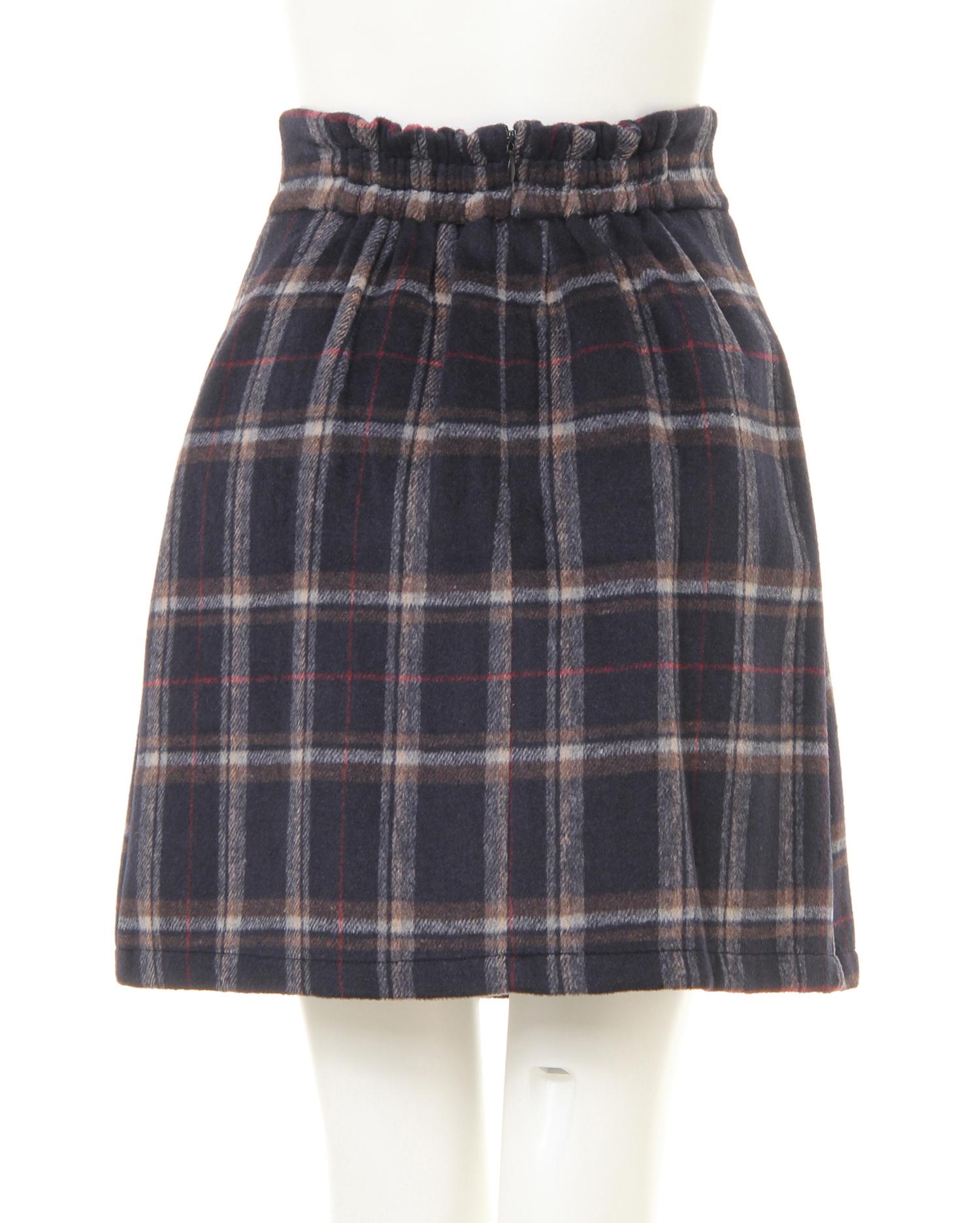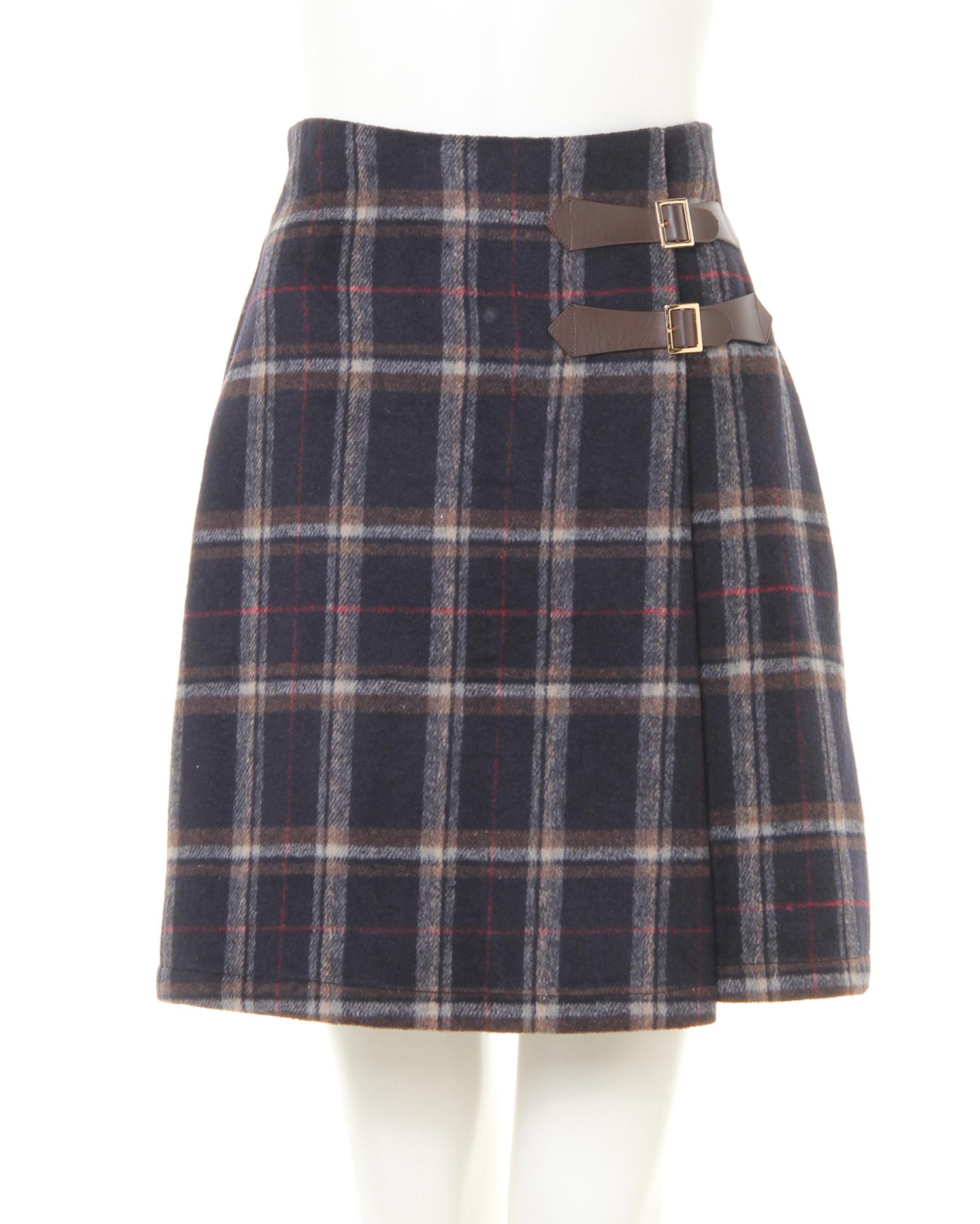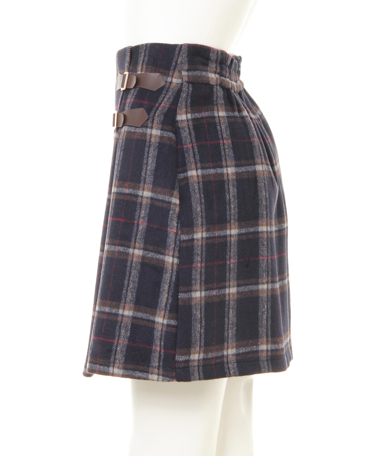 袖レースUPモックネック/ニットとサイドベルト付チェック柄台形/スカートのSET☆