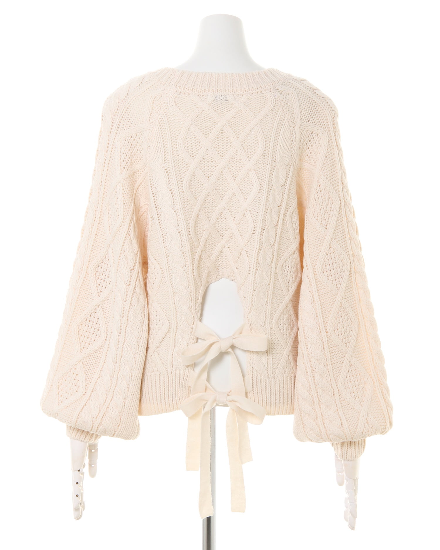 バックリボンケーブルクルーネックニットとコーデュロイ前ボタン台形スカートのSET☆