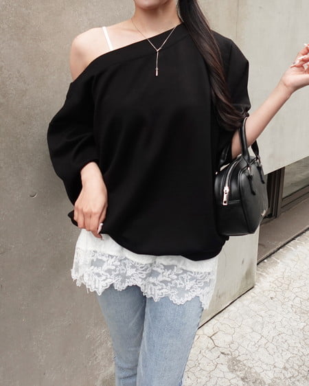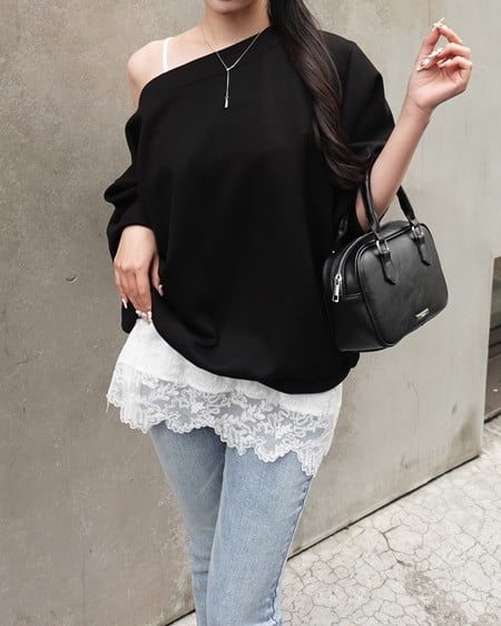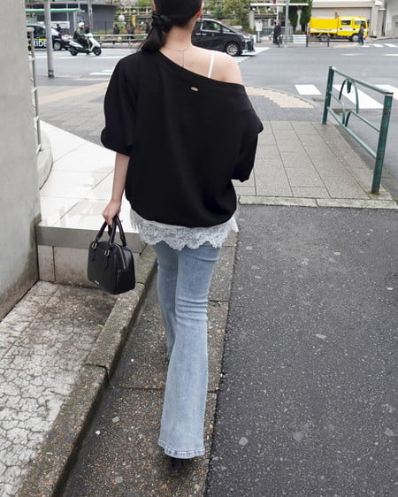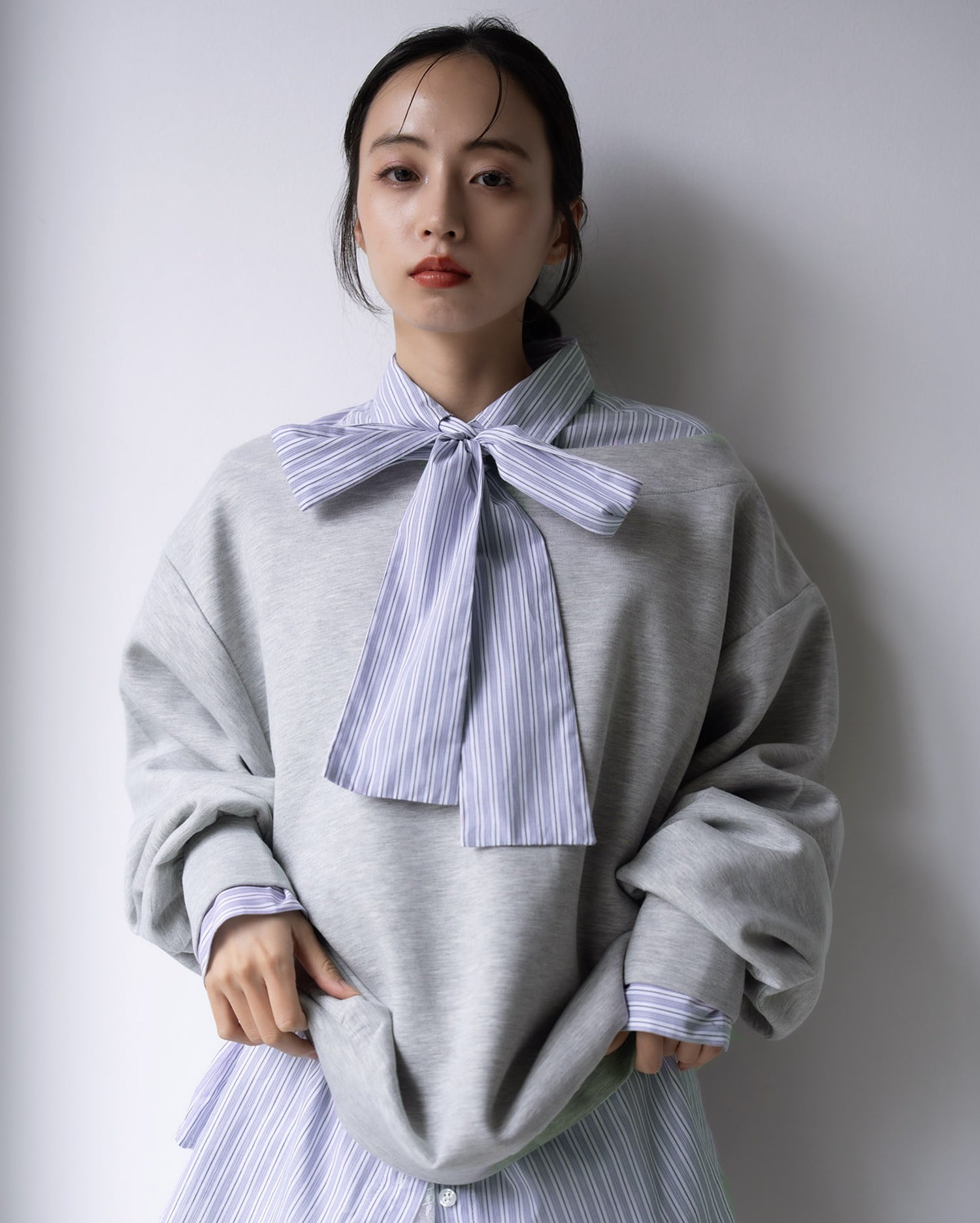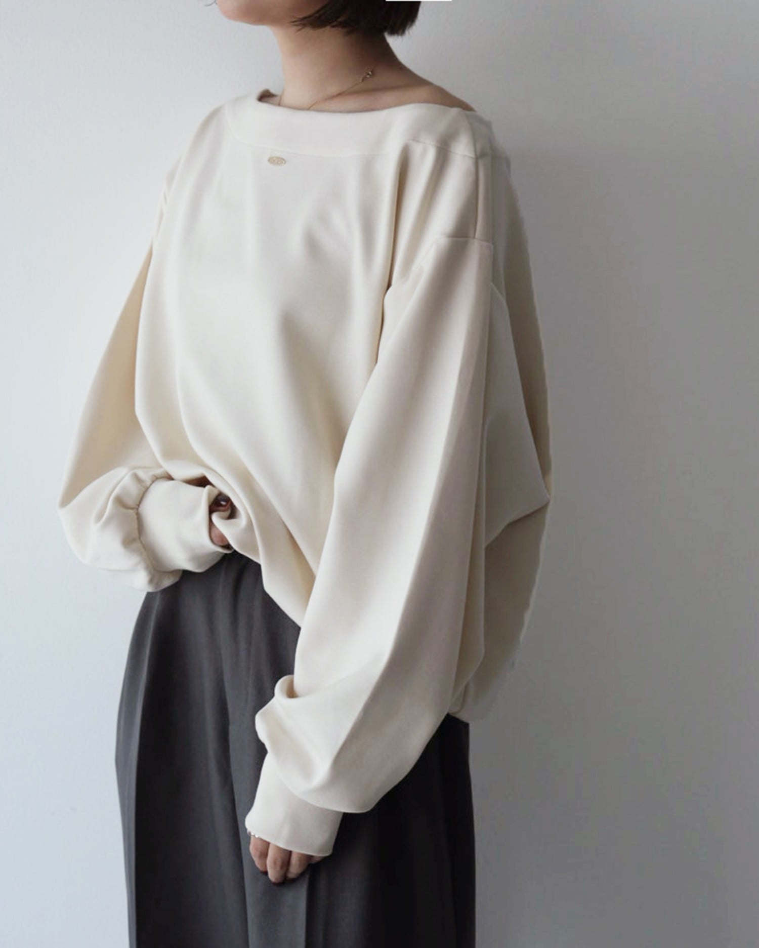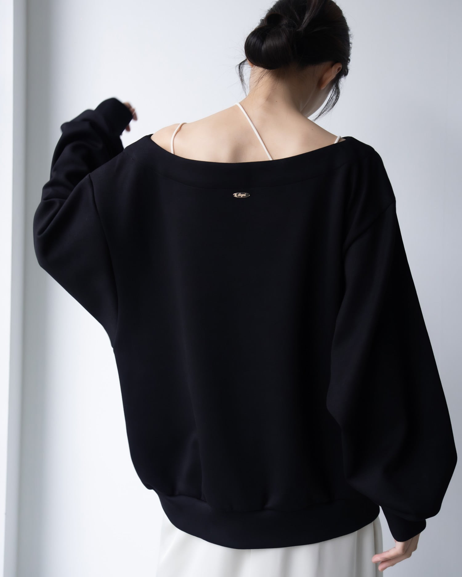 前後を逆にしたり、ワンショルダーやオフショルダーとしても様々な着こなしが可能。
