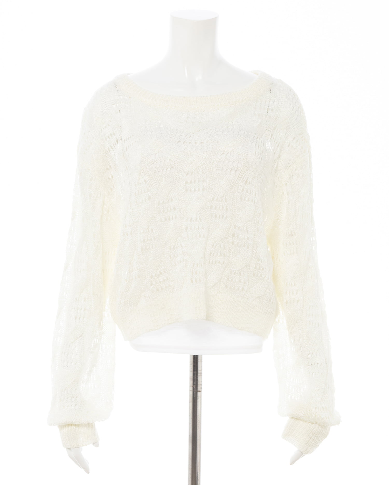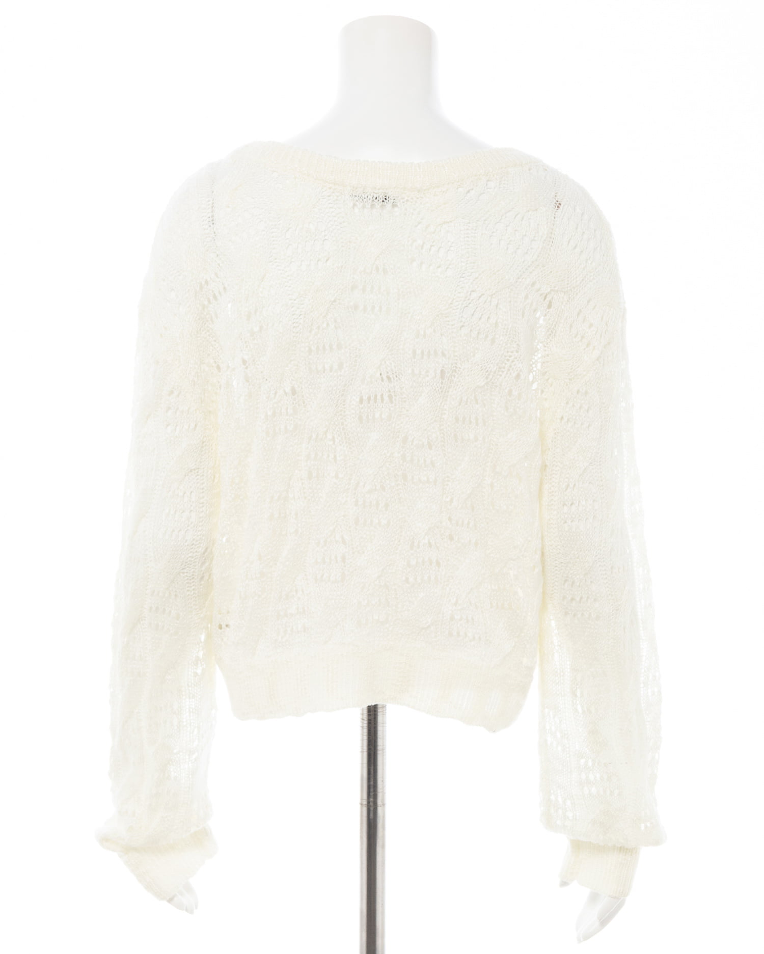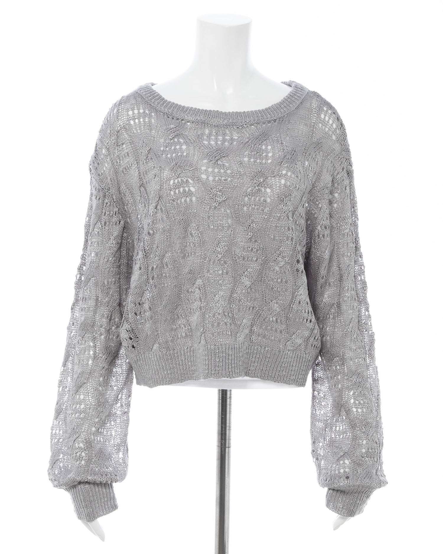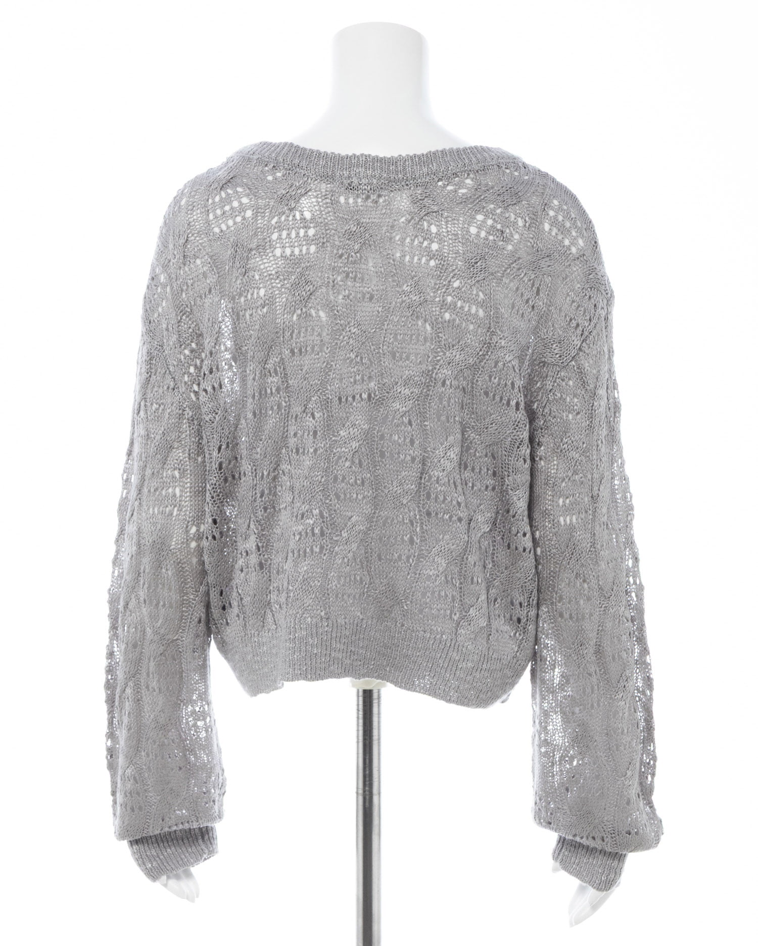 透かし編みのケーブルデザインが特徴のニットプルオーバー。