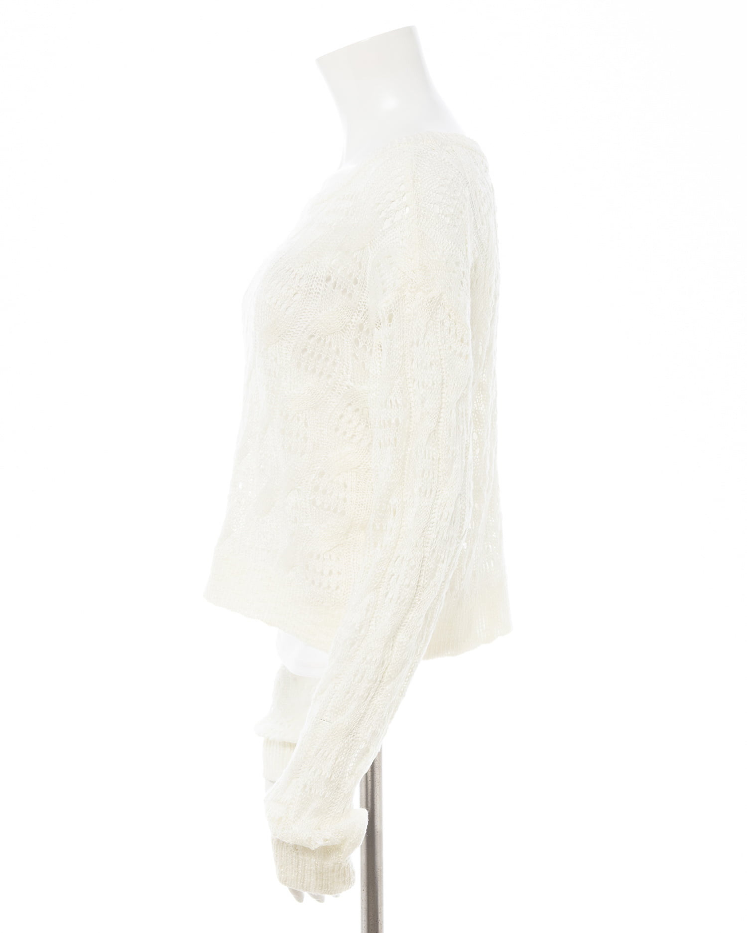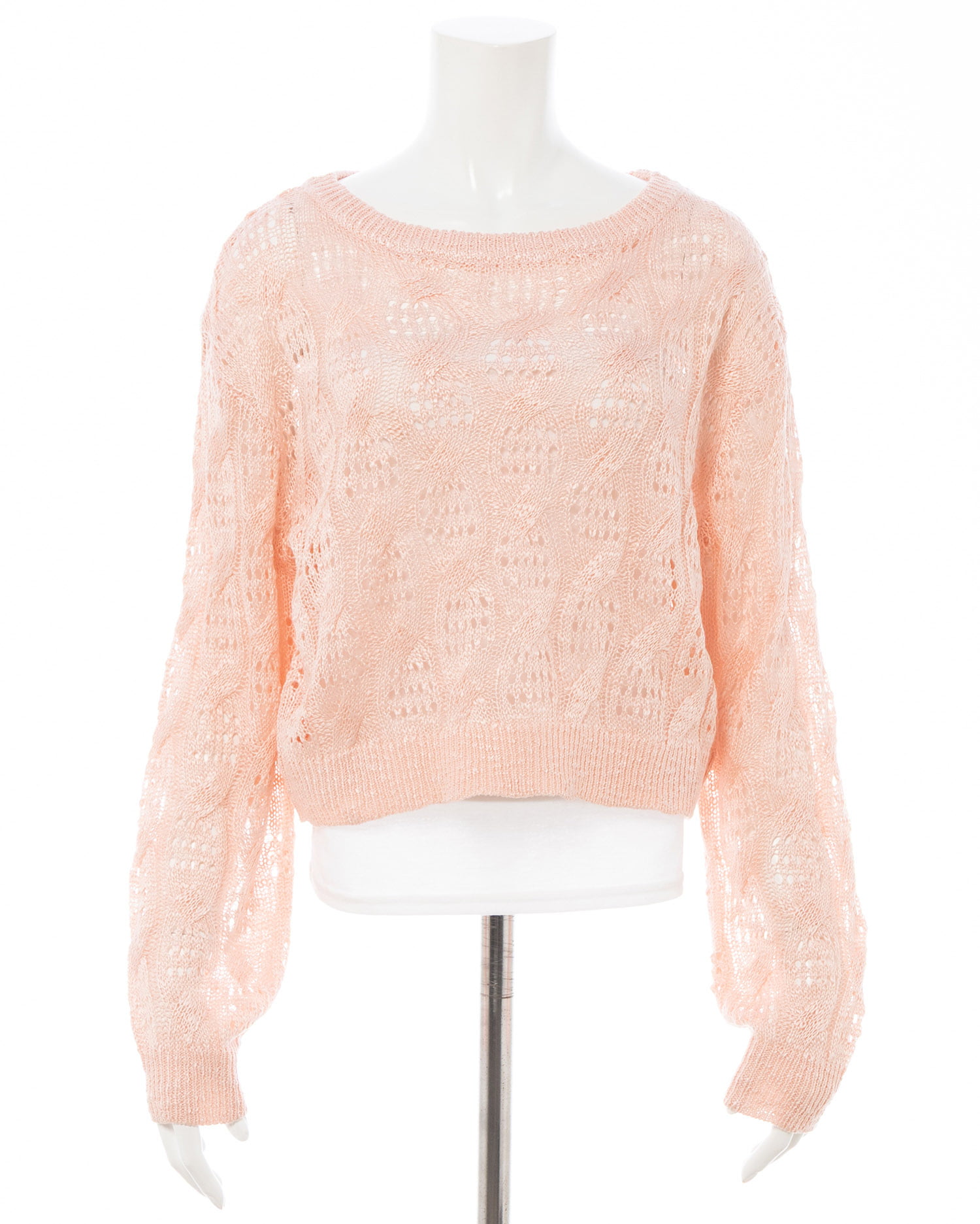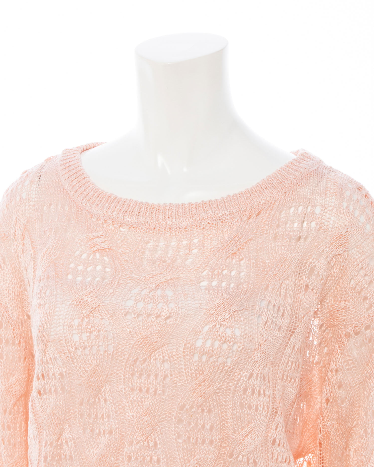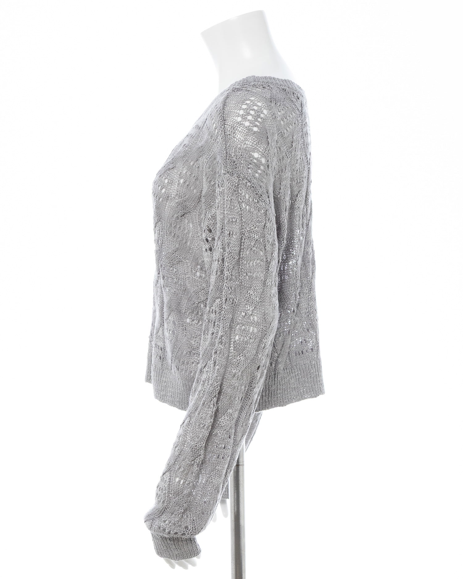 透かし編みのケーブルデザインが特徴のニットプルオーバー。