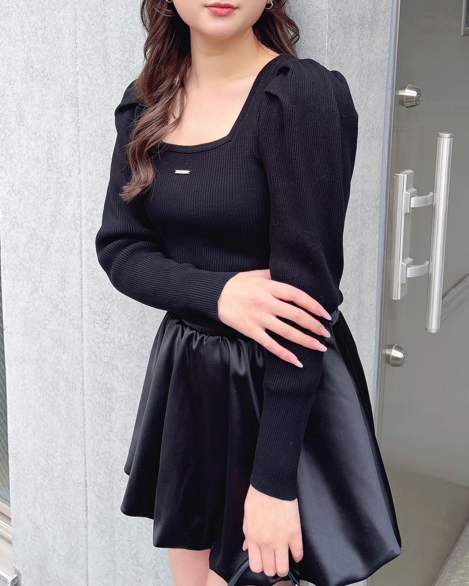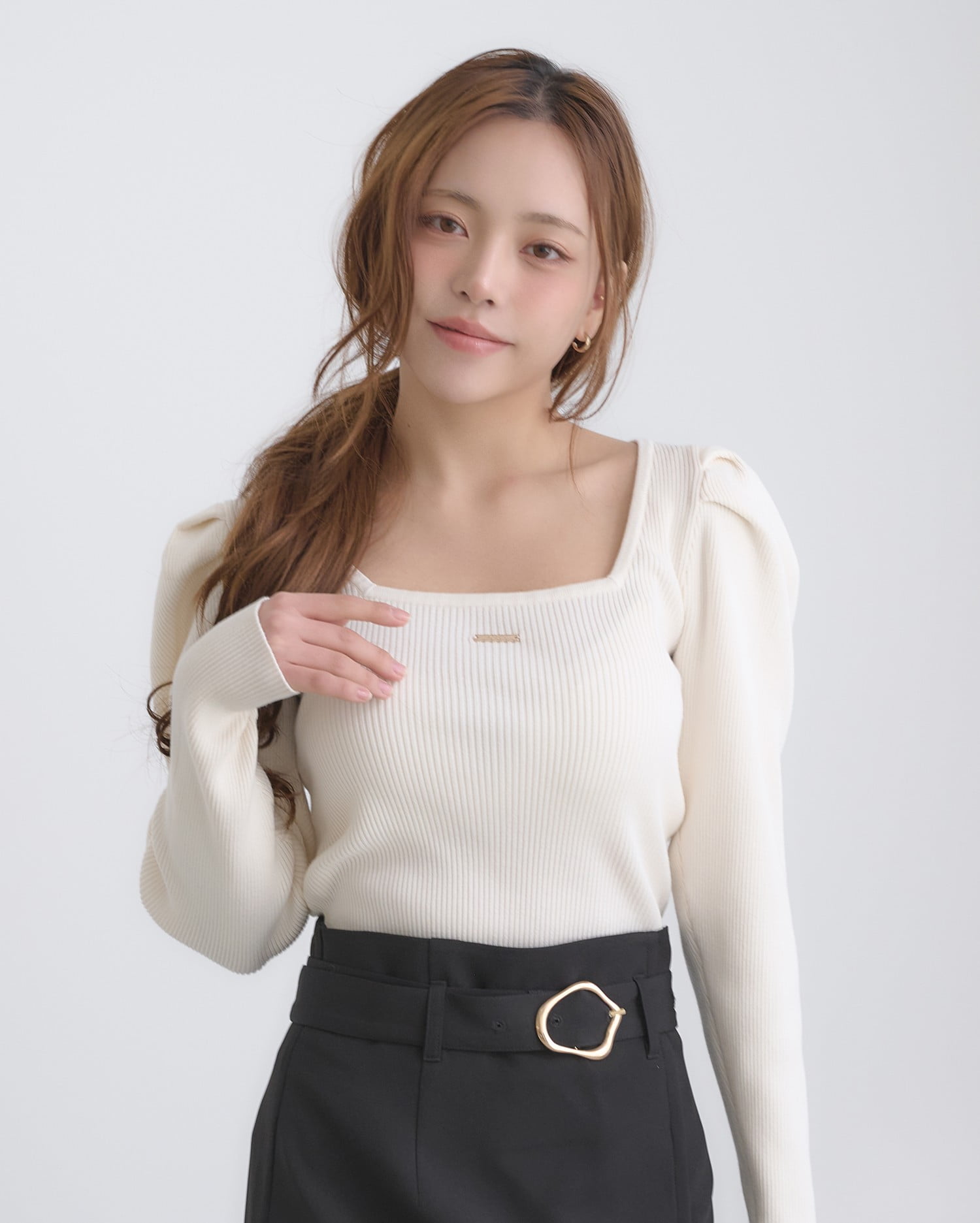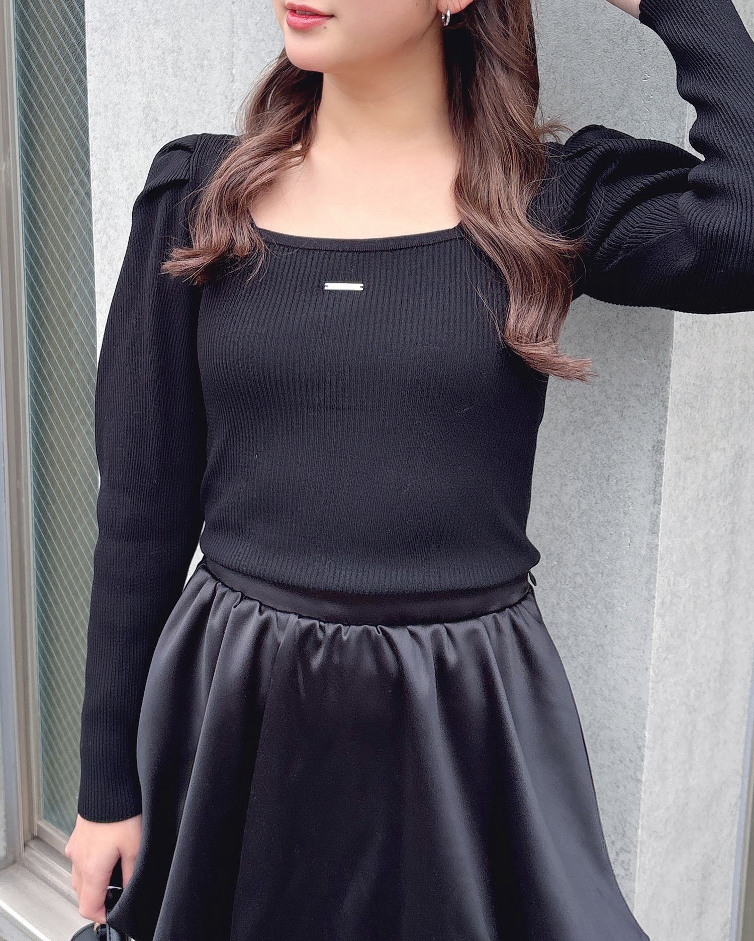 スクエアネックが上品な肌見せを叶えるリブニットトップス。